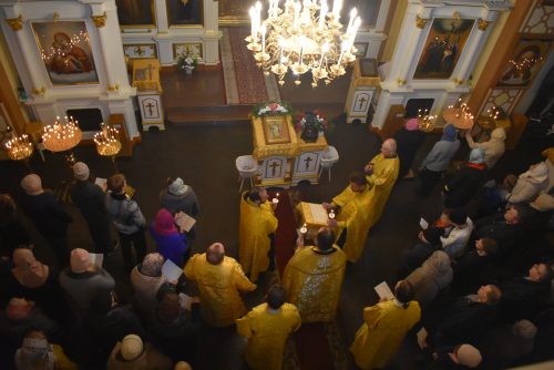 31 декабря 2025 года в храме преподобной Марии Египетской г.Вилейка настоятель храма протоиерей Вячеслав Вабищевич, в сослужении клириков храма протоиерея Сергия Вачугова и иерея Димитрия Власенко, совершил новогодний молебен с акафистом «Слава Богу за все».