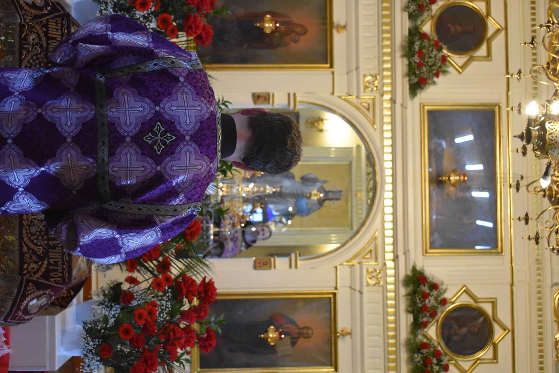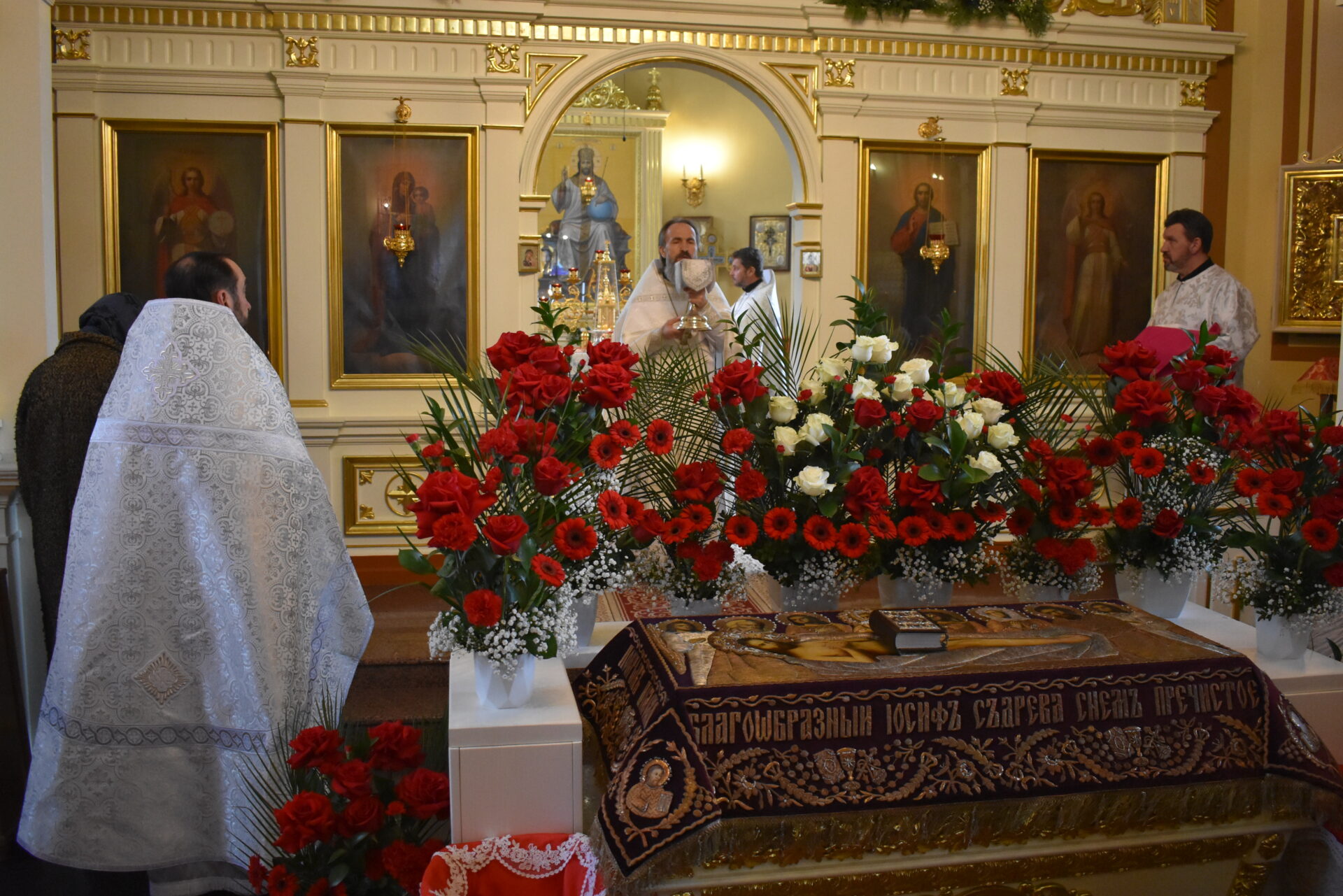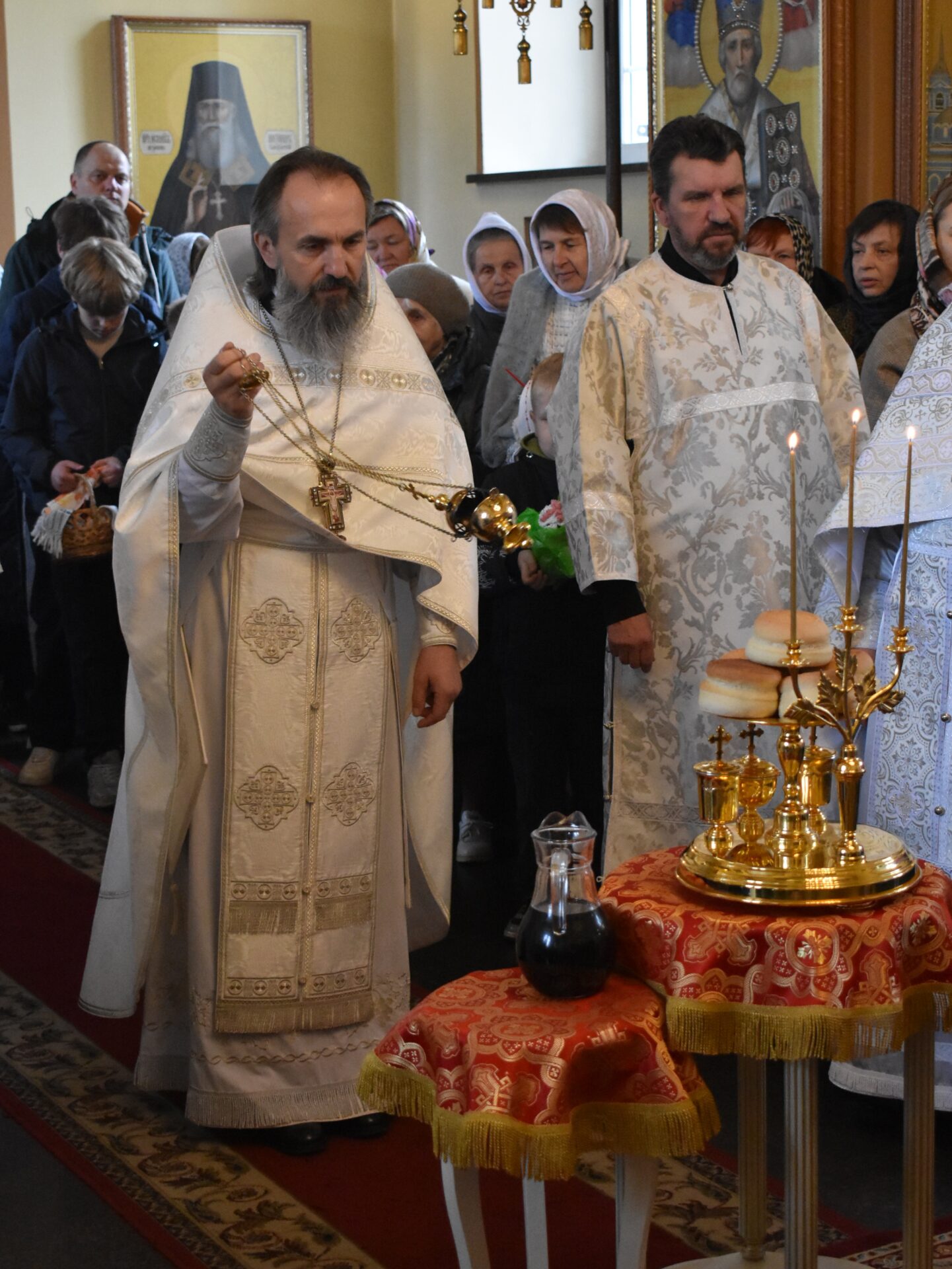 По заамвонной молитве было совершено освящение хлеба и вина.