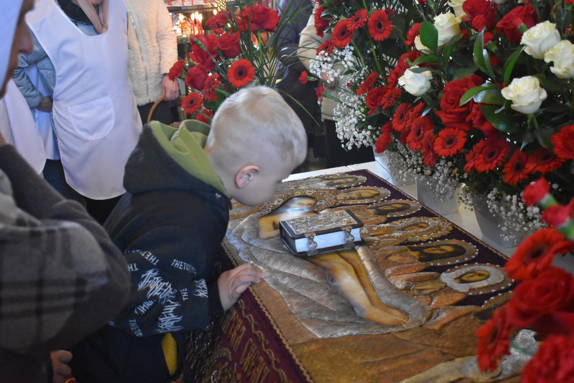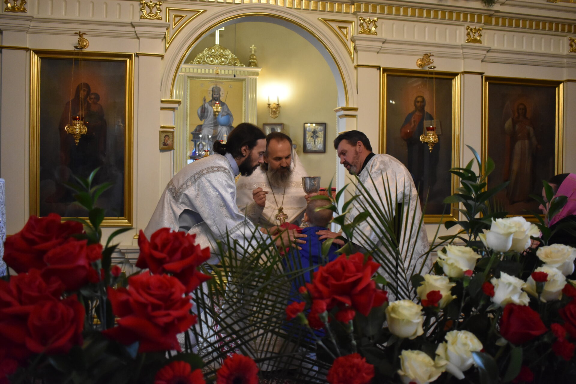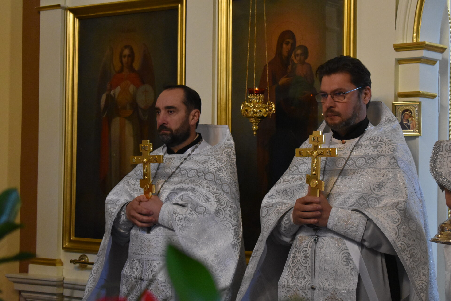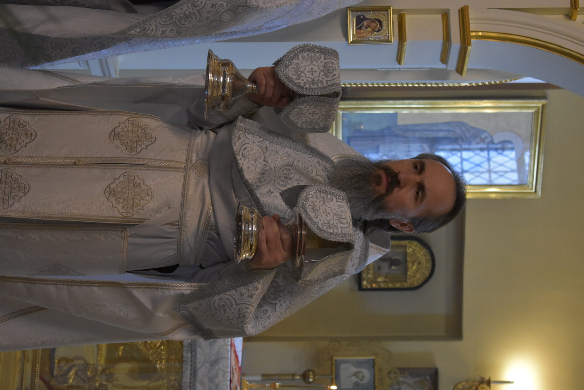 По заамвонной молитве было совершено освящение хлеба и вина.