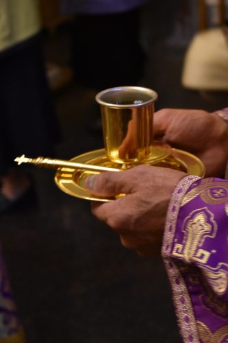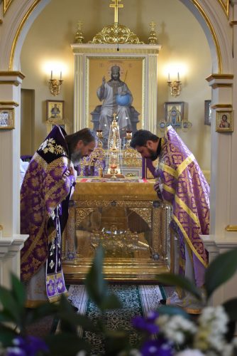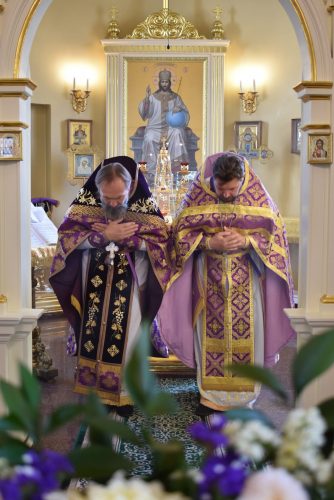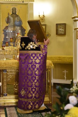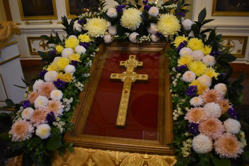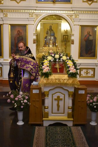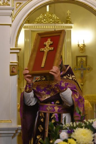 По окончании Божественной Литургии было совершено славление празднику Воздвижения Честного и Животворящего Креста Господня.