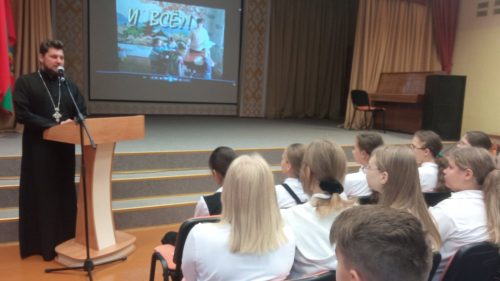 5 октября 2023 г. состоялась встреча учащихся 5-6 классов ГУО «Вилейская гимназия №1 «Логос» с клириком прихода храма преподобной Марии Египетской г.Вилейка протоиереем Сергеем Вачуговым.