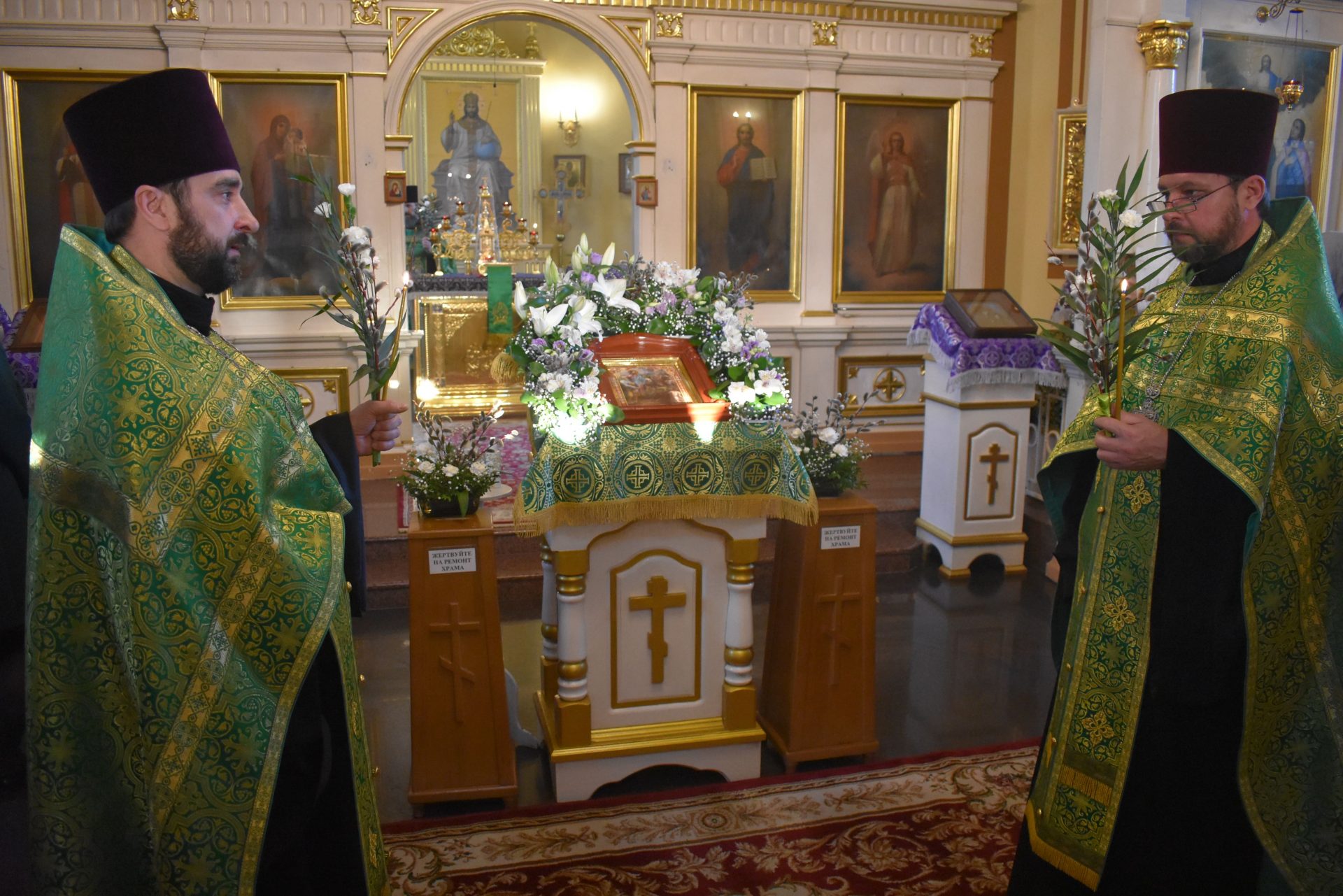 Освящение верб совершилось после обеих Литургий.