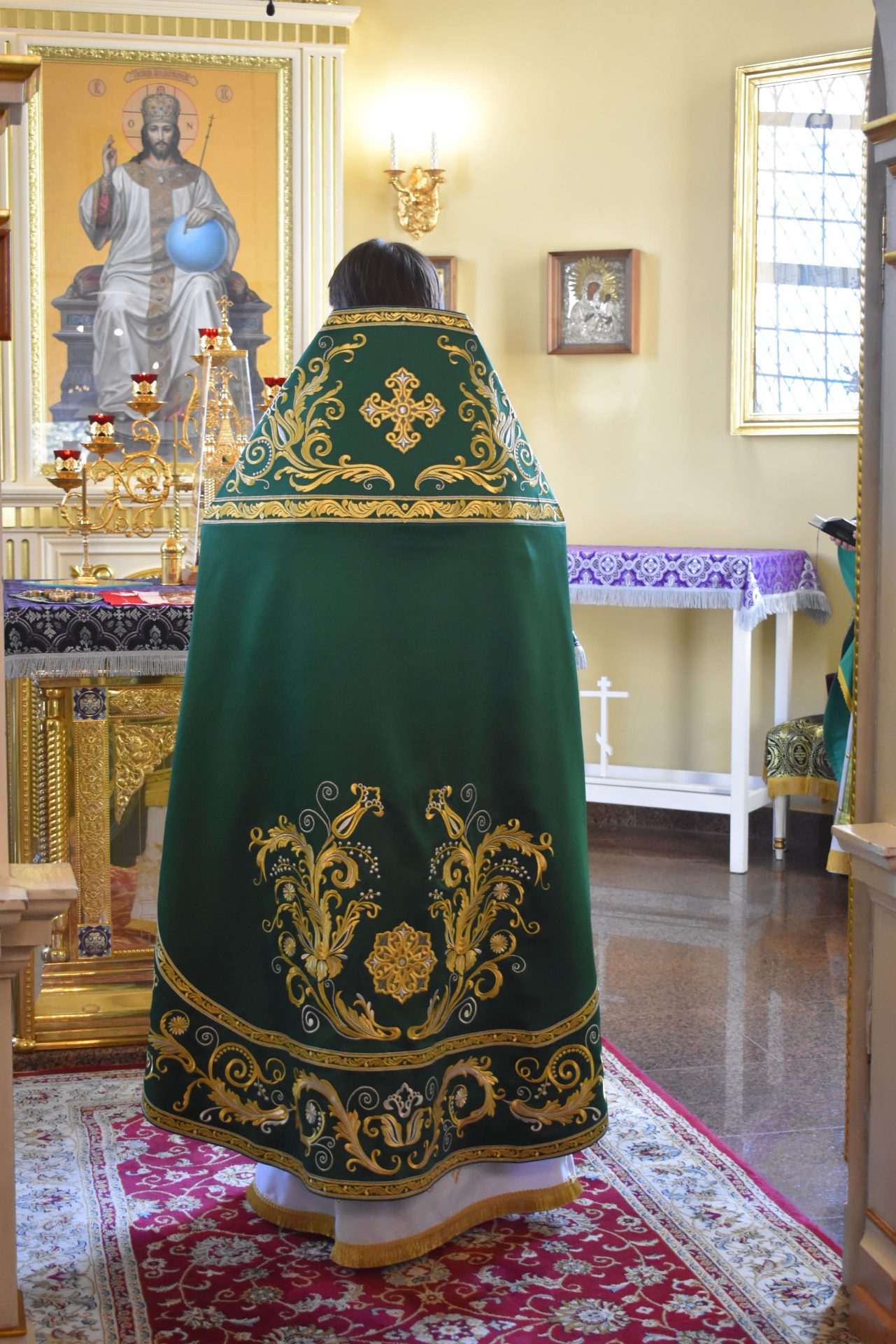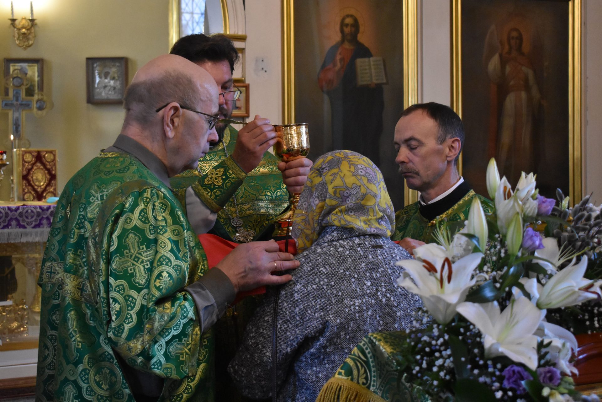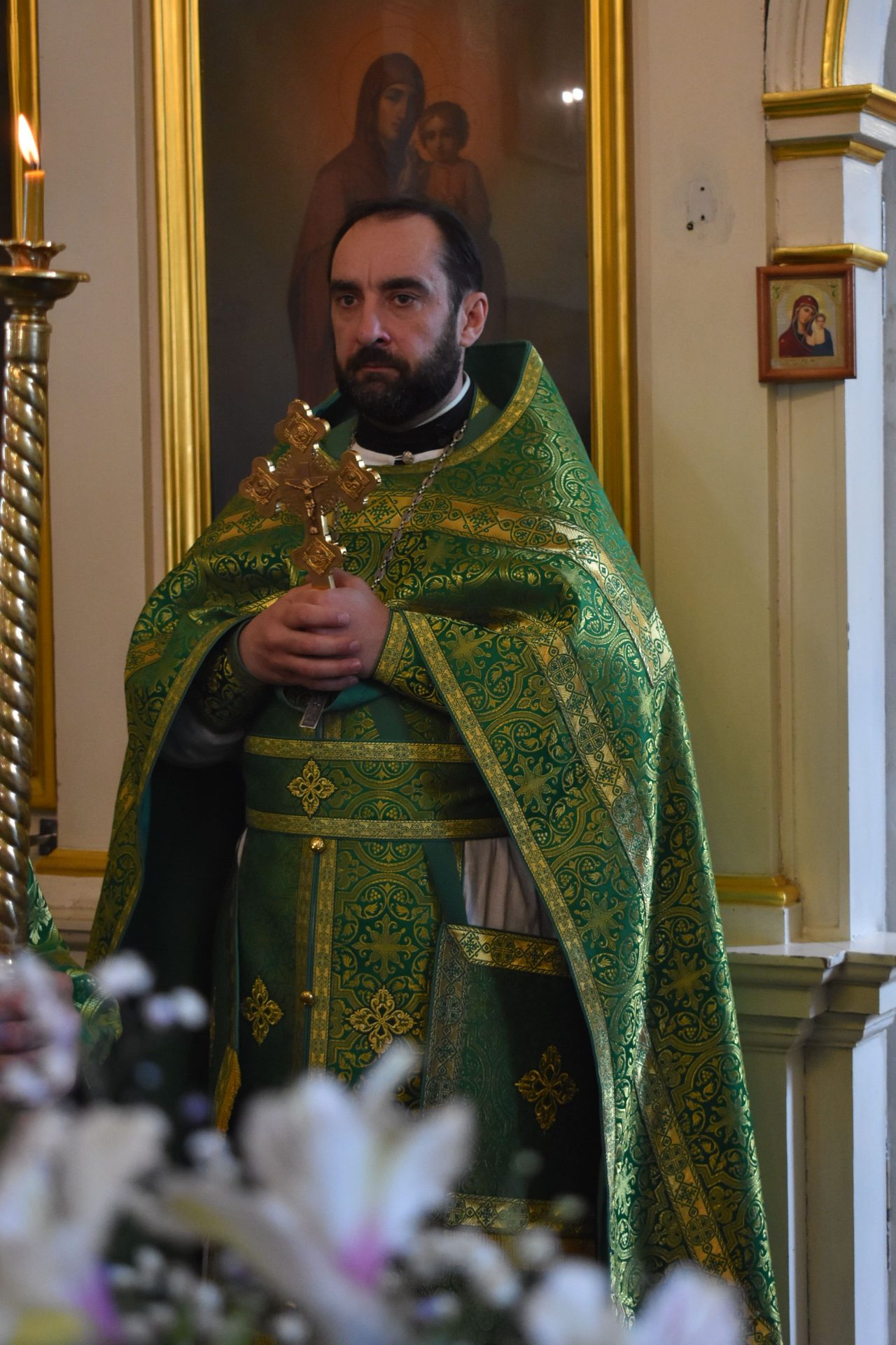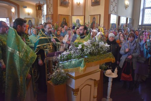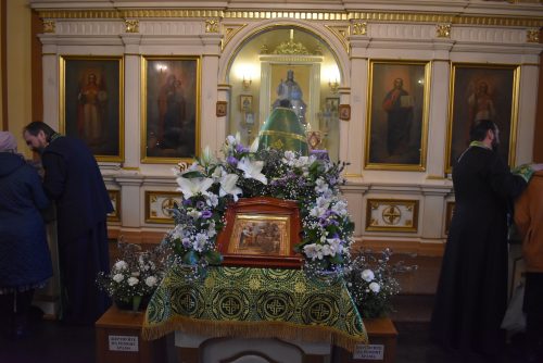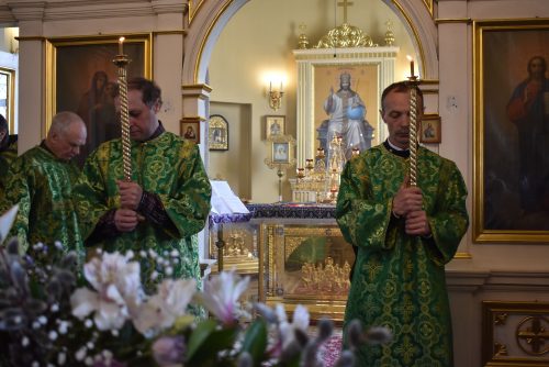 По окончанию поздней Литургии было совершено славление празднику и настоятель храма протоиерей Вячеслав Вабищевич поздравлял всех с праздником и обращался к верующим со словом назидания.