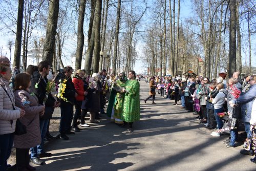 Накануне, 8 апреля вечером, было совершено всенощное бдение. После чтения Евангелия, по 50-ом псалме, были освящены вербы.