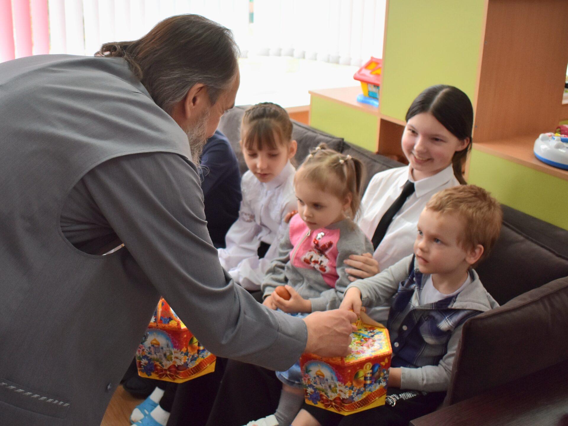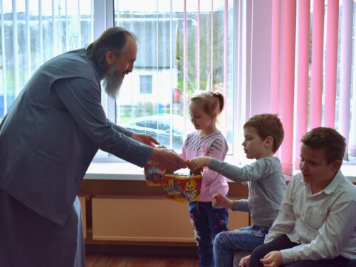 13 апреля 2026 года, в Понедельник Светлой седмицы, благочинный Вилейского церковного округа, настоятель прихода храма преподобной Марии Египетской г. Вилейка протоиерей Вячеслав Вабищевич, совместно с заместителем председателя Вилейского районного исполнительного комитета по социальной сфере Слепцовой Людмилой Михайловной, посетил ГУО «Вилейский районный социально — педагогический центр» в аг.Шиловичи. Протоиерей Вячеслав поздравил воспитанников и педагогов со Светлым Христовым Воскресением, пропел с детьми тропарь Пасхи и вручил подарки, приобретенные на средства, вырученные во время акции Ярмарка добра, которая прошла в дни Великого поста в храме преподобной Марии Египетской г.Вилейка.