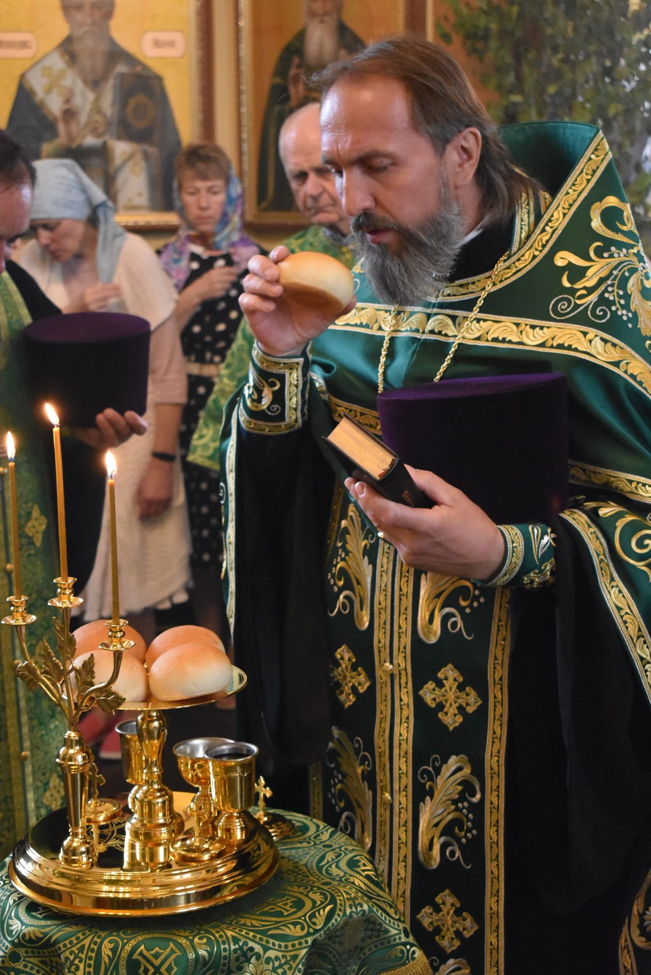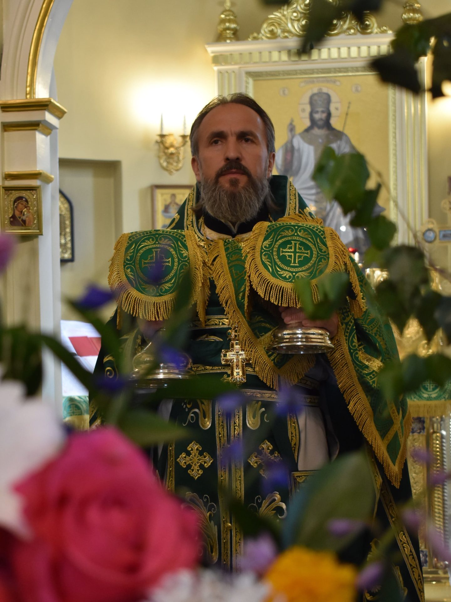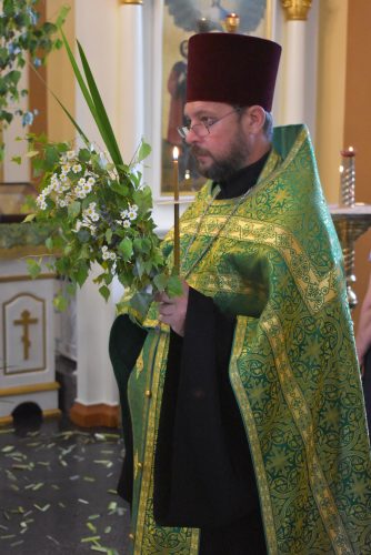 По окончании Великой вечерни настоятель храма протоиерей Вячеслав поздравил всех с праздником Святой Троицы и обратился к верующим со словом назидания.
