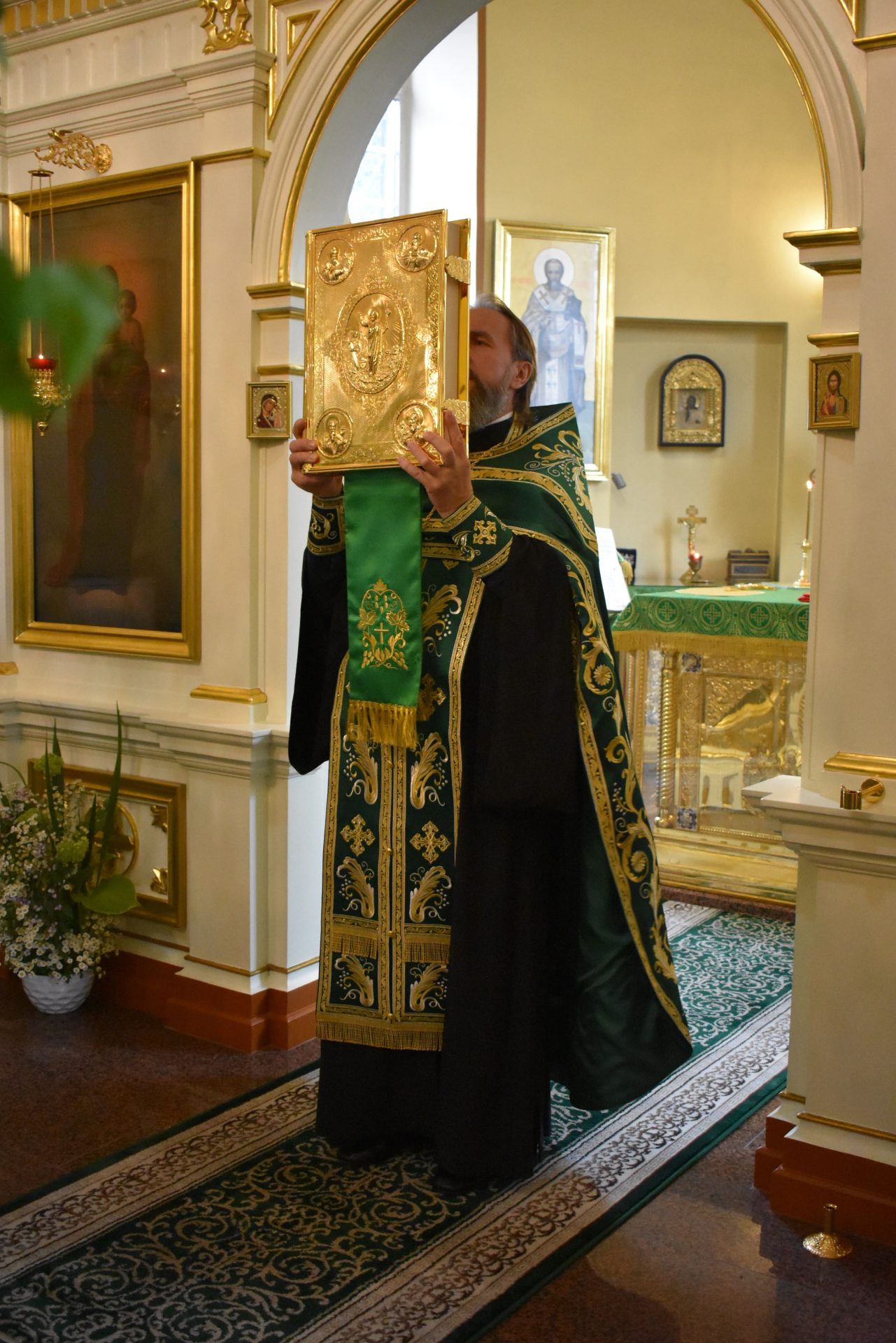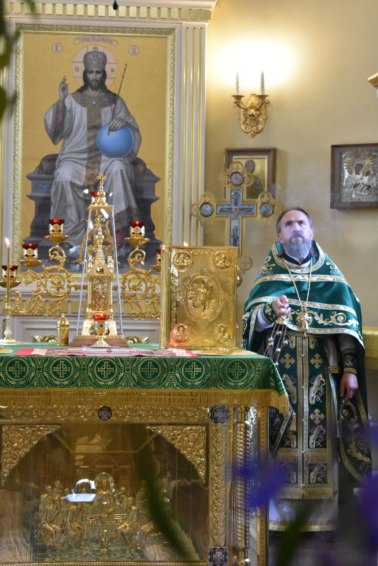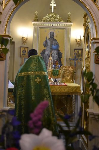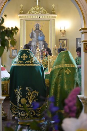 Позднюю Божественную Литургию совершил настоятель храма протоиерей Вячеслав Вабищевич, в сослужении клирика храма иерея Димитрия Власенко.