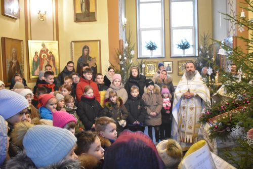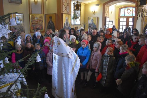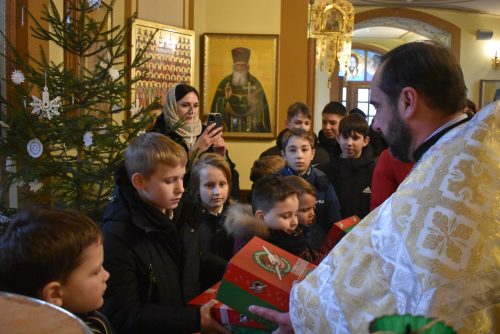 Начало мероприятия было положено в храме Преподобной Марии Египетской г.Вилейка, где детей из общеобразовательных школ города и района встретил благочинный Вилейского церковного округа протоиерей Вячеслав Вабищевич, священники храмов г.Вилейка и гости праздника. Протоиерей Вячеслав Вабищевич обратился к собравшимся с приветственным словом, затем хор храма преподобной Марии Египетской пропел Рождественские колядки. И, по хорошей традиции, священники подарили всем подарки.
