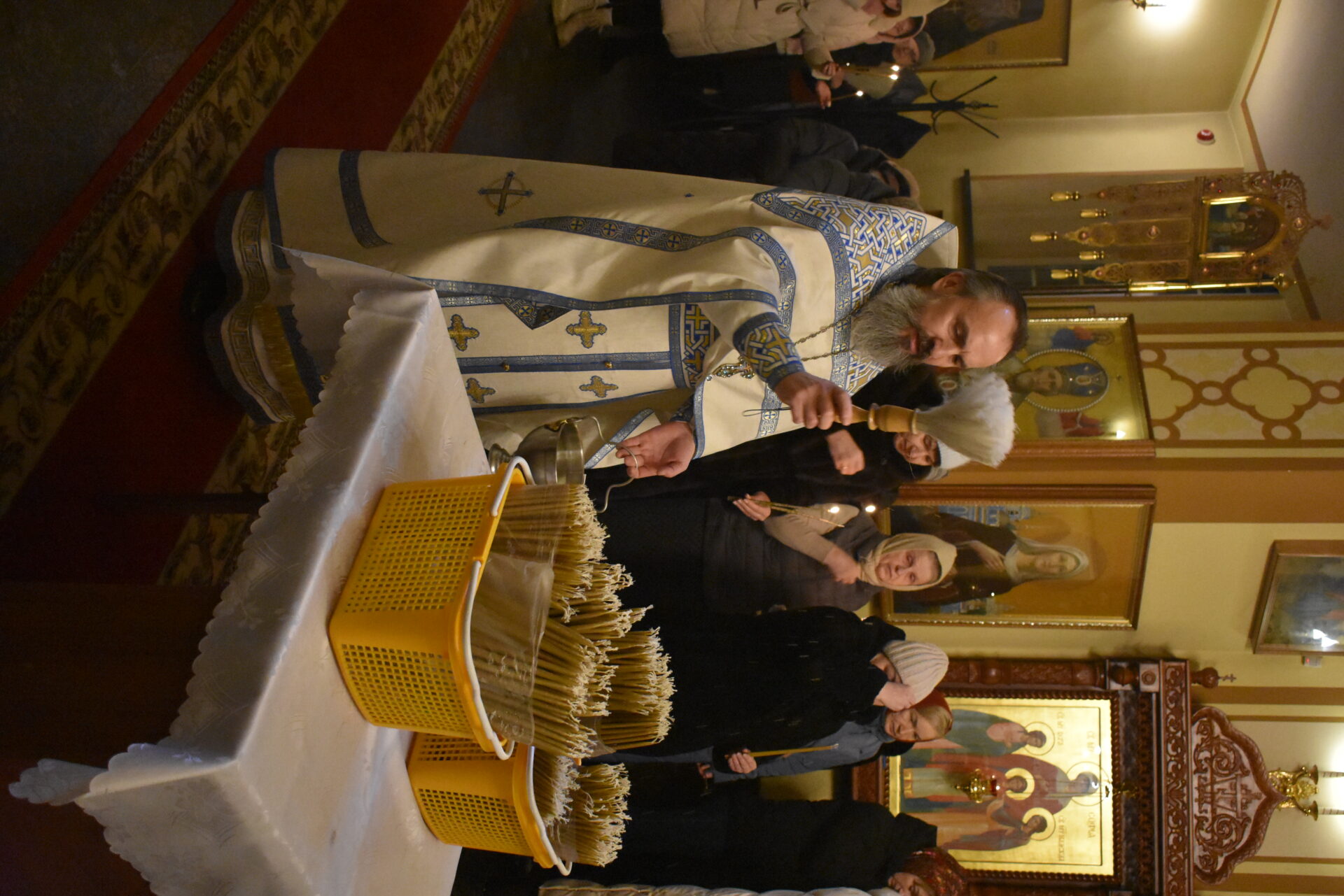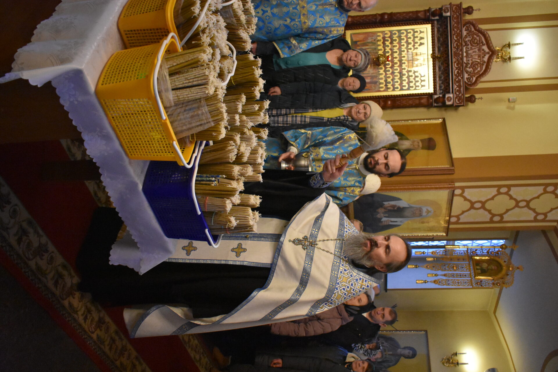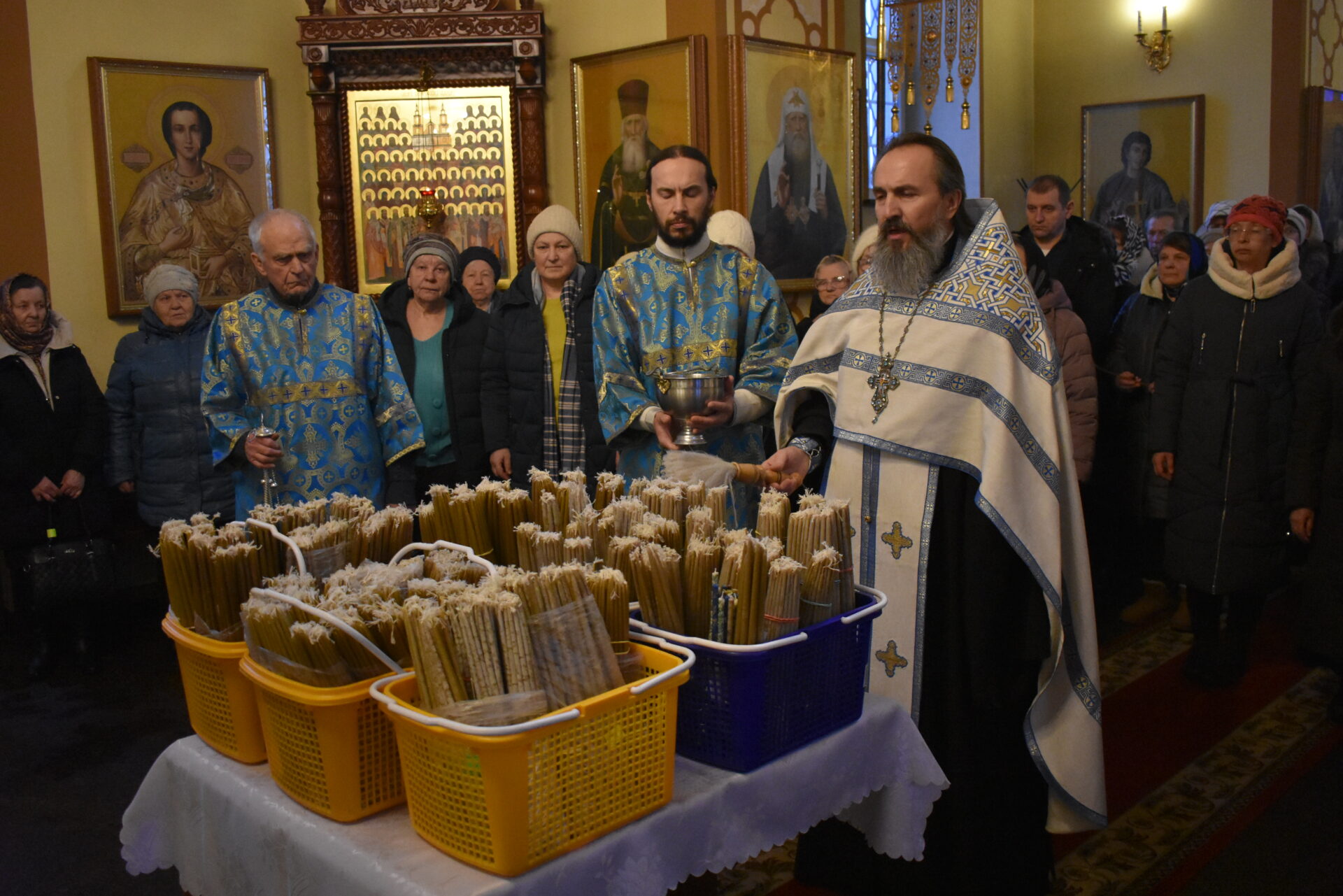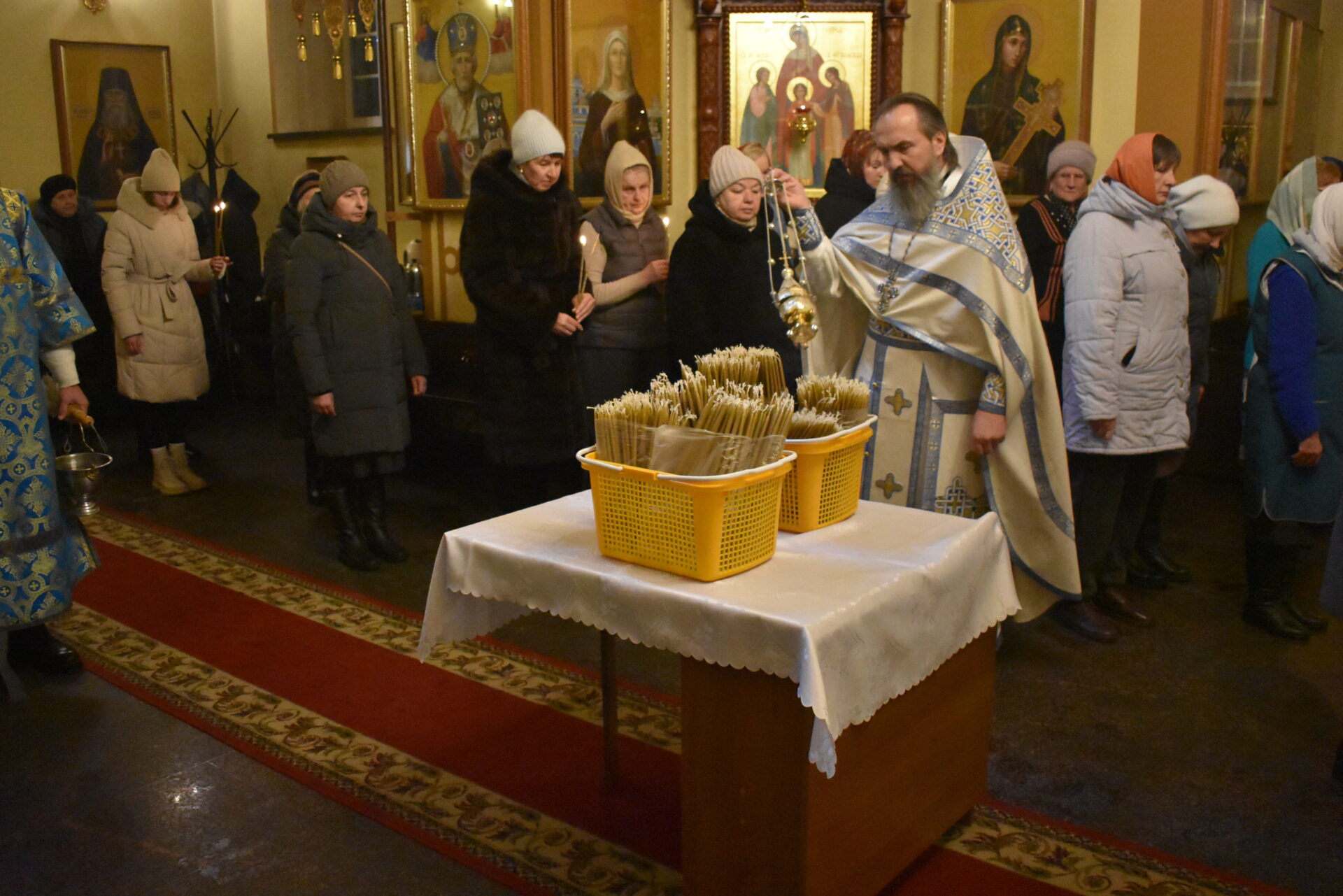 Накануне вечером было совершено вечернее богослужение и чин освящения свечей.