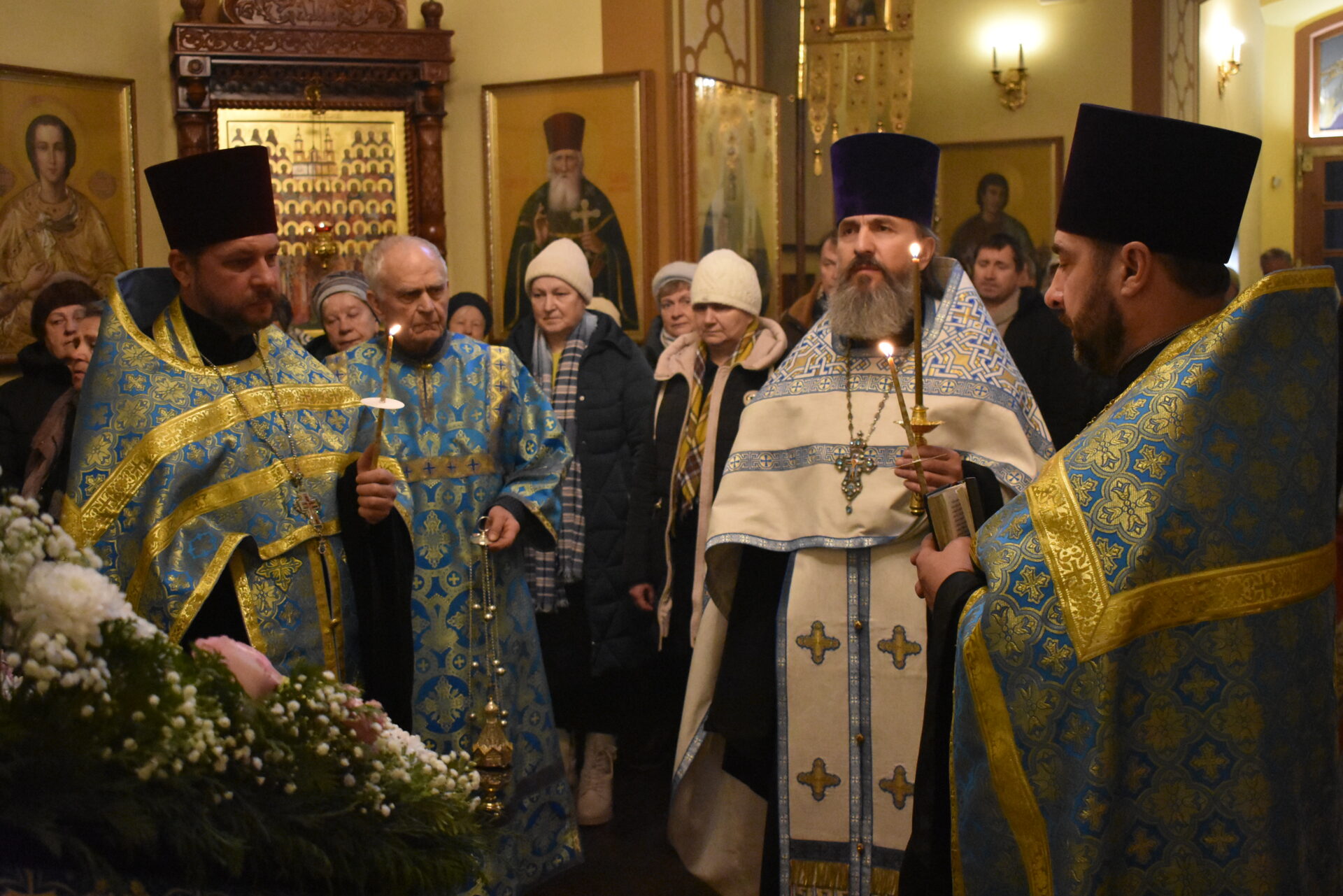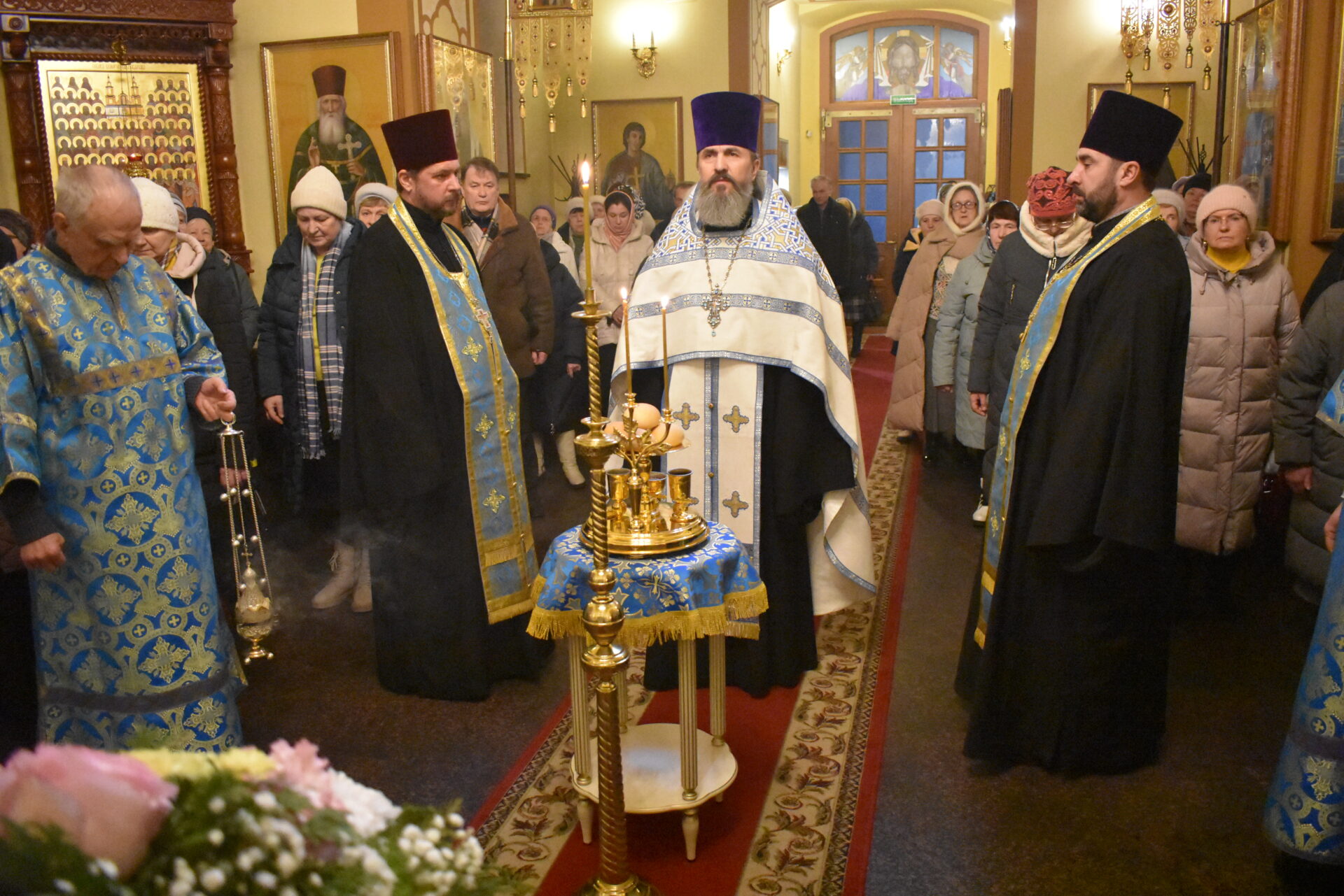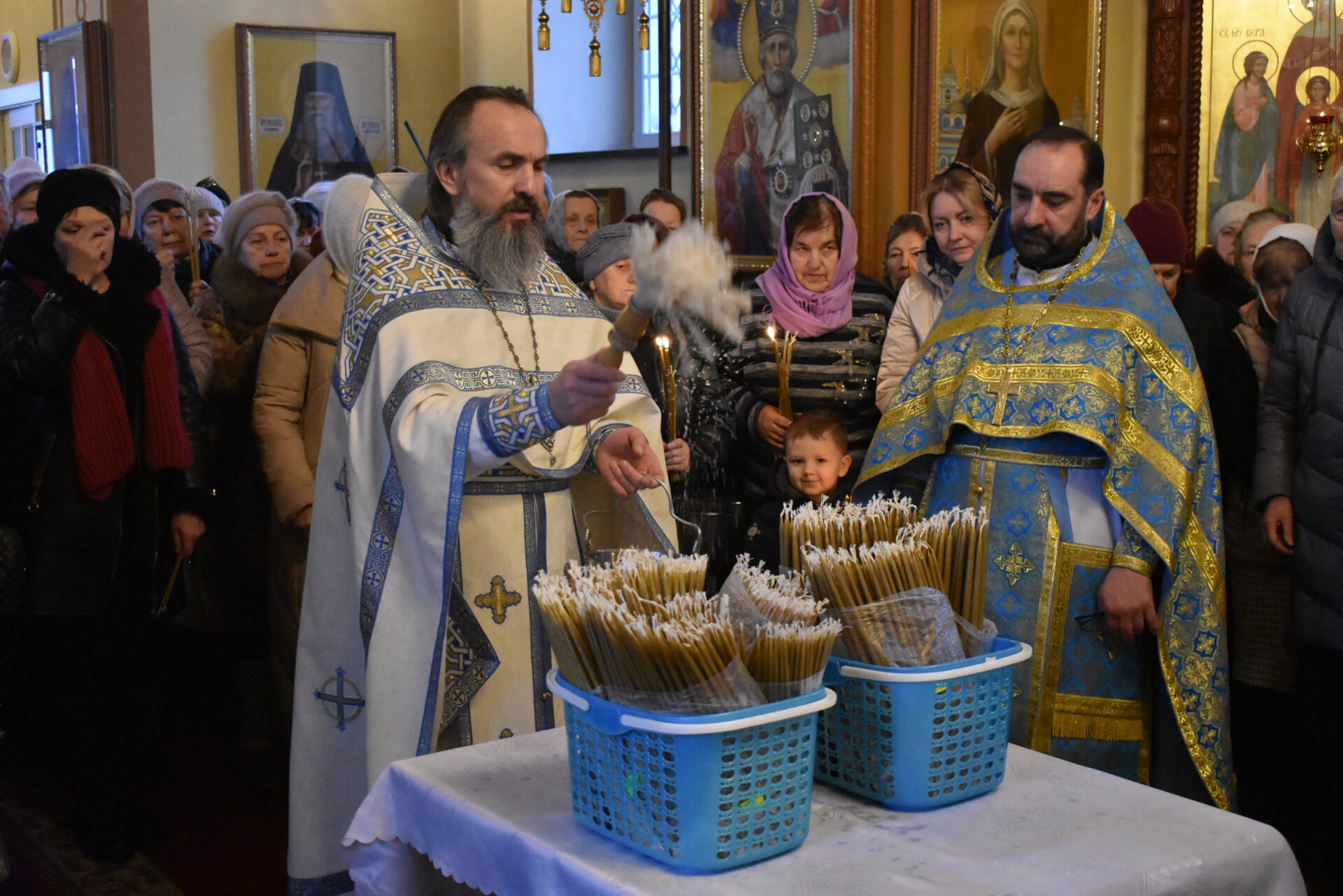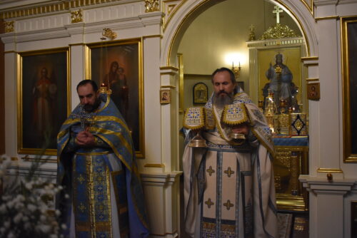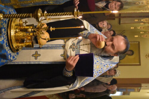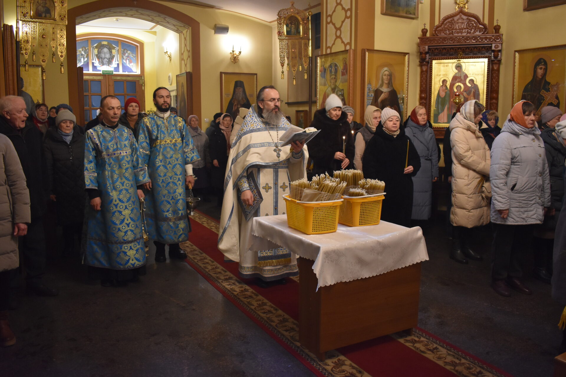 Накануне вечером было совершено вечернее богослужение и чин освящения свечей.