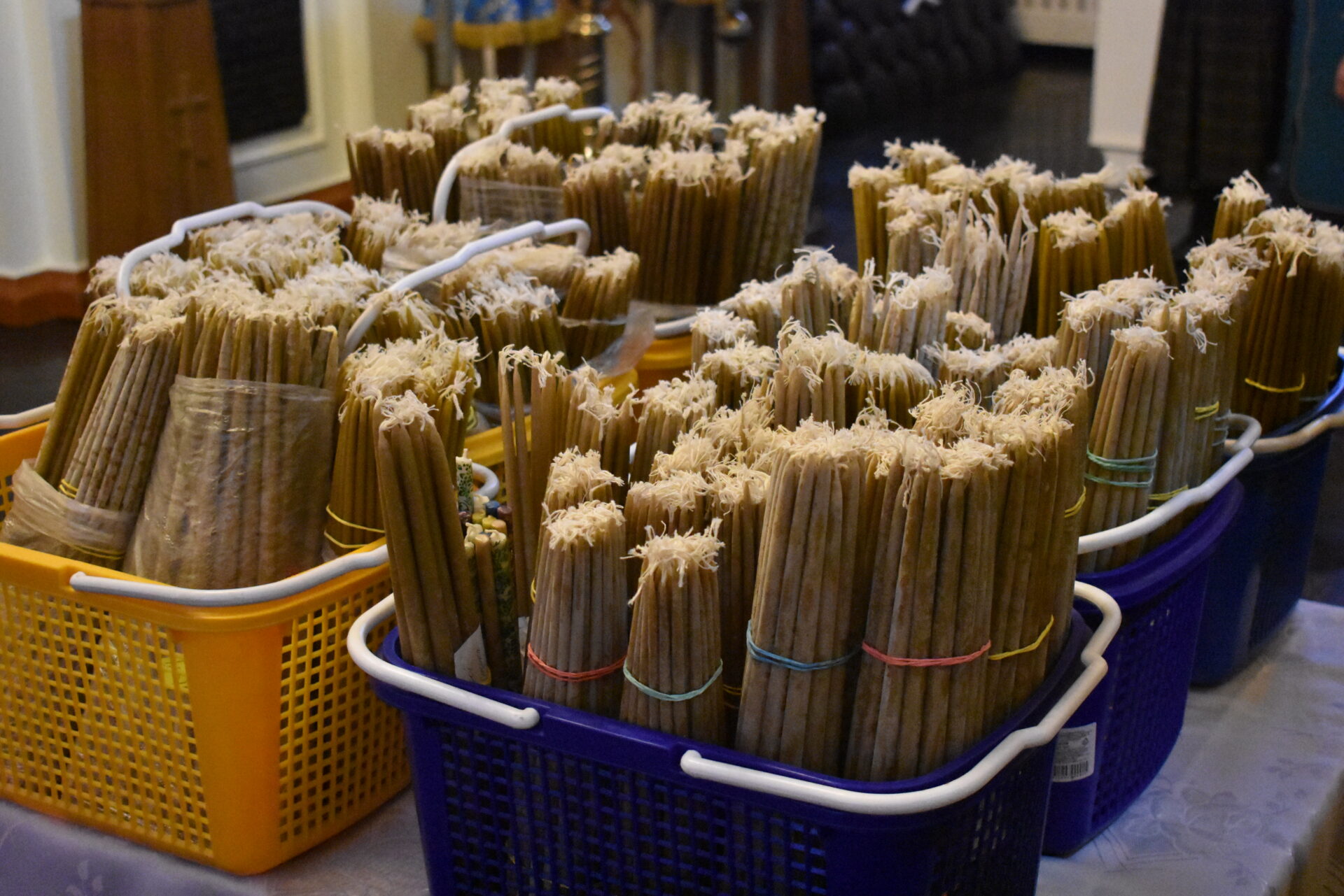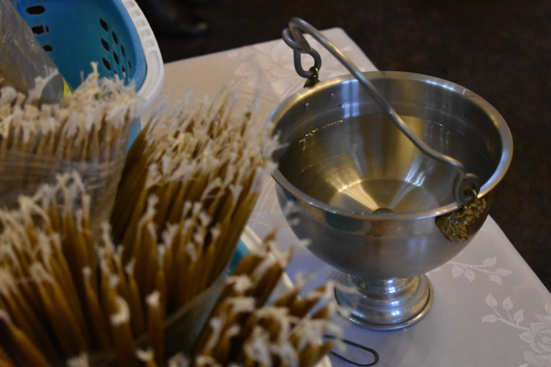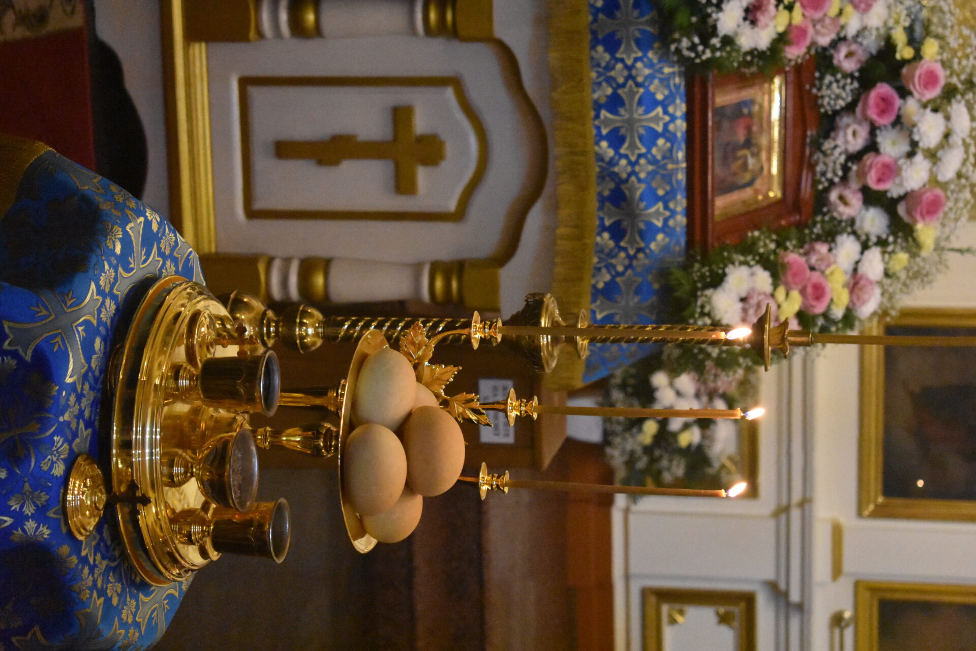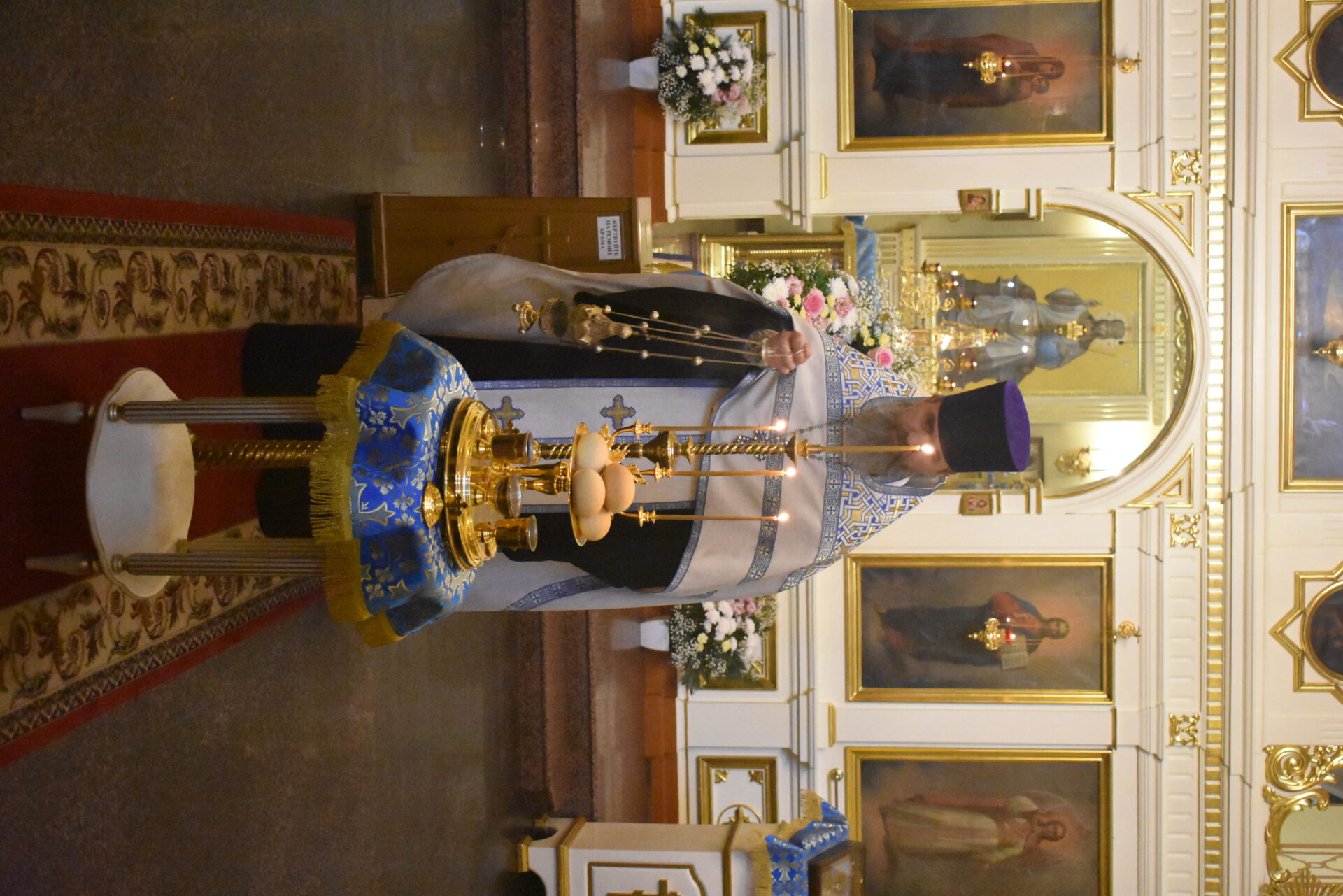 Накануне вечером было совершено вечернее богослужение и чин освящения свечей.