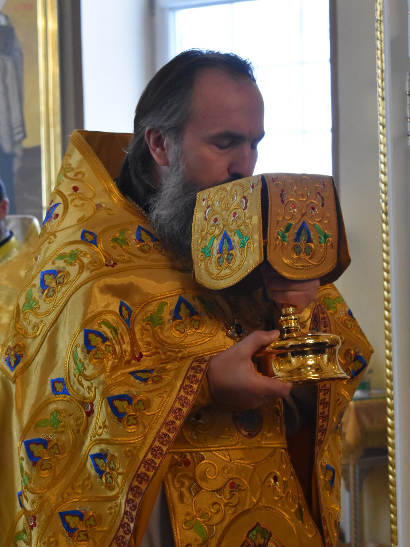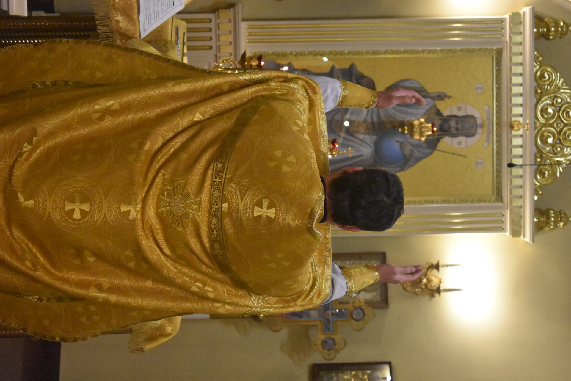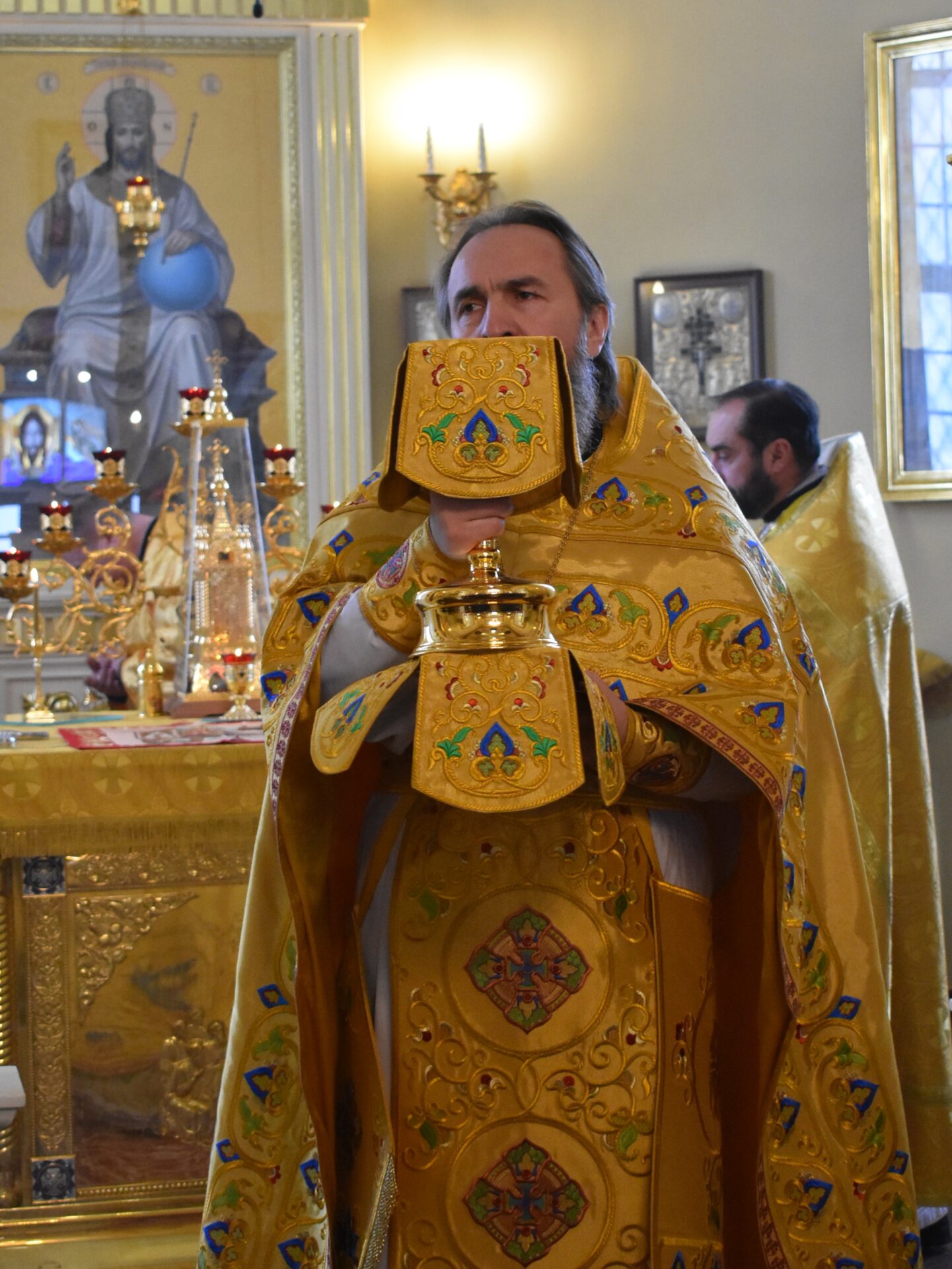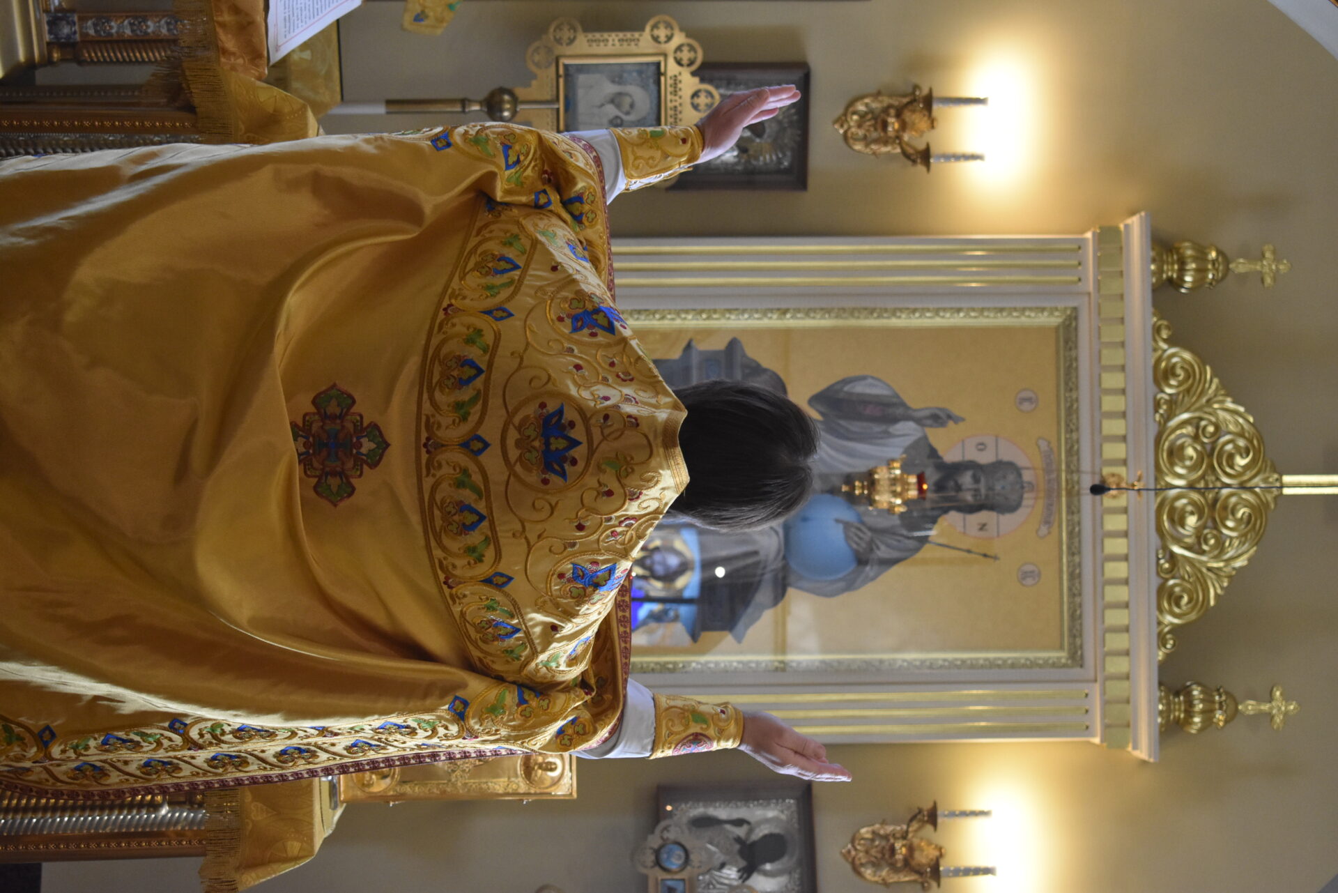 По окончании Литургии протоиерей Вячеслав поздравил присутствующих с праздником и обратился со словом назидания.