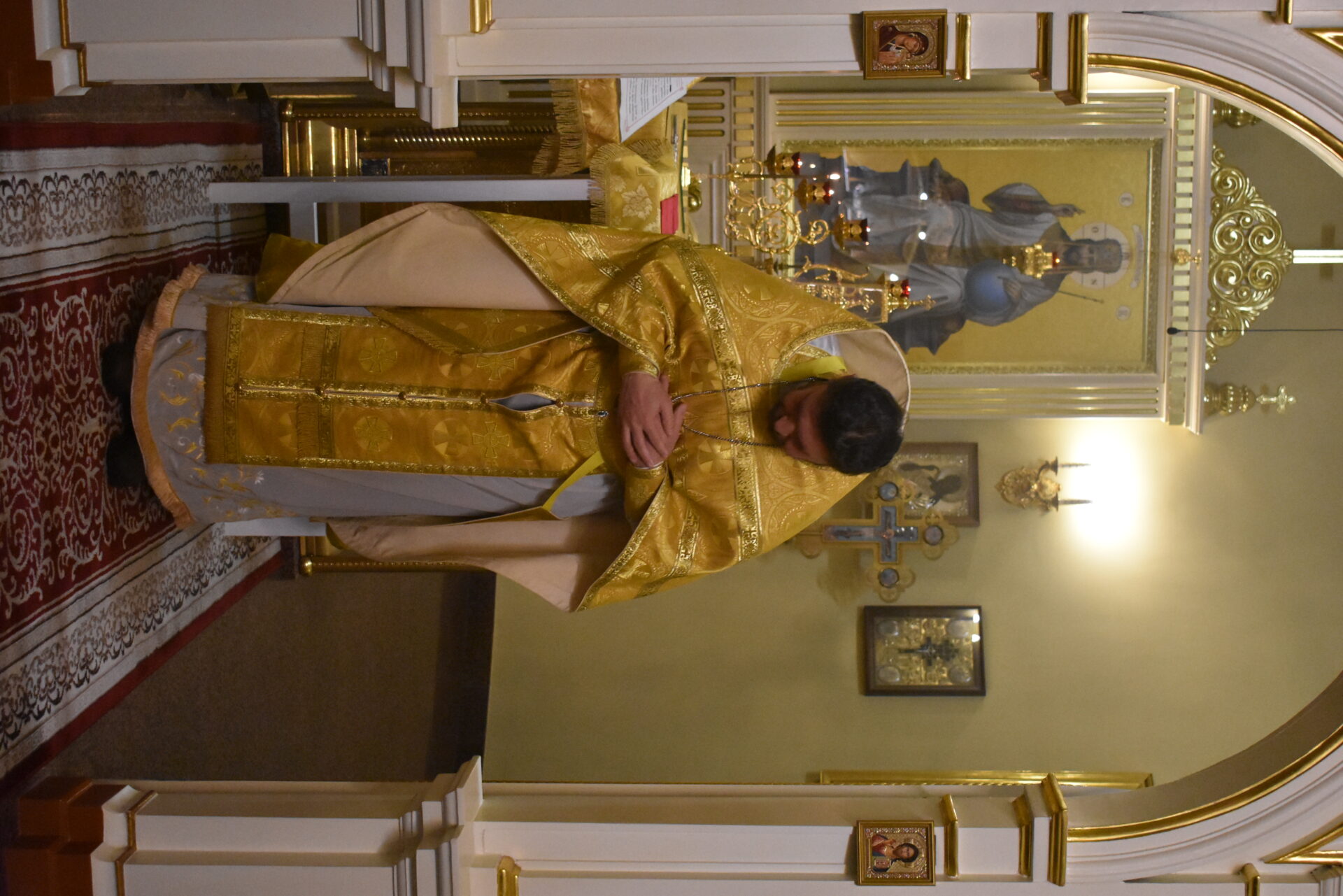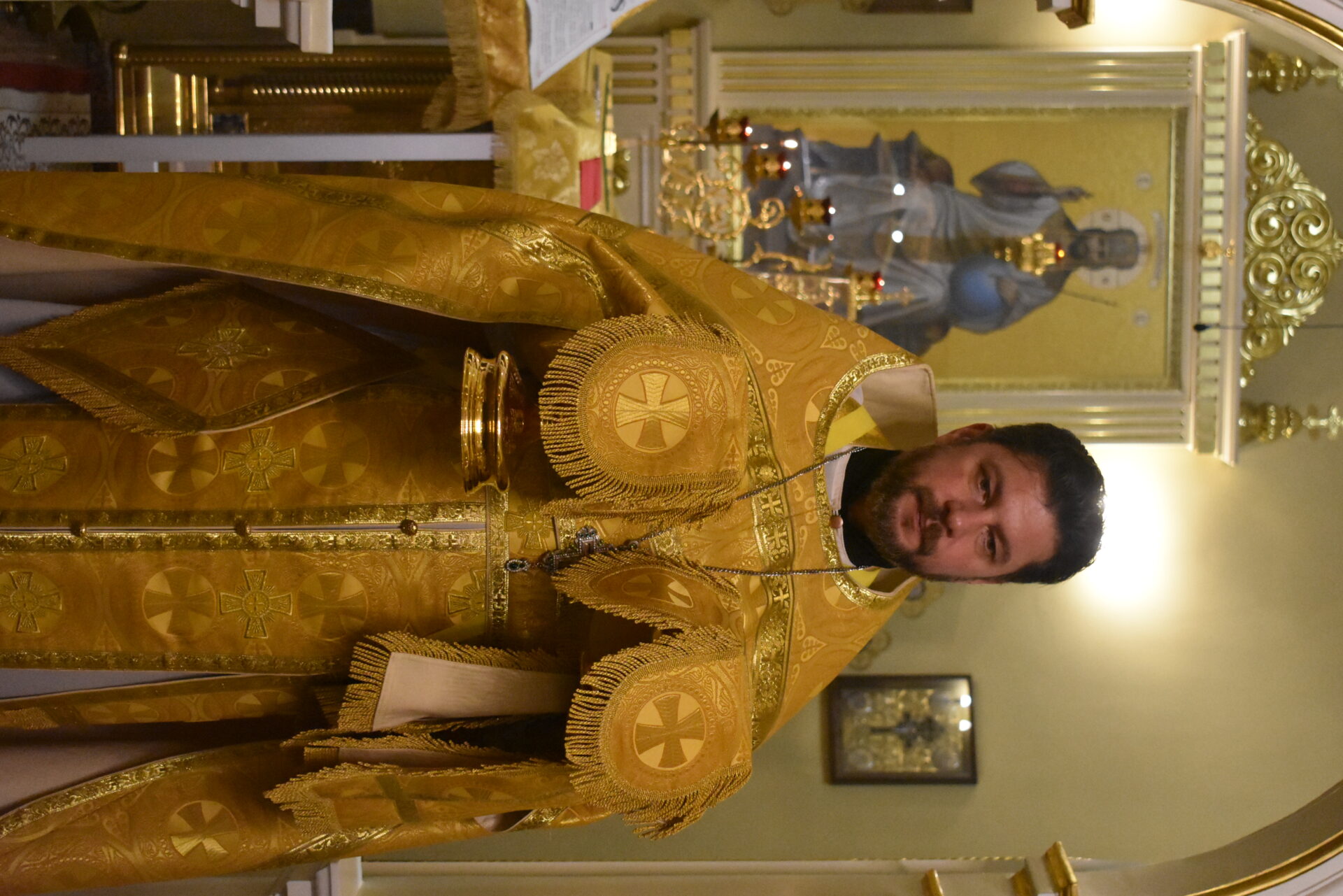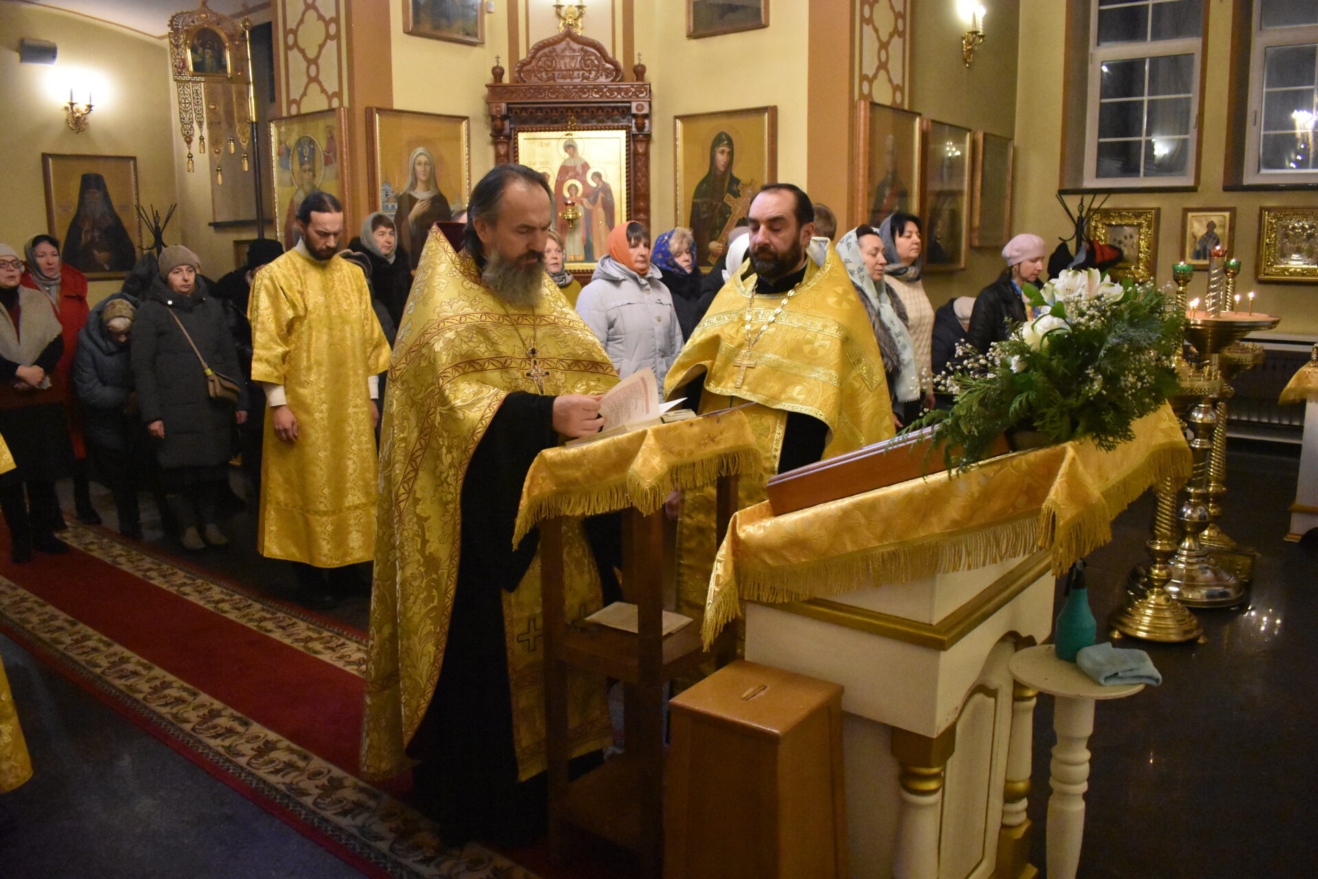 По окончании Литургии протоиерей Вячеслав поздравил присутствующих с праздником и обратился со словом назидания.