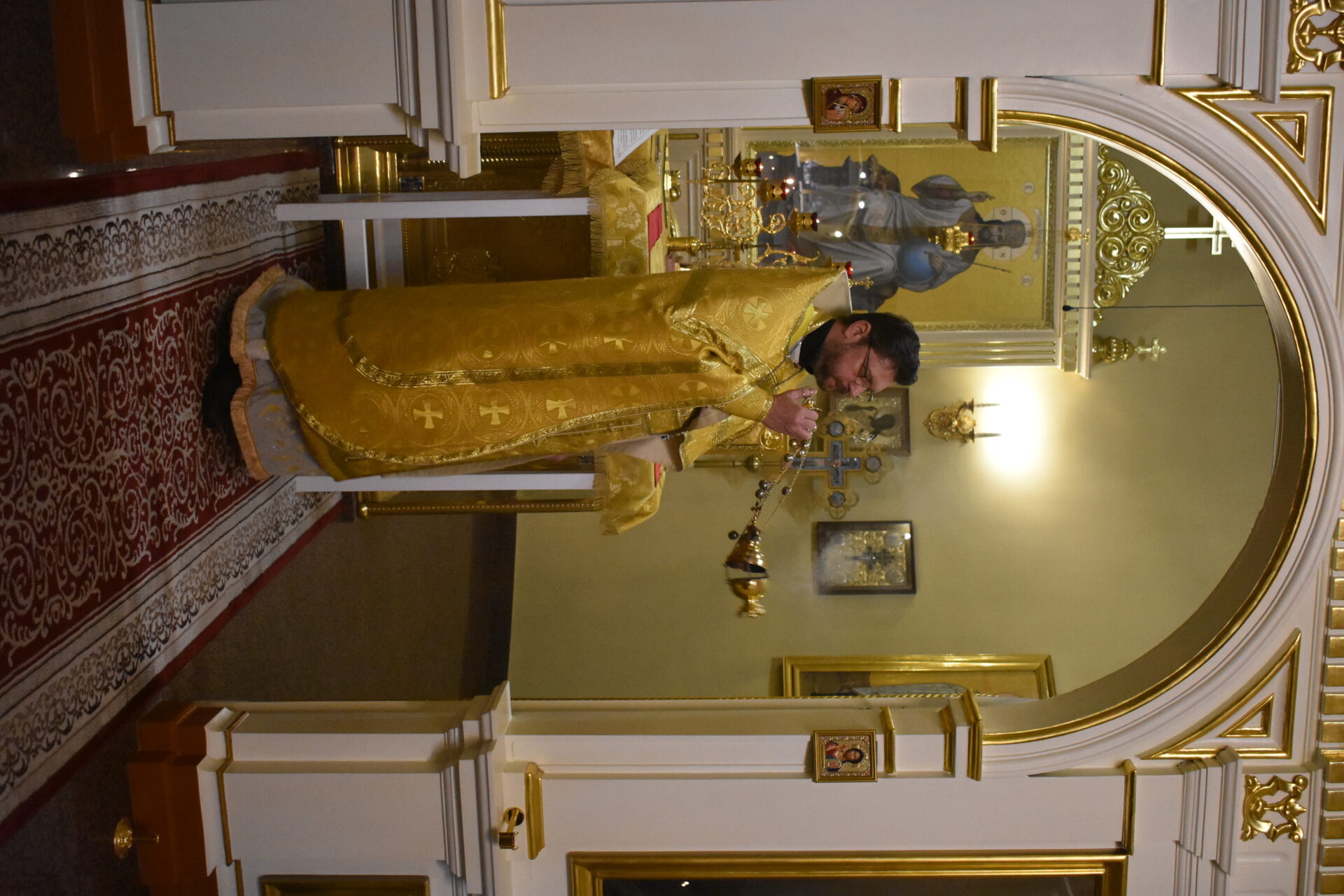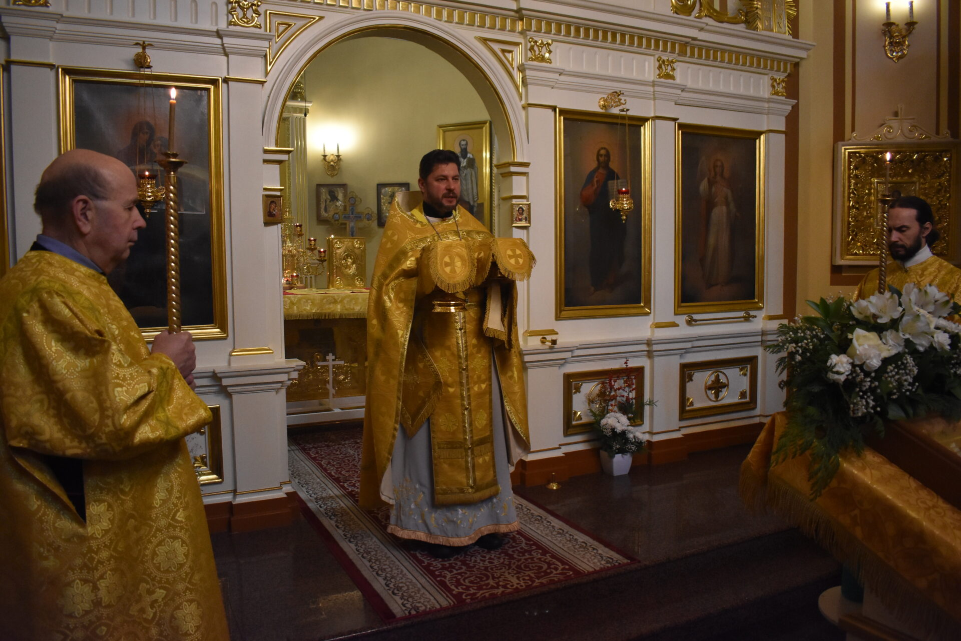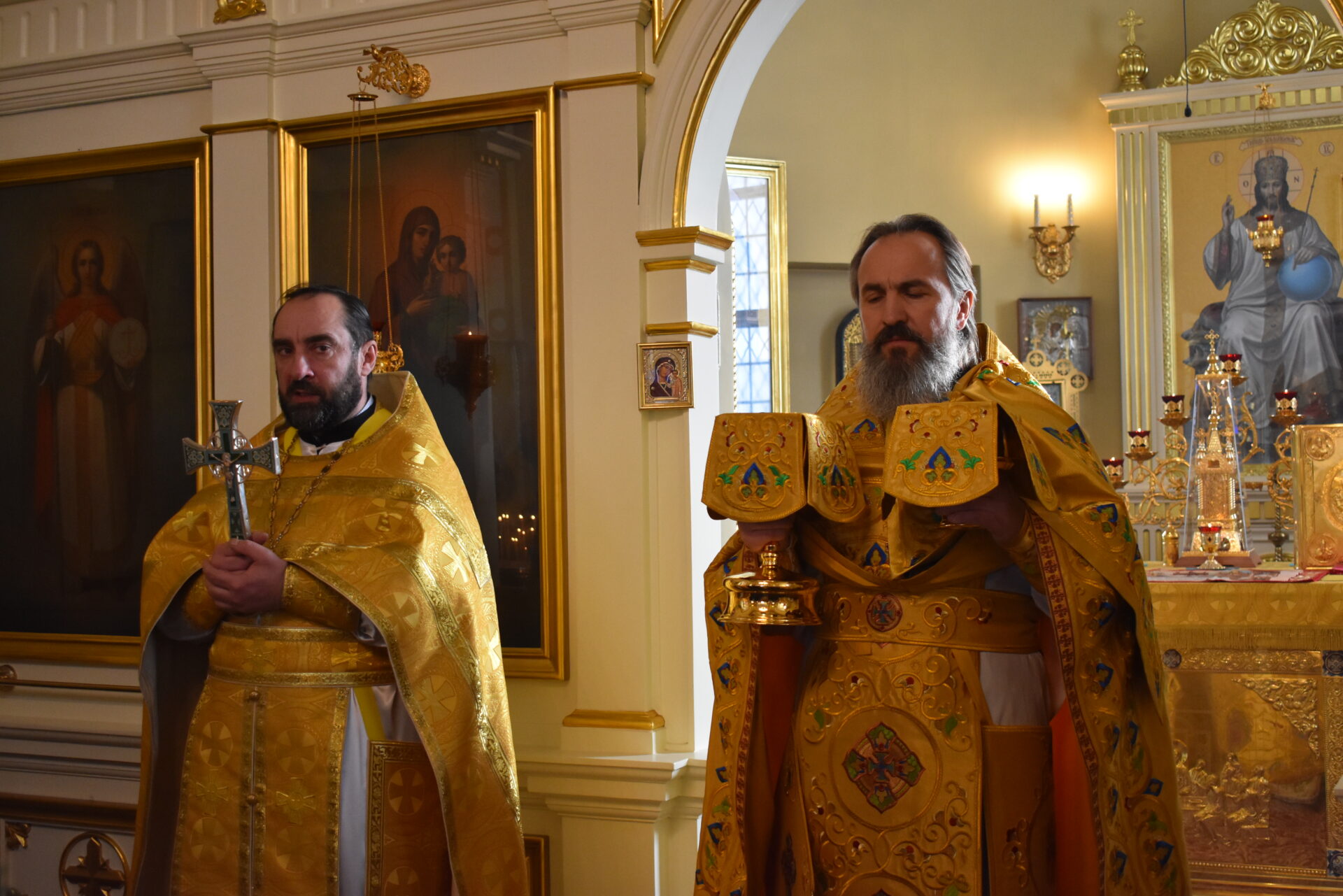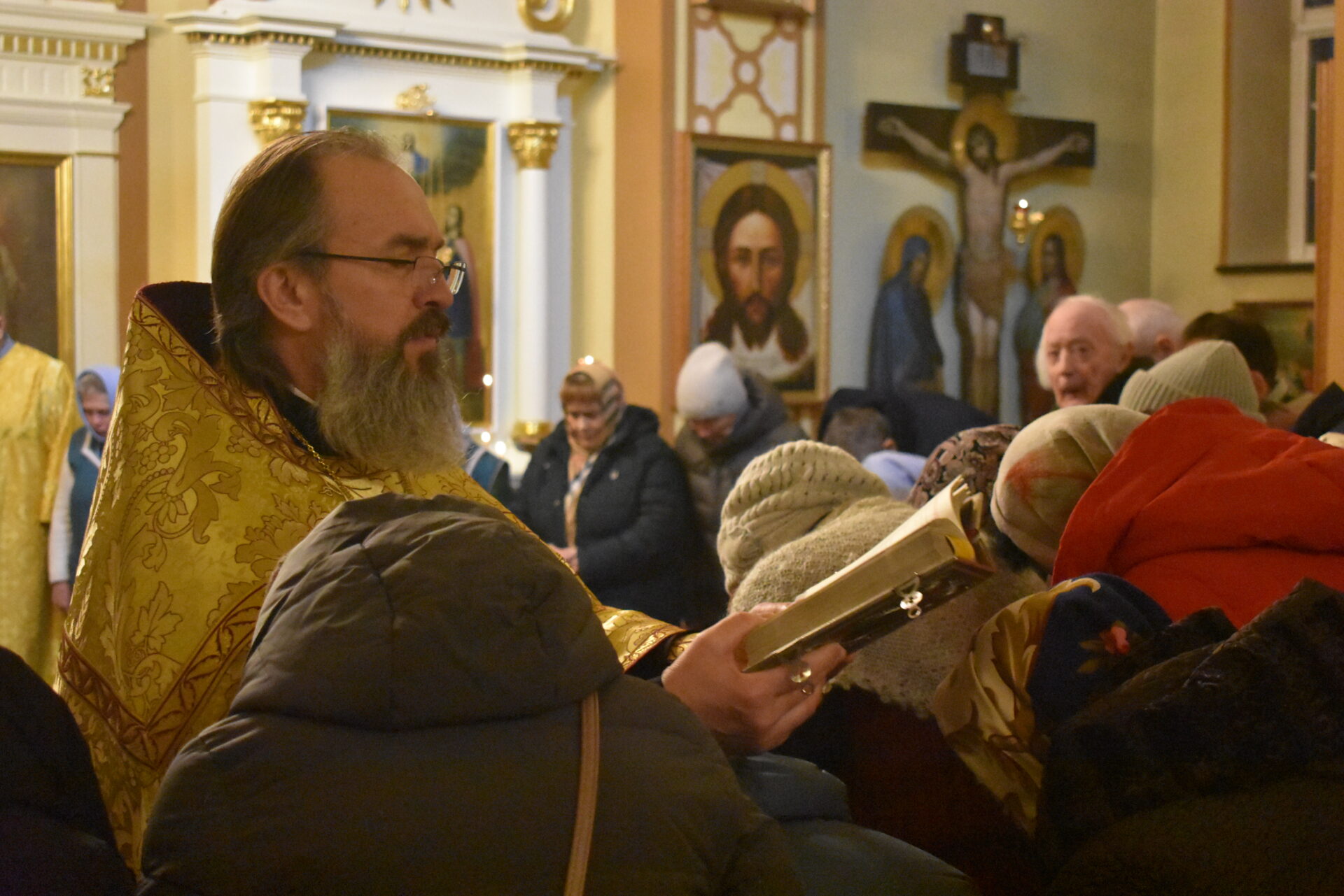 По окончании Литургии протоиерей Вячеслав поздравил присутствующих с праздником и обратился со словом назидания.