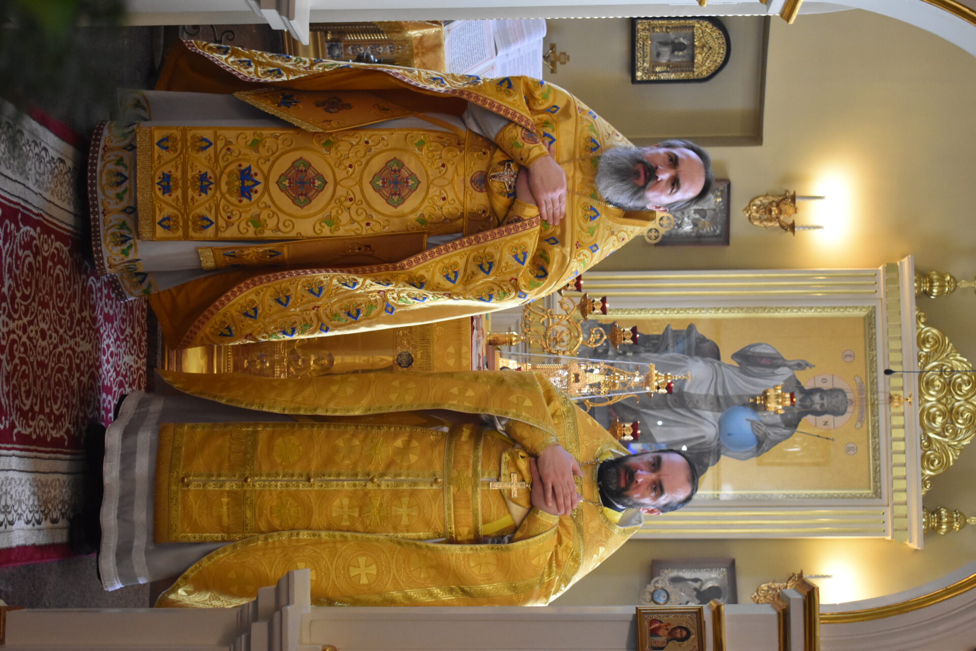 Позднюю Божественную Литургию совершил настоятель храма протоиерей Вячеслав Вабищевич, в сослужении клирика храма иерея Димитрия Власенко.