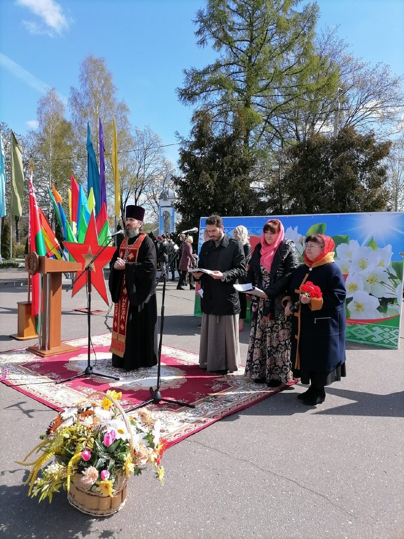 Настоятель Прихода храма преподобной Марии Египетской города Вилейка протоиерей Вячеслав Вабищевич и клирик храма иерей Владимир Гончарук, по приглашению руководства Вилейского районного исполнительного комитета, приняли участие в общегородском торжественном мероприятии, посвященном государственному празднику День Победы на Площади Свободы в городе Вилейка, где отслужили литию.