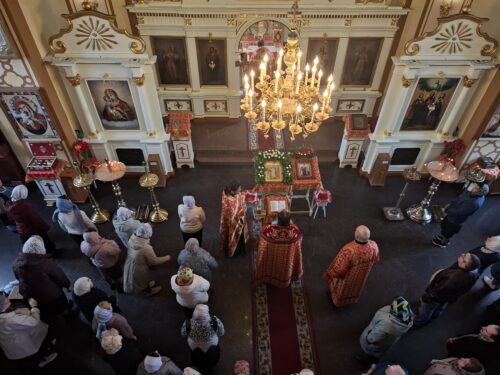 Позднюю Божественную Литургию совершил настоятель храма протоиерей Вячеслав Вабищевич в сослужении клирика храма протоиерея Сергия Вачугова.