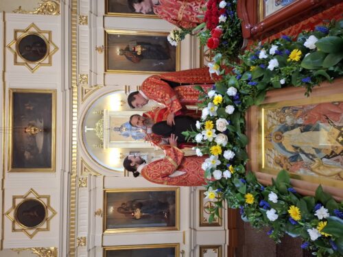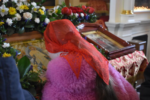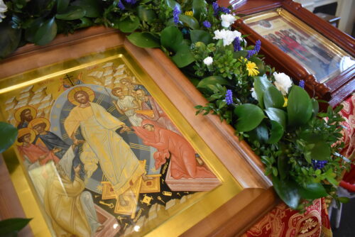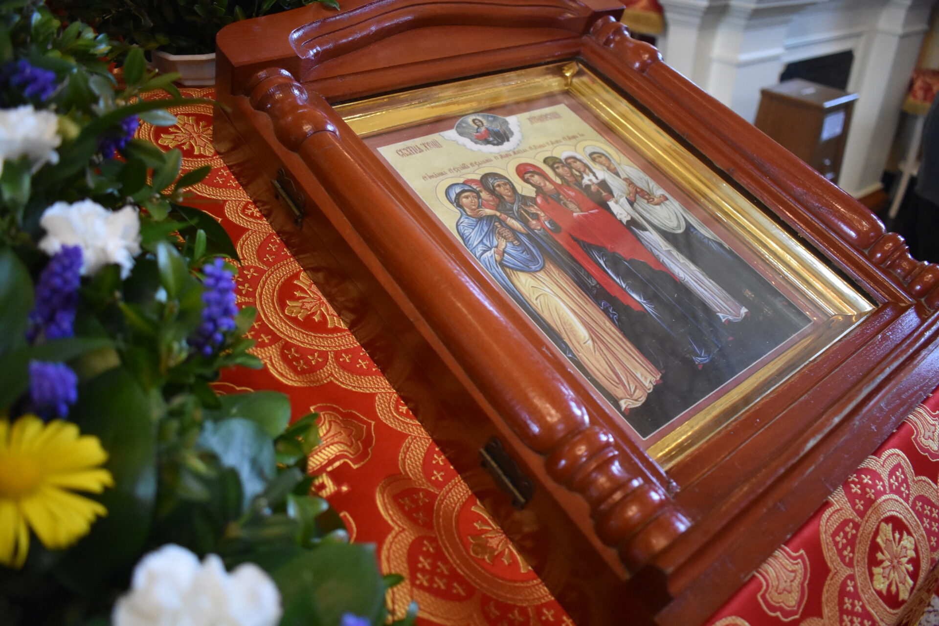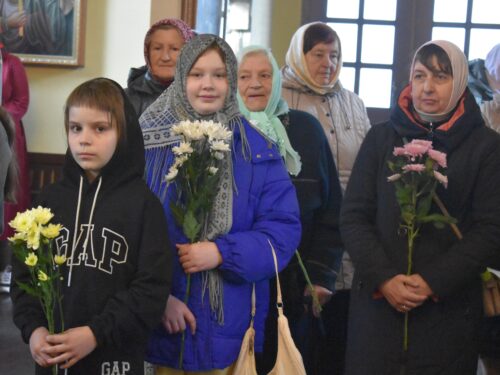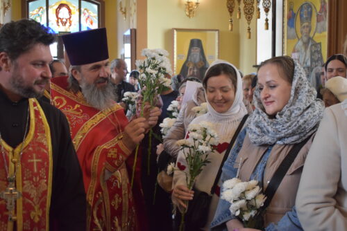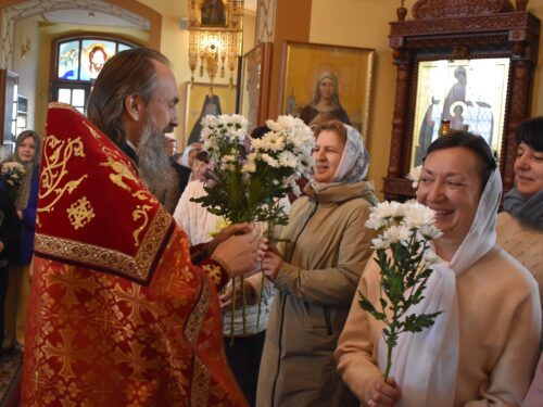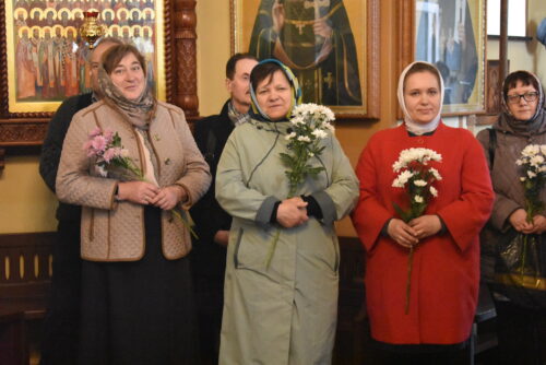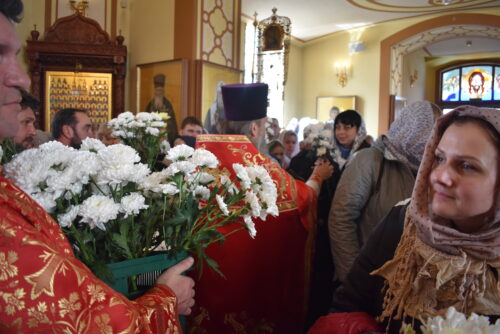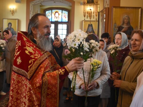По окончании Божественных Литургий всем женщинам присутствующим на Богослужении были вручены цветы, в честь праздника святых жен-мироносиц.