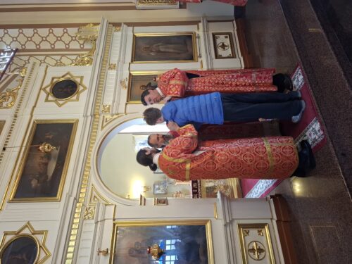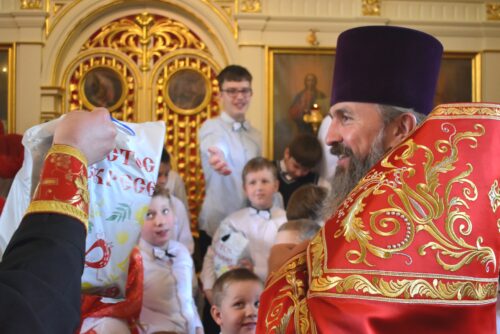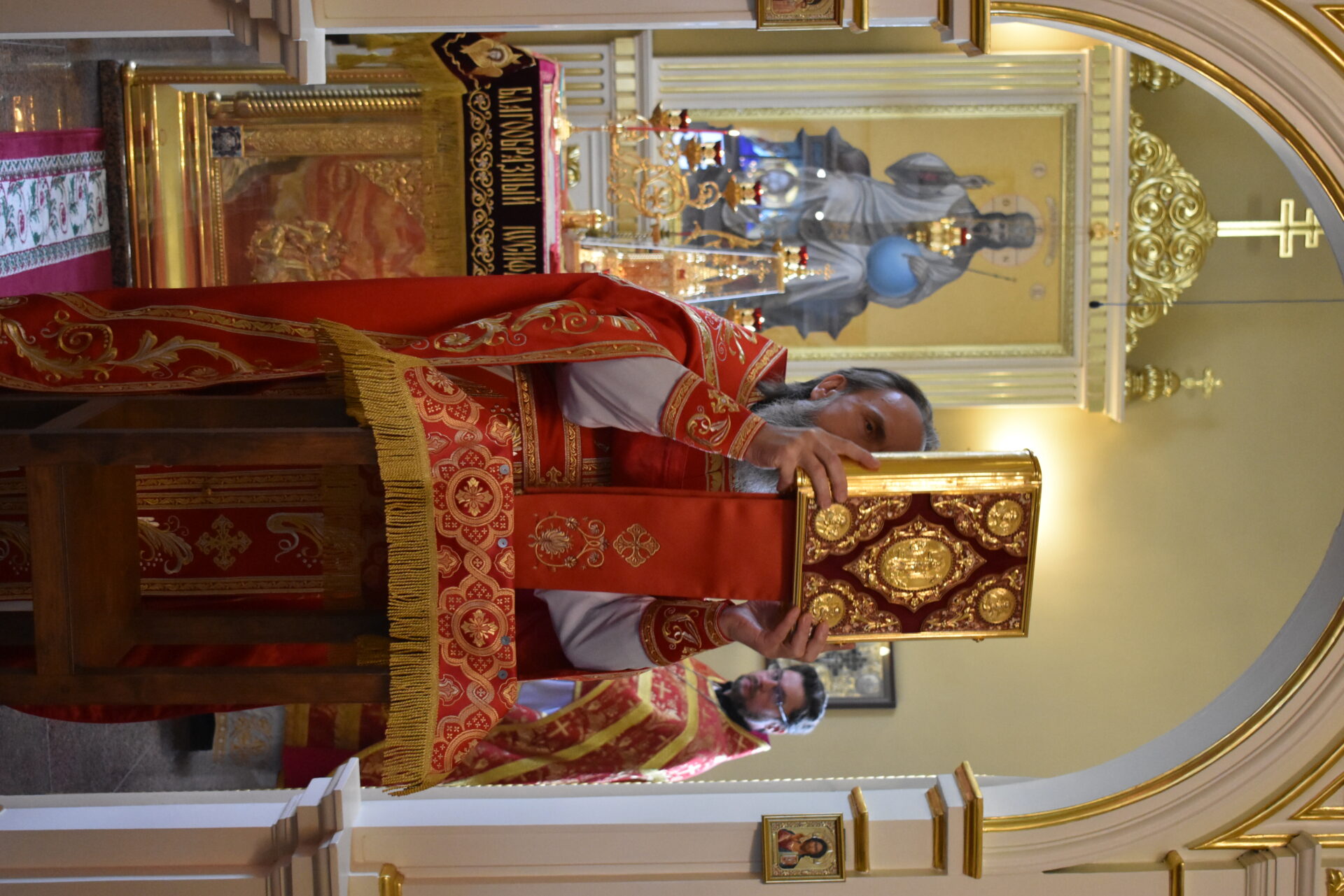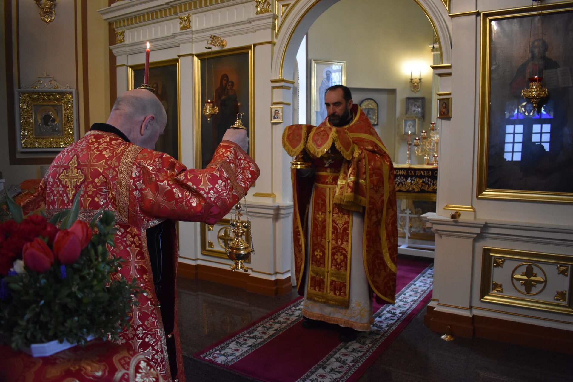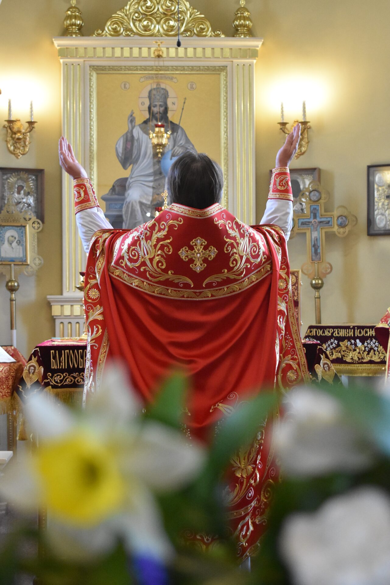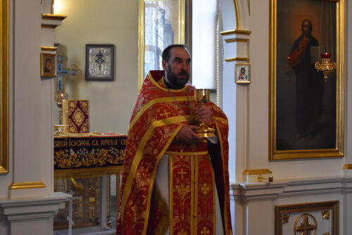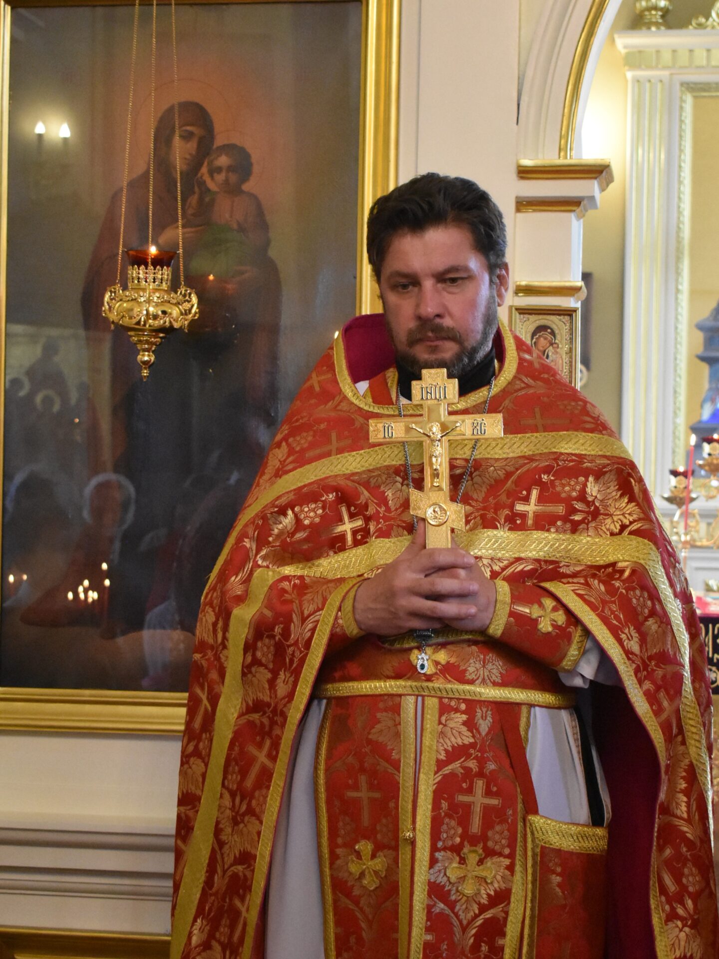 По окончании Божественной Литургии протоиерей Вячеслав поздравил всех верующих с праздником и обратился со словом назидания.