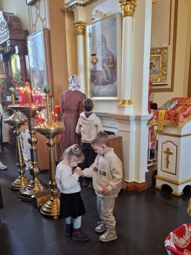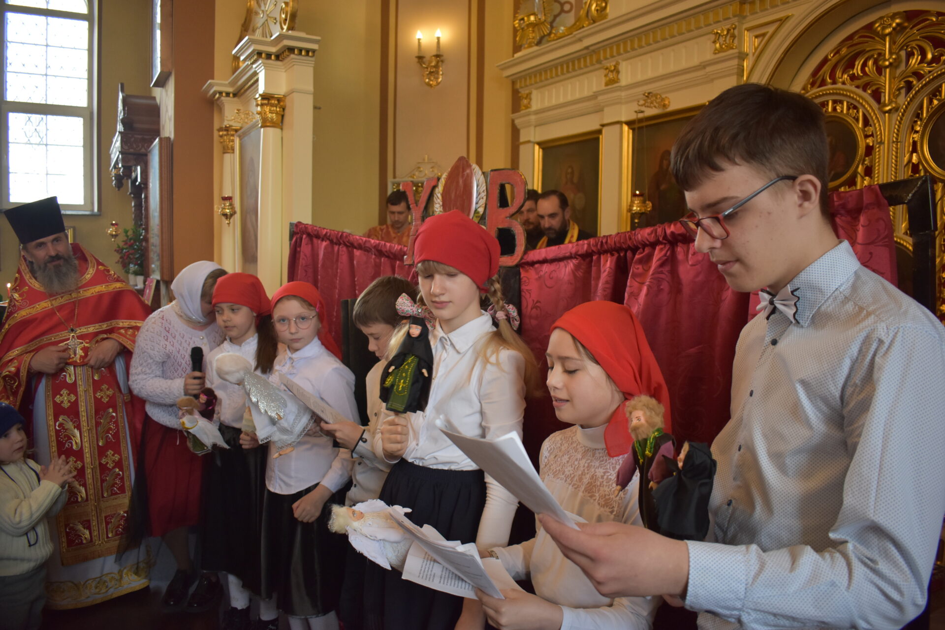 По традиции в этот день воспитанники воскресной школы прихода поздравили всех присутствующих с праздником Святой Пасхи, дети подготовили представление Батлейки, пропели песнопения и прочли стихи. По окончании праздничного мероприятия всем участникам были вручены подарки.