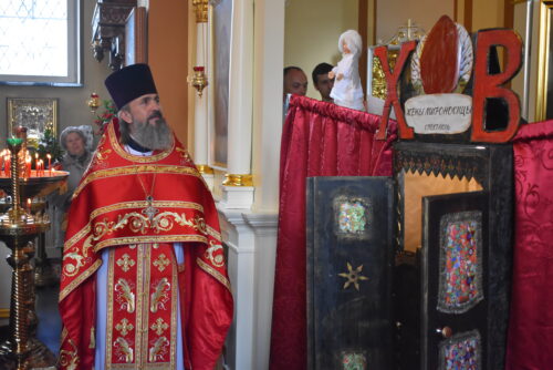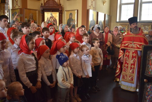 Далее было совершено молебное пение. По окончании которого иерей Димитрий поздравил всех присутствующих с праздником и обратился со словом назидания.