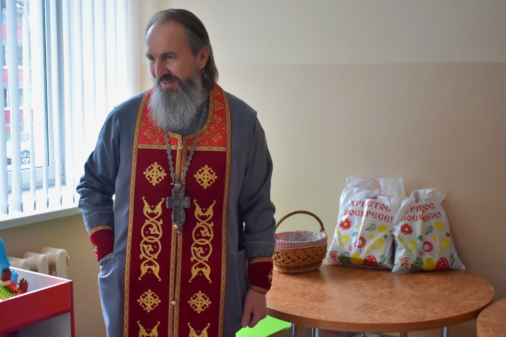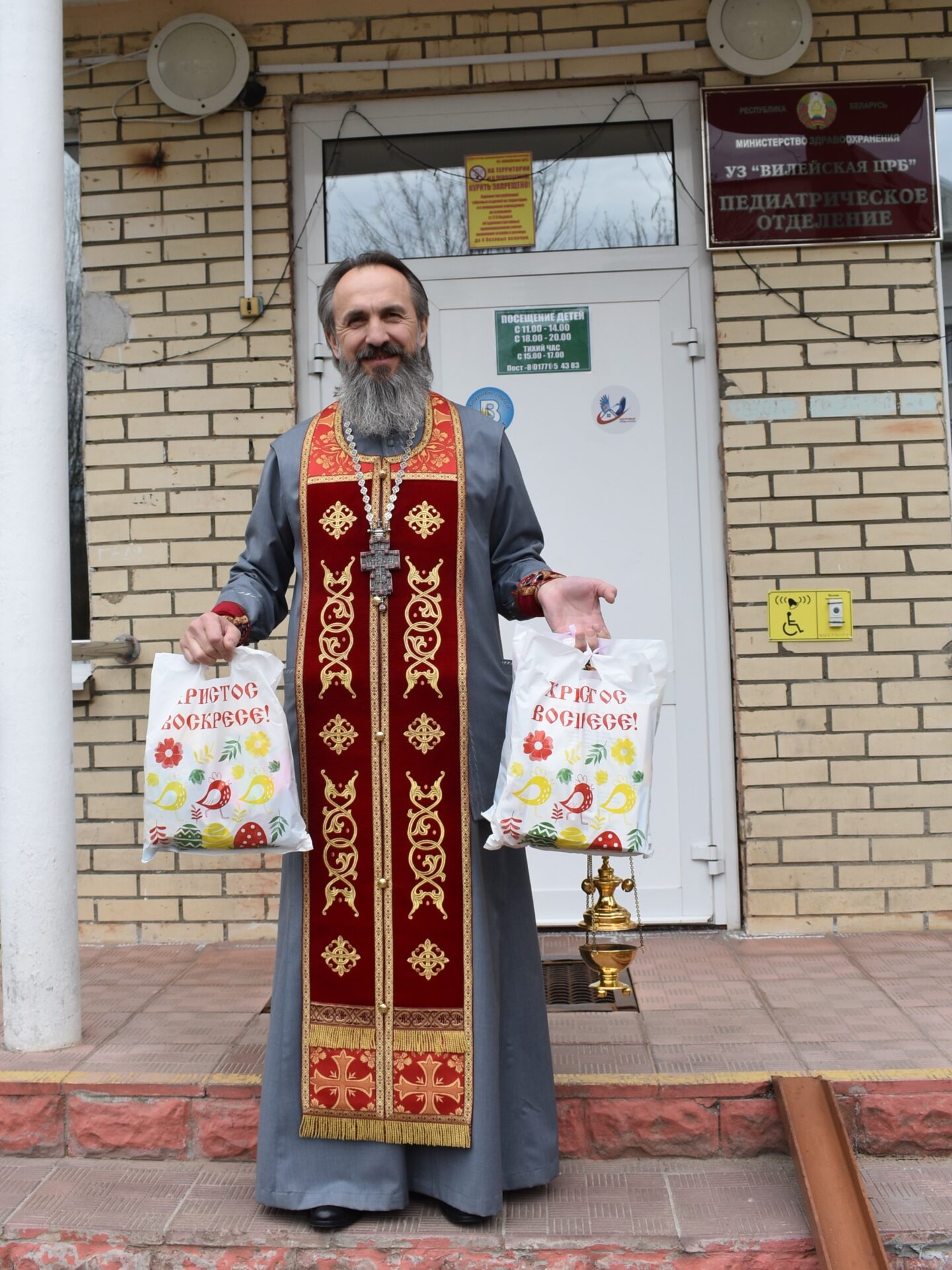 16 апреля 2026 года благочинный Вилейского церковного округа, настоятель прихода храма преподобной Марии Египетской г.Вилейка протоиерей Вячеслав Вабищевич посетил педиатрическое отделение УЗ «Вилейская ЦРБ». Протоиерей Вячеслав поздравил детей и работников с праздником Воскресения Христова, пропел пасхальные песнопения, рассказал о важности послушание и дружбы и вручил детям подарки.