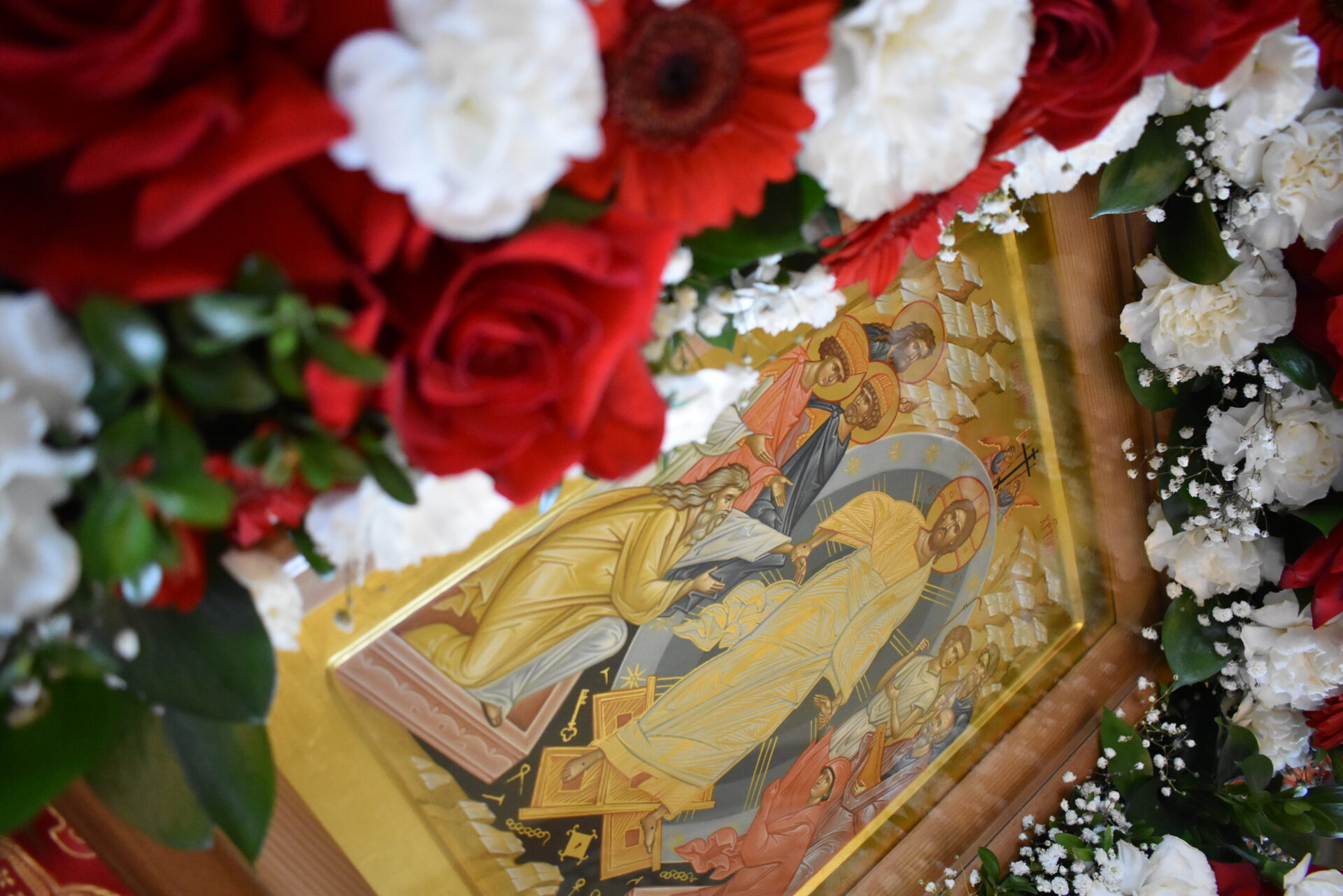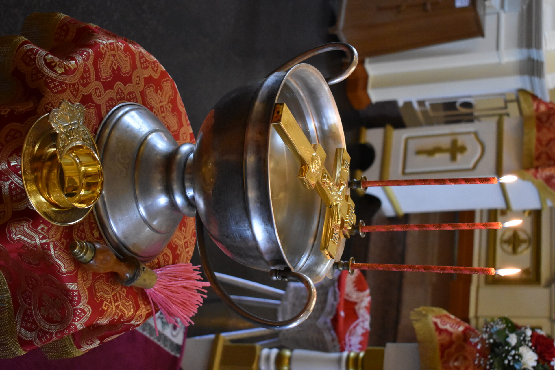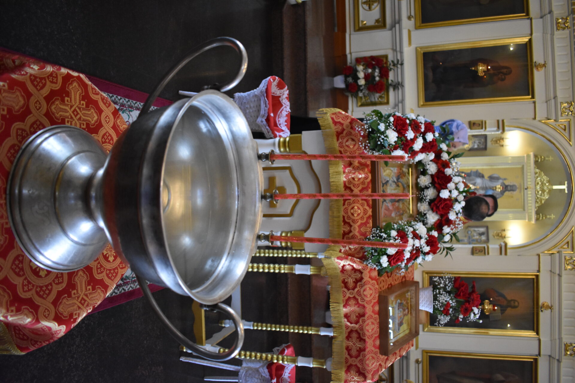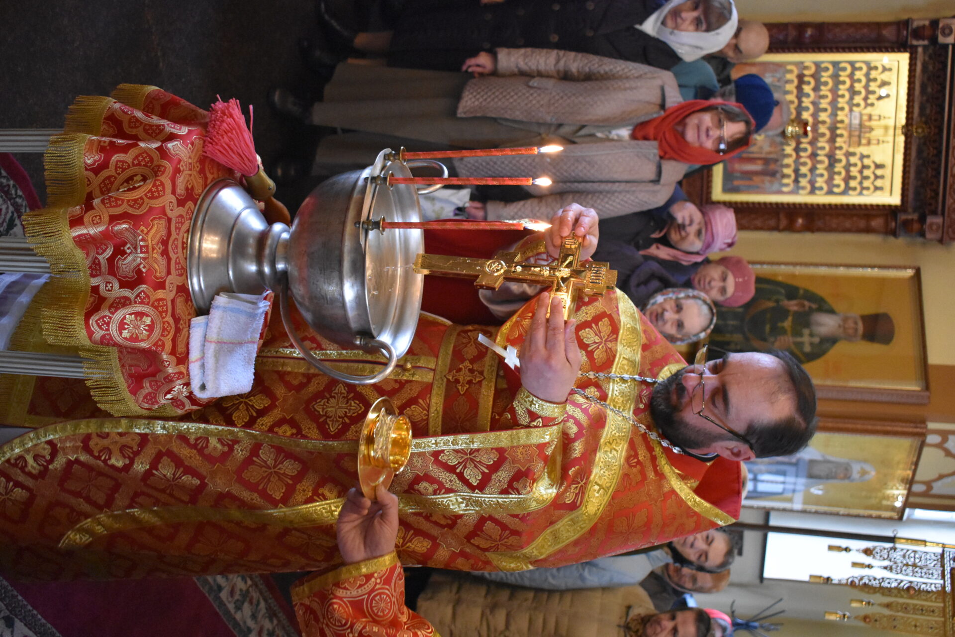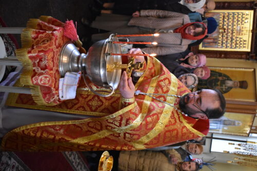 По окончании богослужения был совершен пасхальный крестный ход и малое освящение воды, которое установлено в честь праздника иконы Божией Матери «Живоносный Источник».