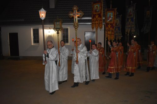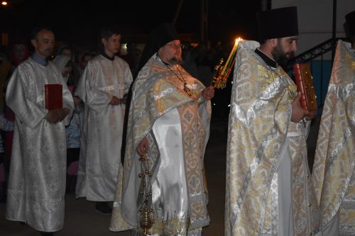 Праздничное богослужение в Приходе преподобной Марии Египетской города Вилейка началось в 00.00 часов 28 апреля 2019 года крестным ходом. После совершения крестного хода были отслужены пасхальные утреня, часы и Божественная литургия. По окончании богослужения было оглашено Пасхальное послание Патриарха Московского и всея Руси Кирилла и совершено освящение куличей, пасхи и яиц.
