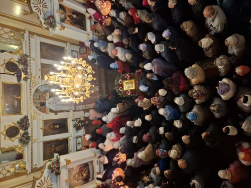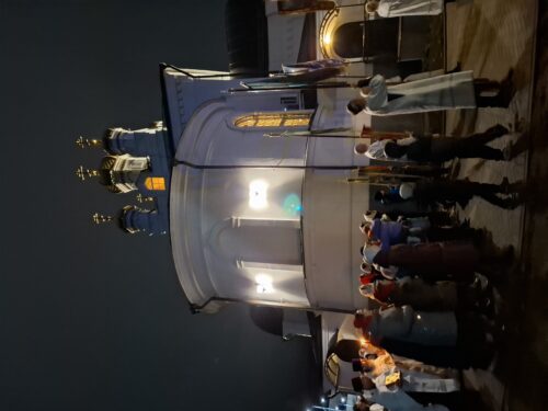 К окончанию Божественной Литургии в храм доставили благодатный огонь.