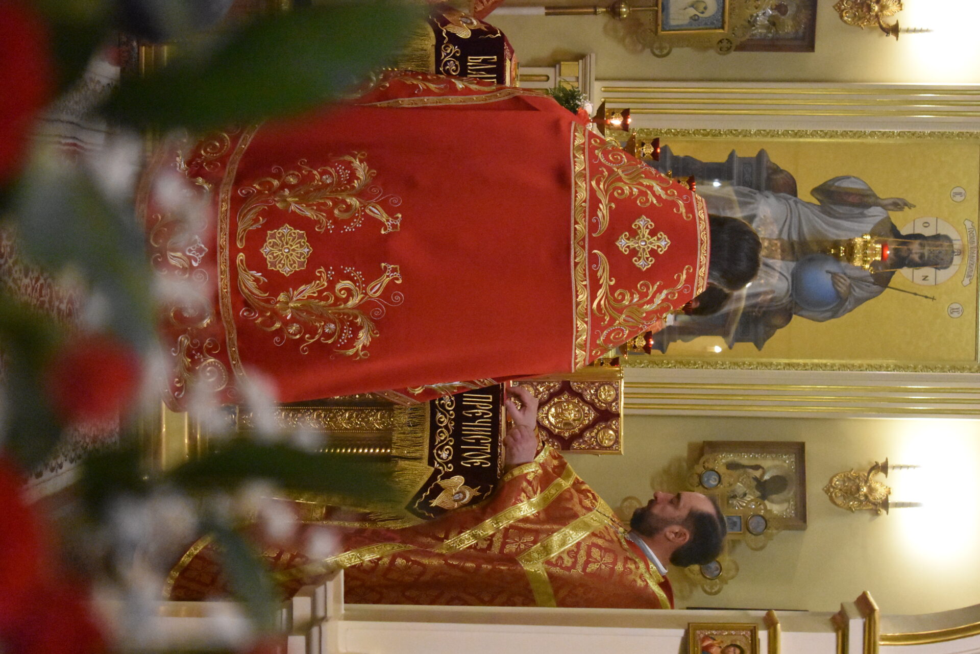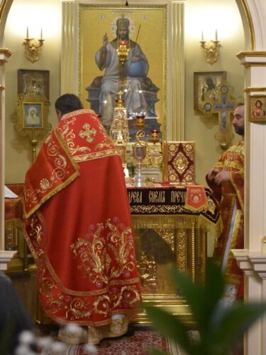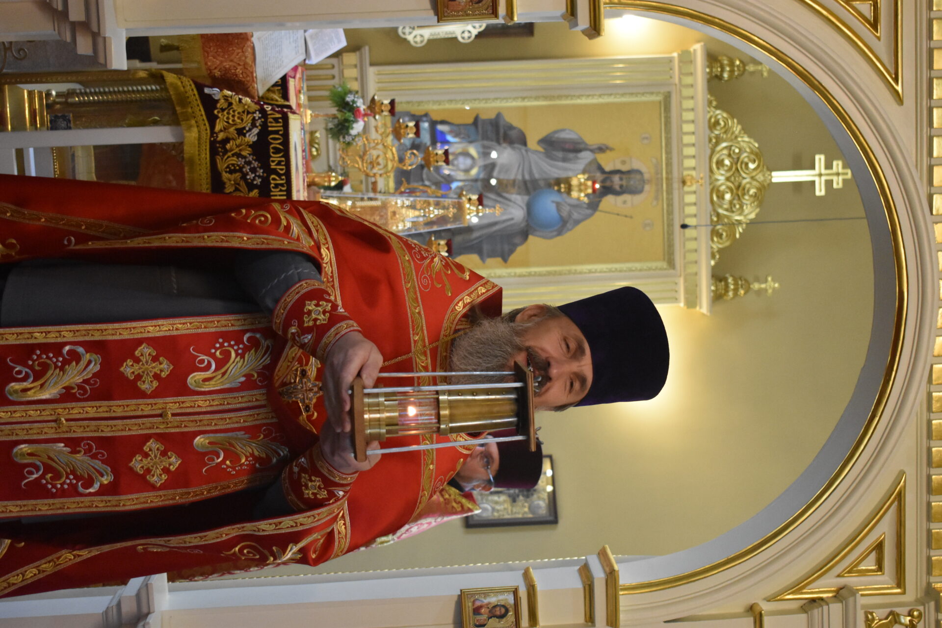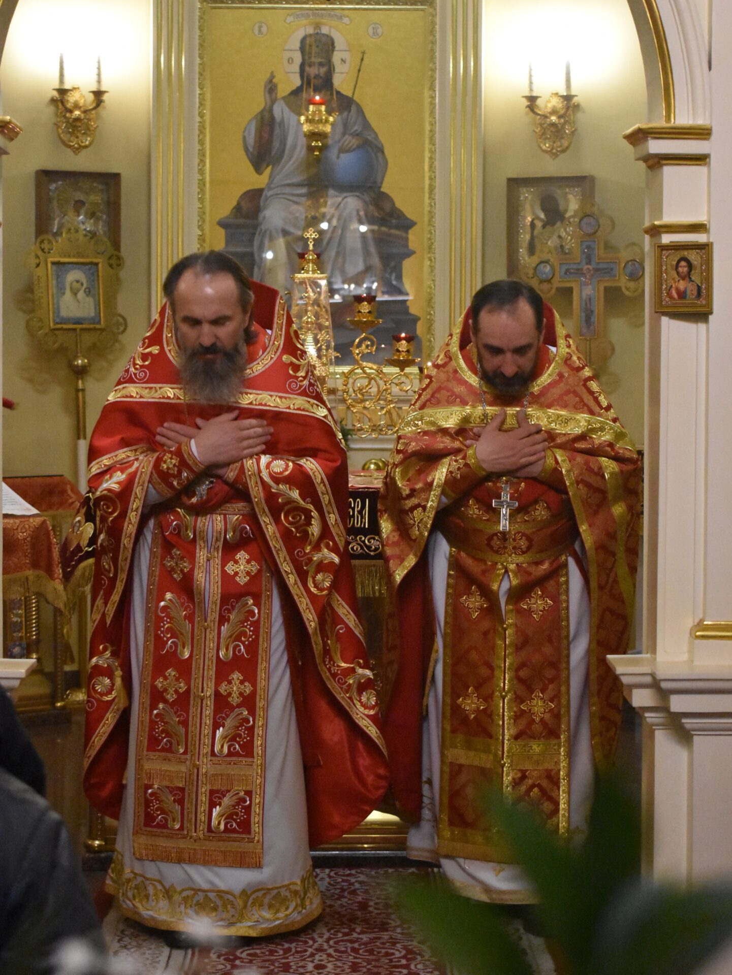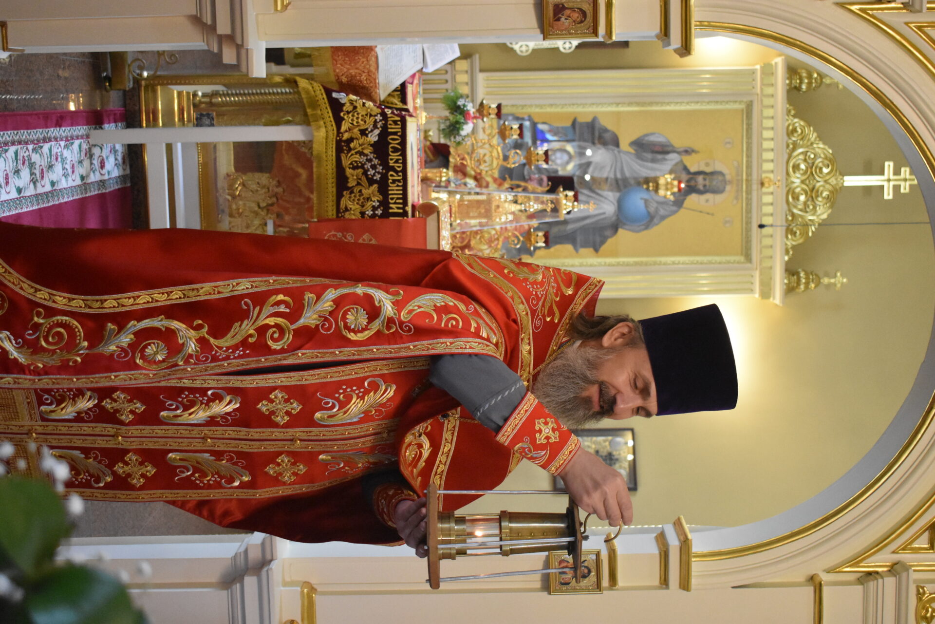 Далее настоятель храма протоиерей Вячеслав Вабищевич, в сослужении клирика храма иерея Димитрия Власенко совершил Божественную Литургию.