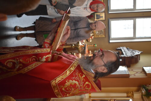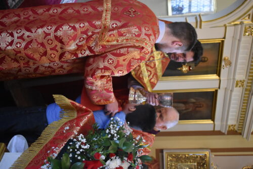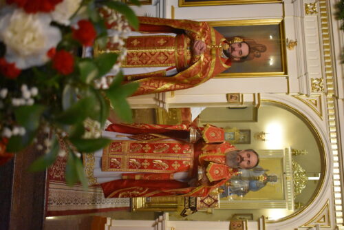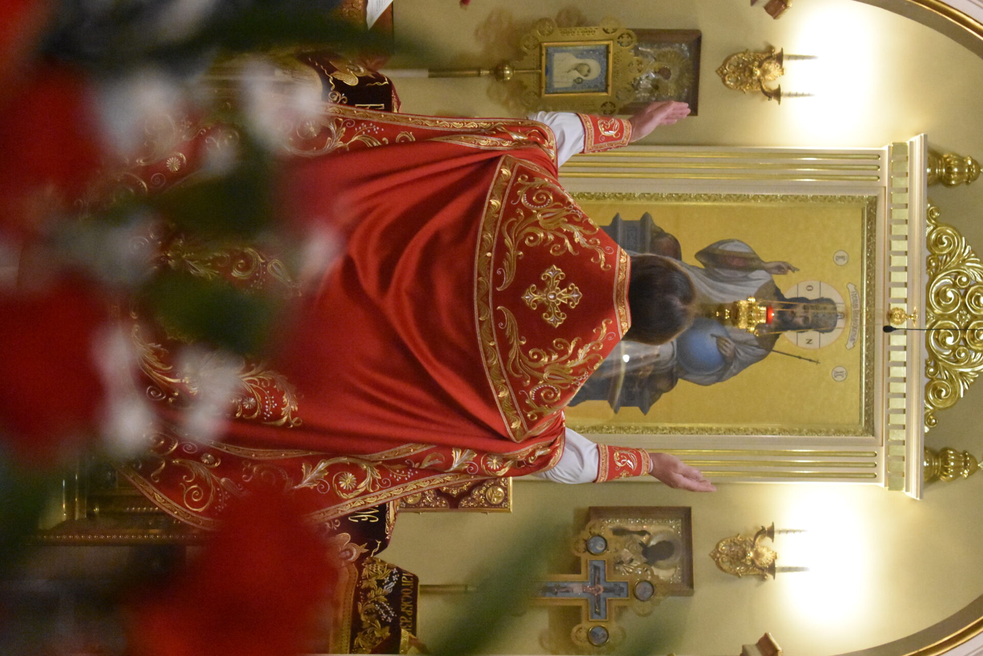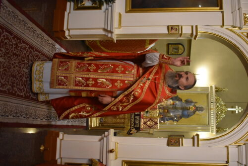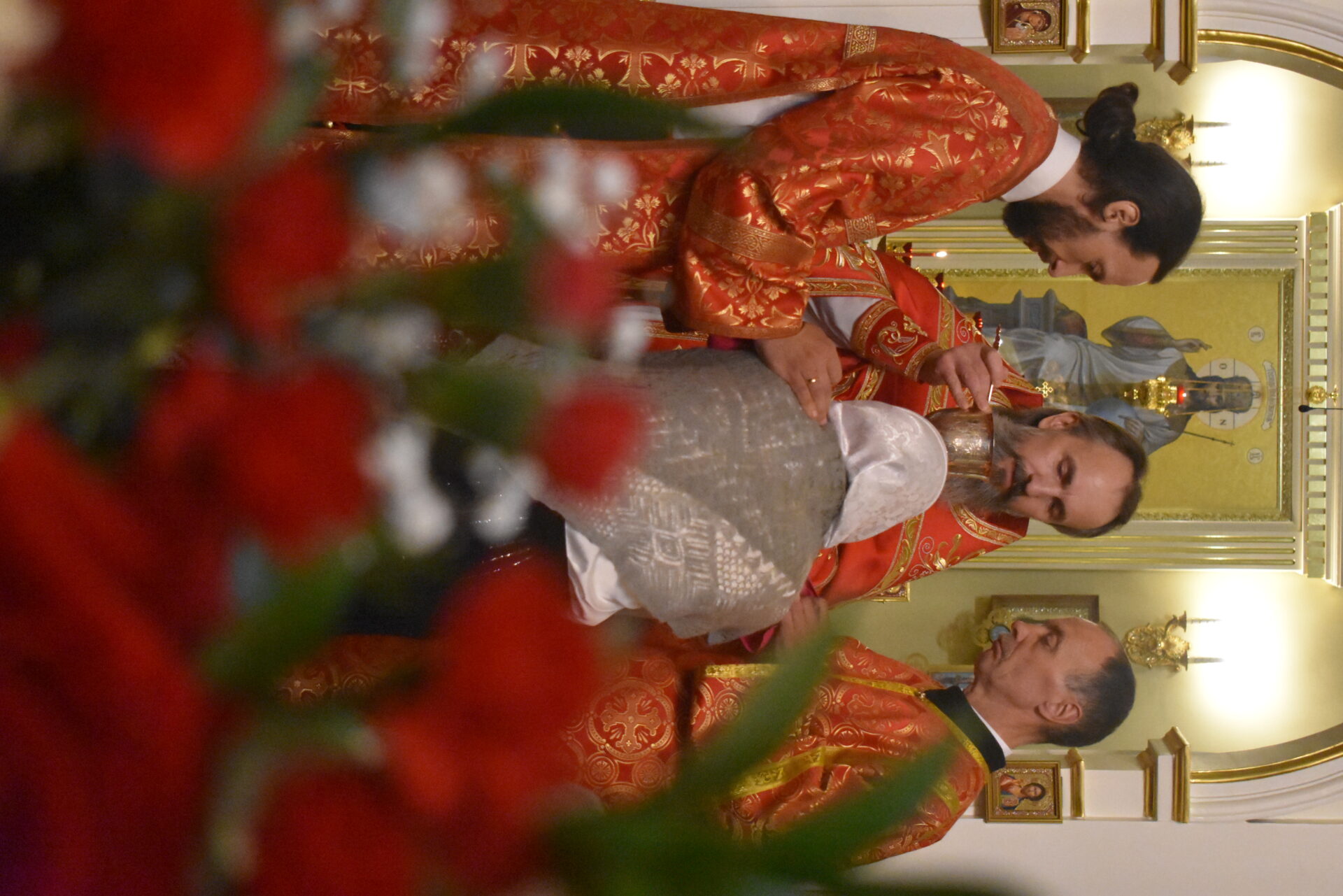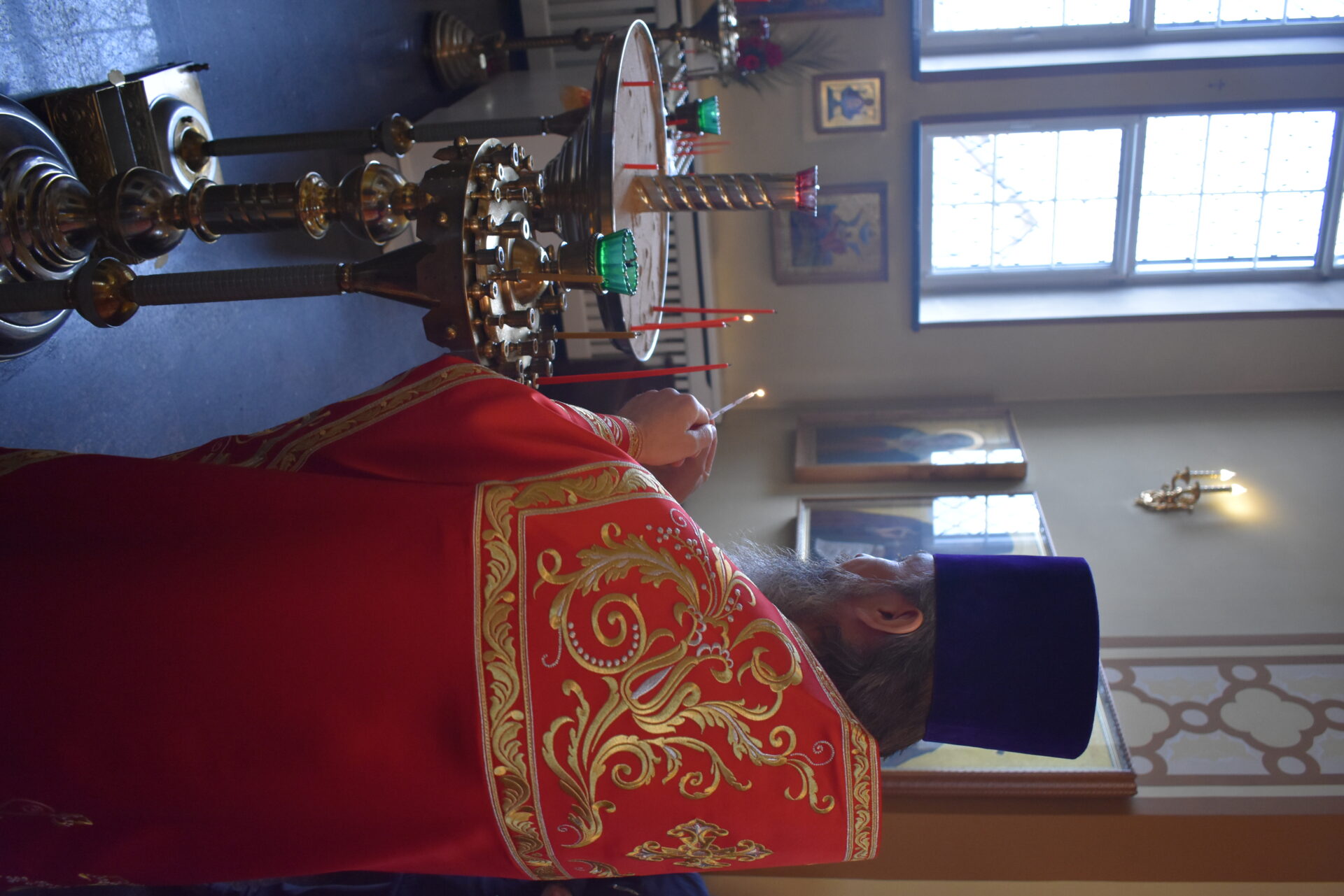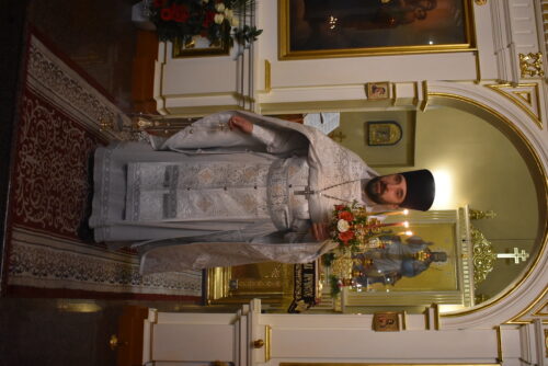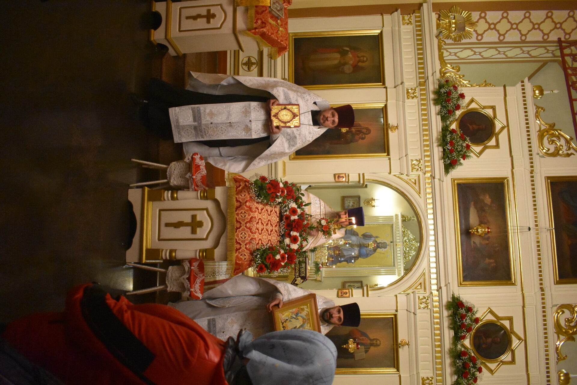 Далее настоятель храма протоиерей Вячеслав Вабищевич, в сослужении клирика храма иерея Димитрия Власенко совершил Божественную Литургию.