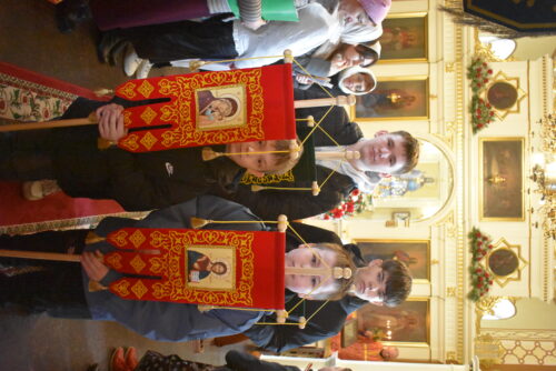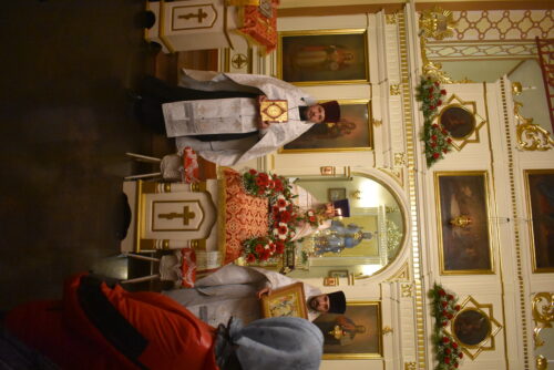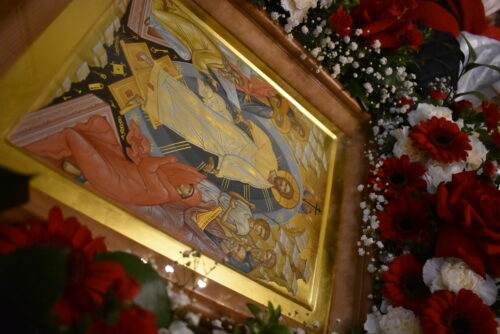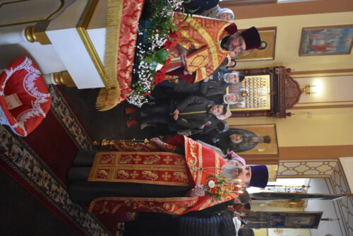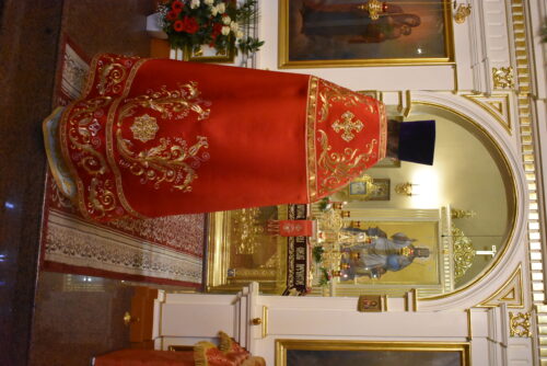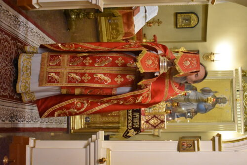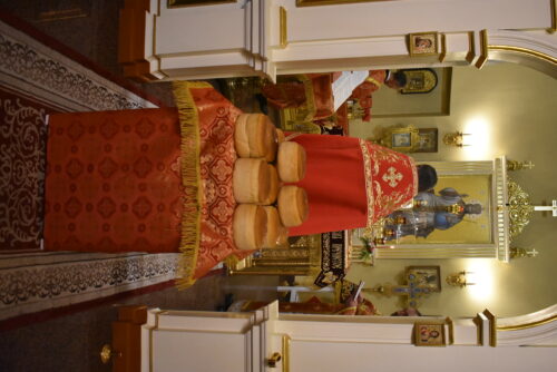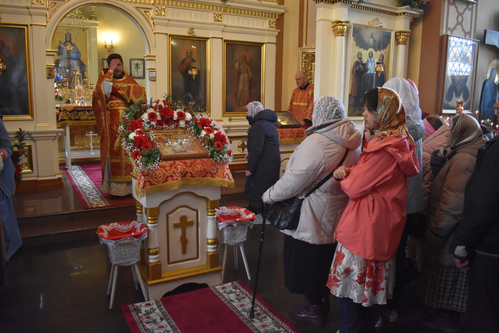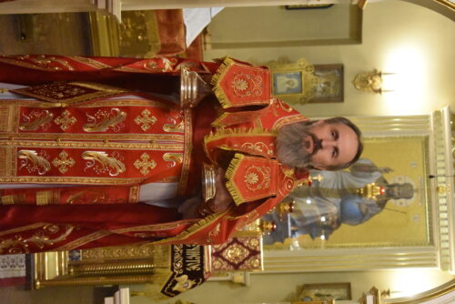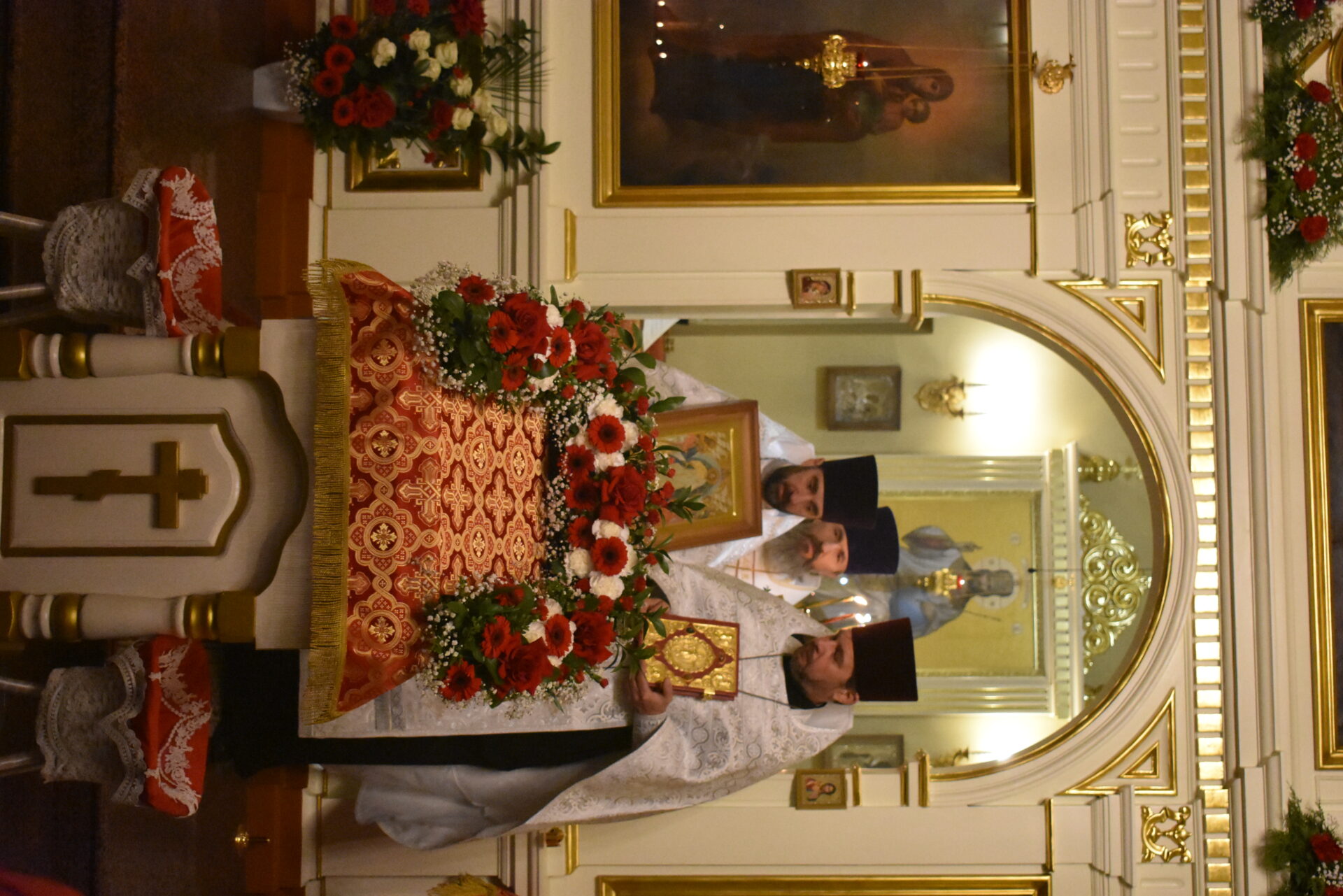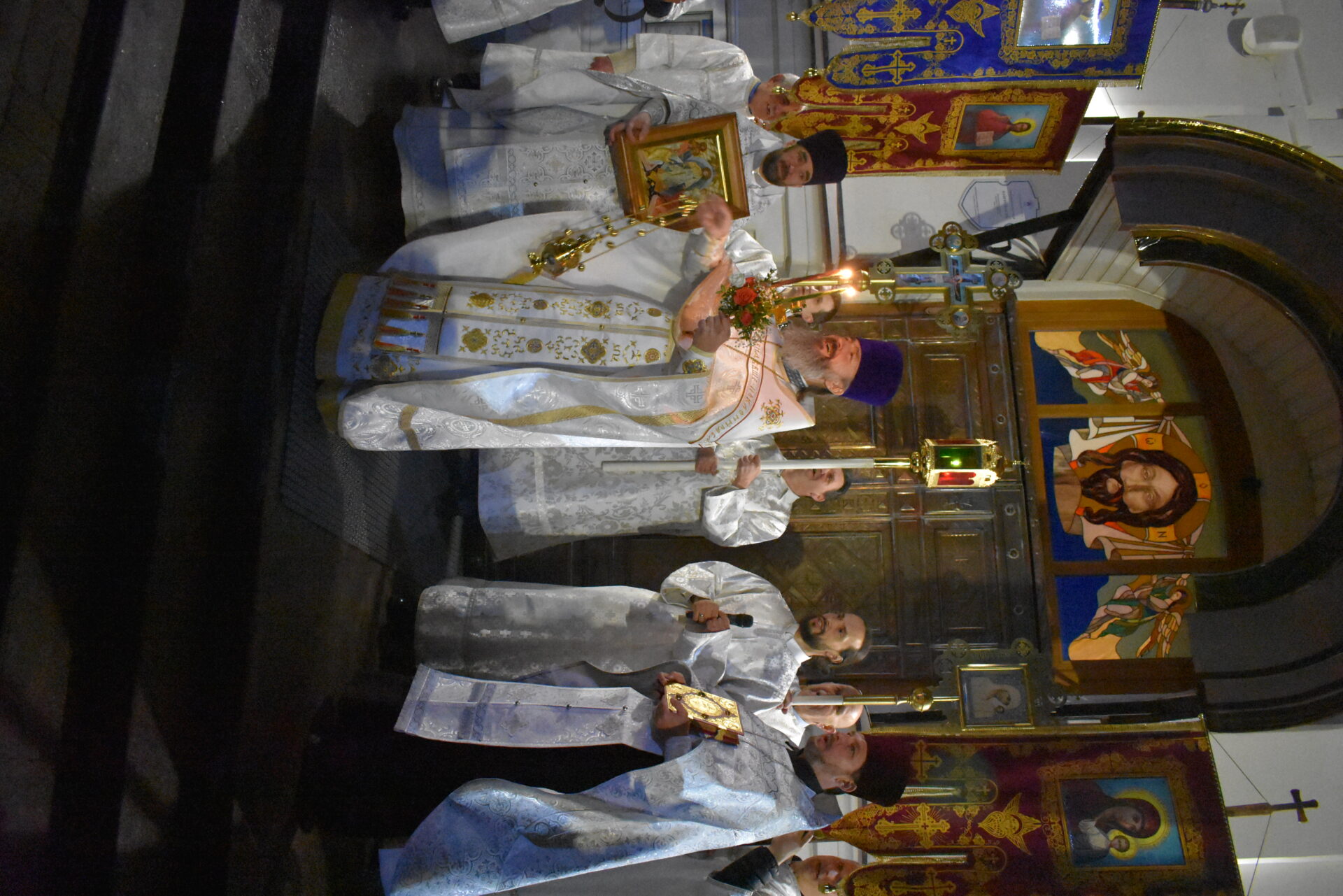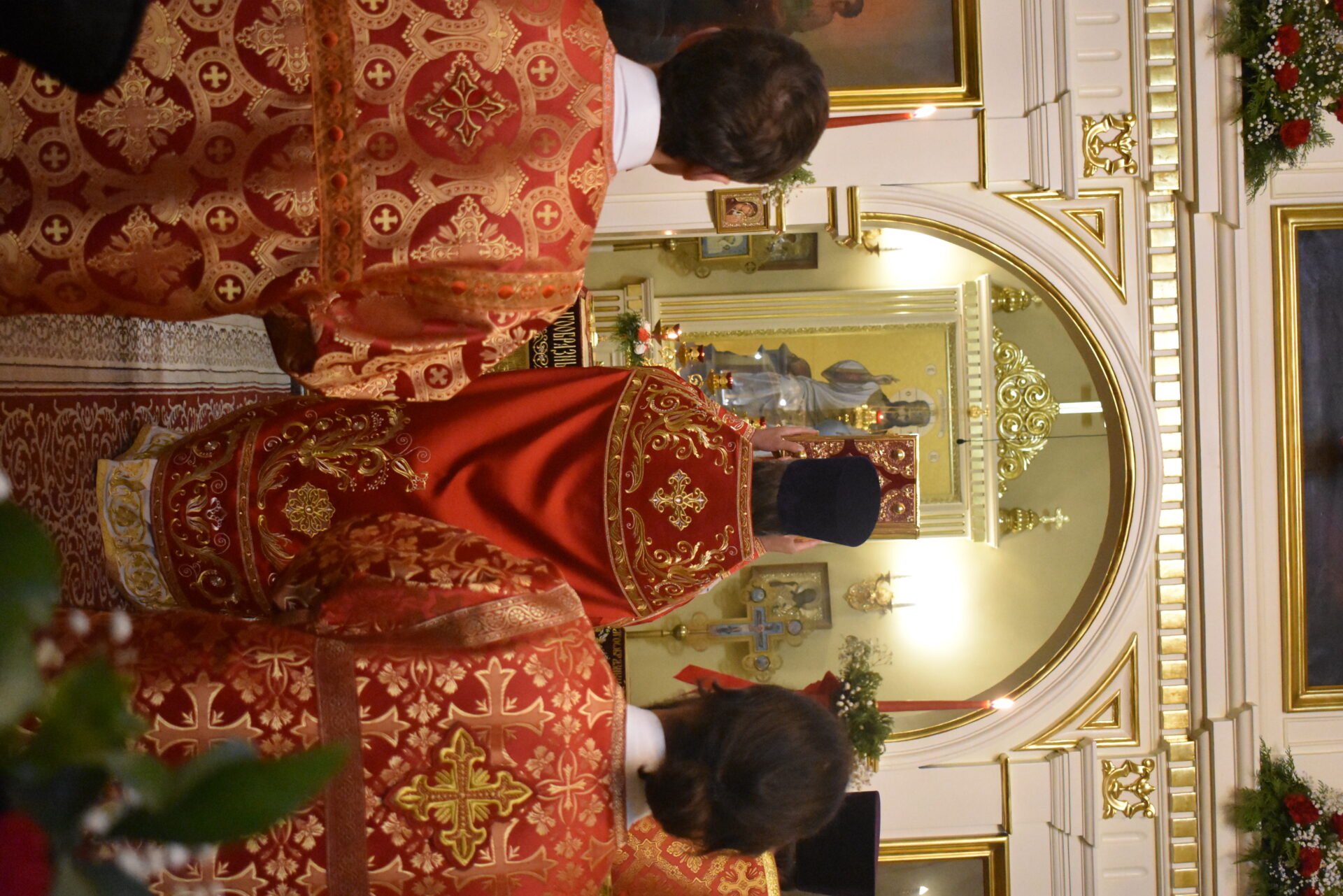 Далее настоятель храма протоиерей Вячеслав Вабищевич, в сослужении клирика храма иерея Димитрия Власенко совершил Божественную Литургию.
