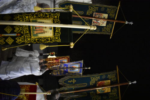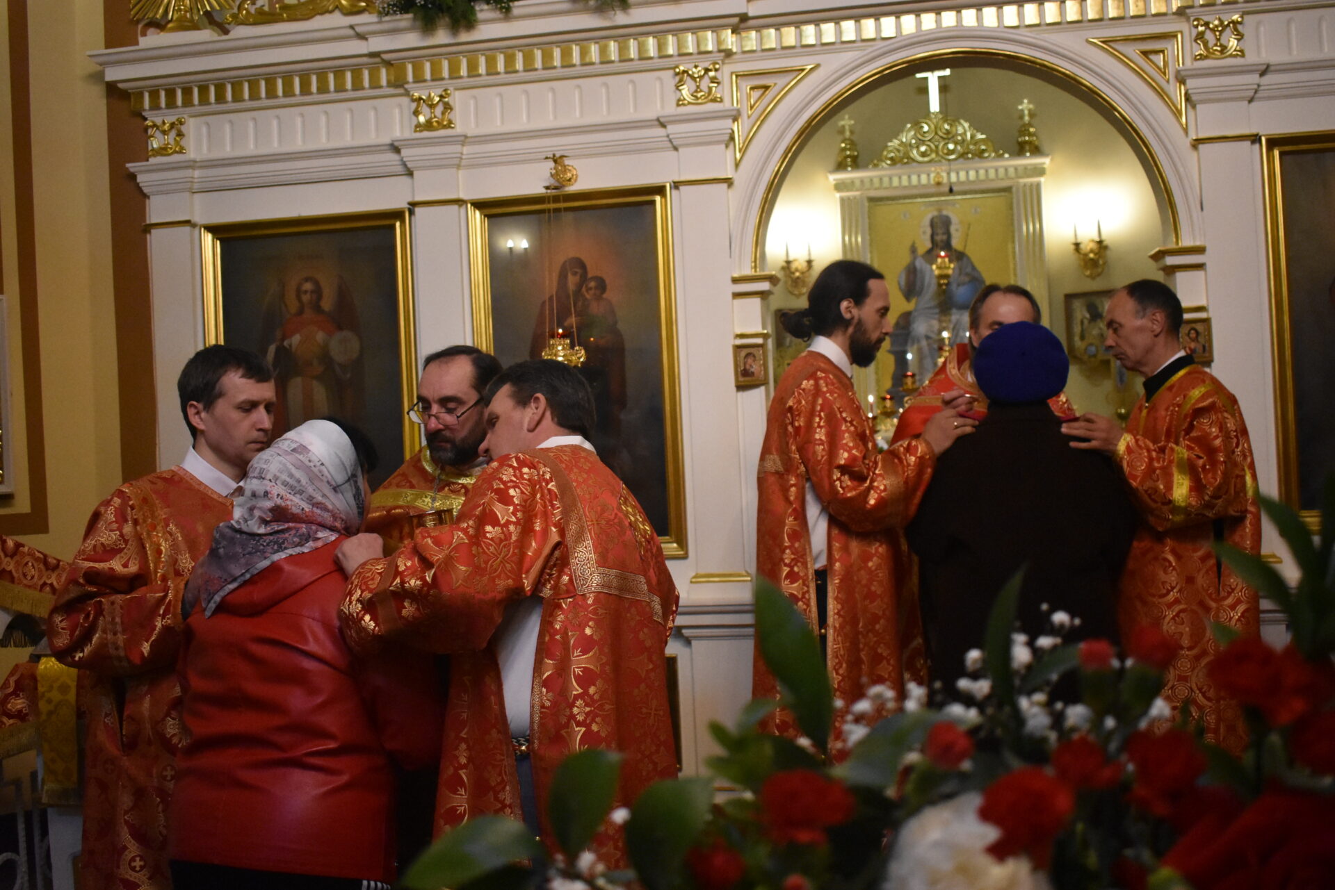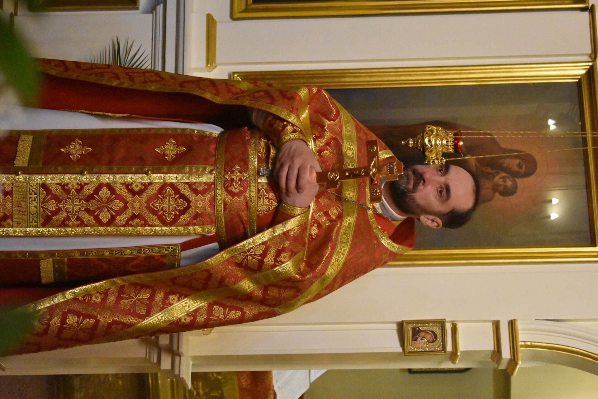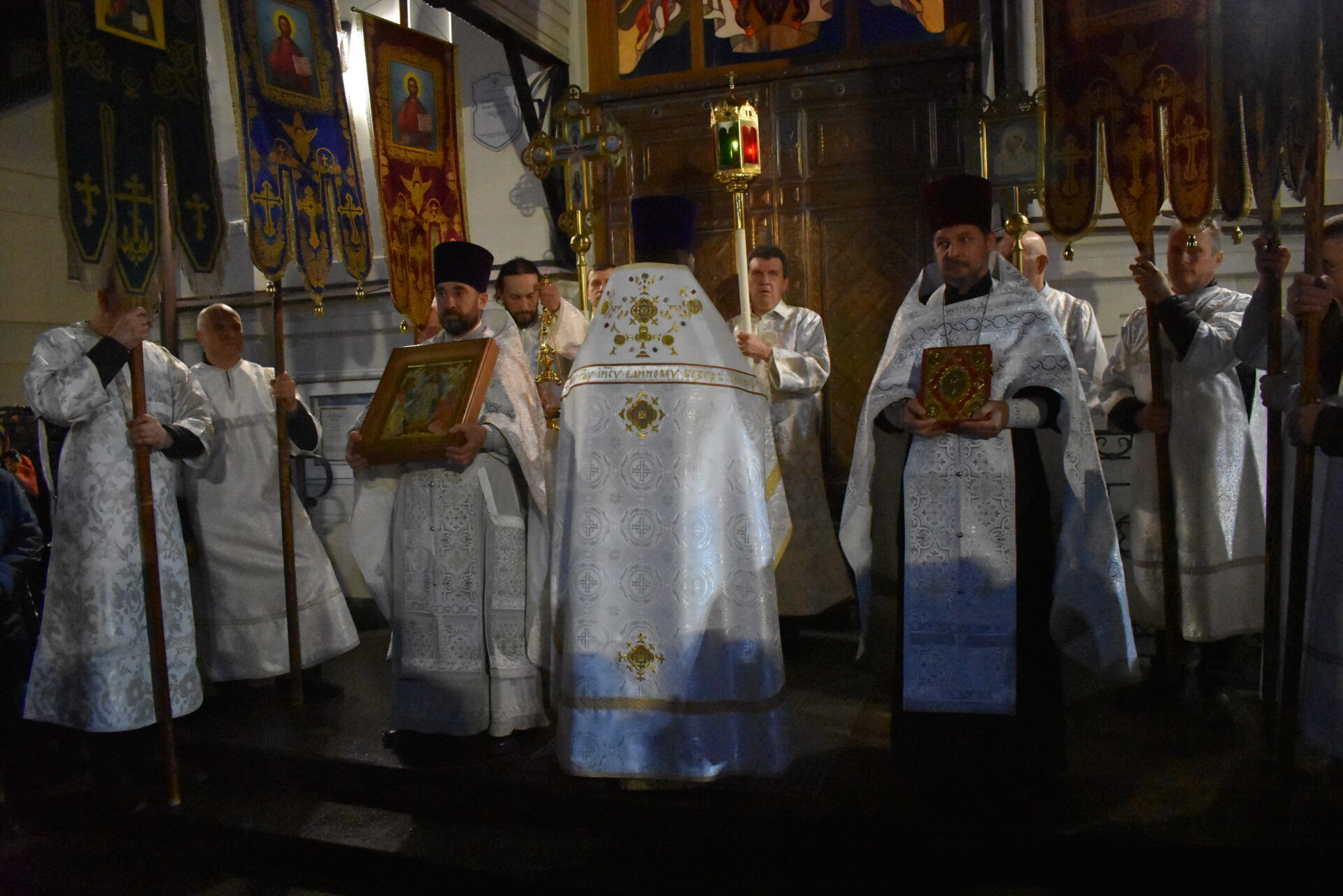 После пения стихир Пасхи протоиерей Вячеслав произнес Слово огласительное святителя Иоанна Златоуста на Святую Пасху.
