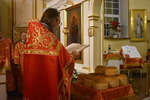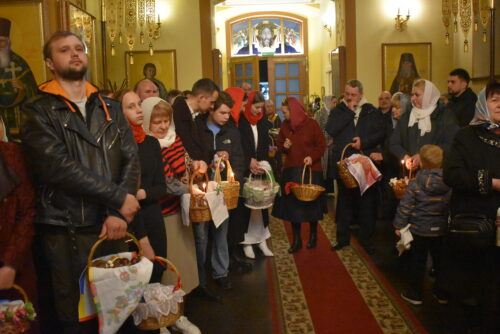 По отпусте Божественной Литургии было совершено освящение Пасхальной снеди.