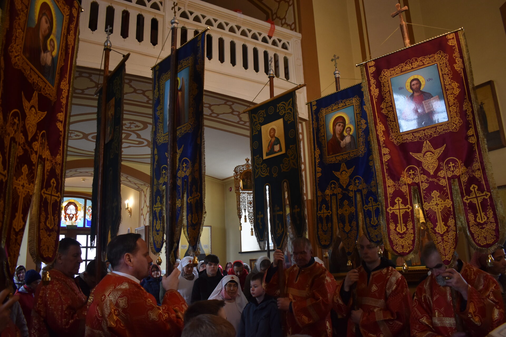 По окончании Божественной Литургии настоятель храма протоиерей Вячеслав Вабищевич возглавил крестный ход.