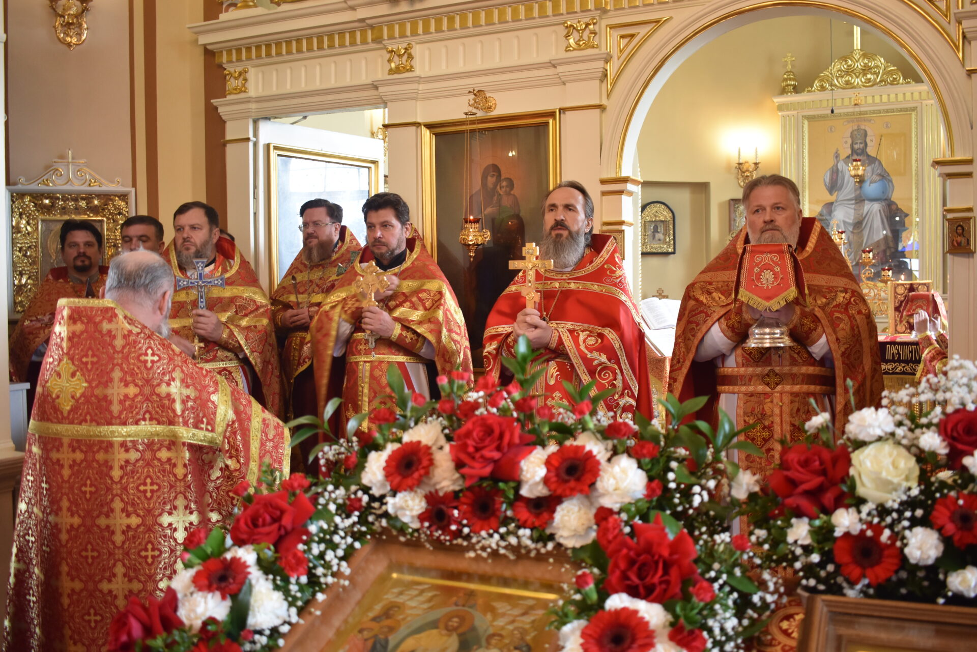 г. Поставы протоиерея Валерия Пашкевич, благочинного Долгиновского церковного округа, настоятеля прихода храма Святого Духа д.Речки Вилейского районна иерея Валентина Пешко, настоятеля прихода храма Покрова Пресвятой Богородицы в д.Озерицкая Слобода иерея Иоанна Ясюкевича, священников Вилейского церквоного округа, совершил Божественную Литургию.