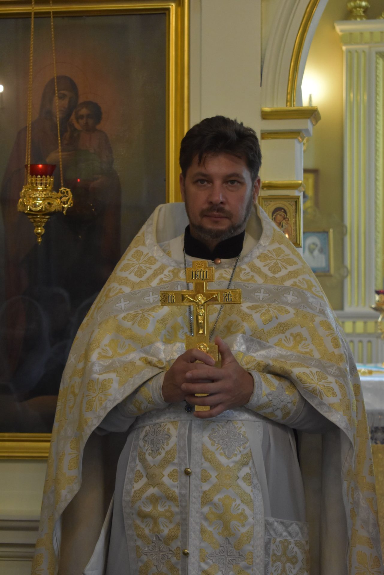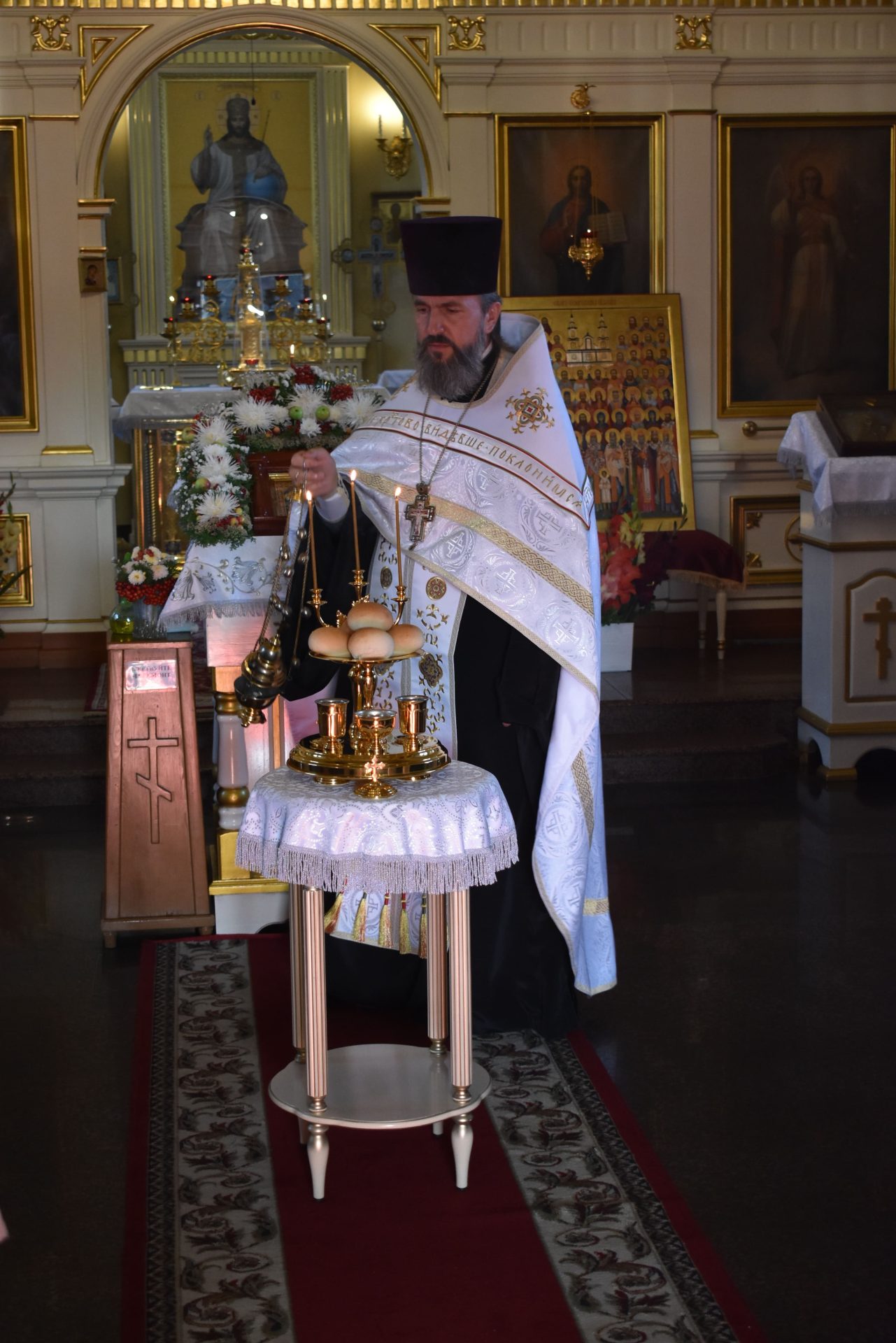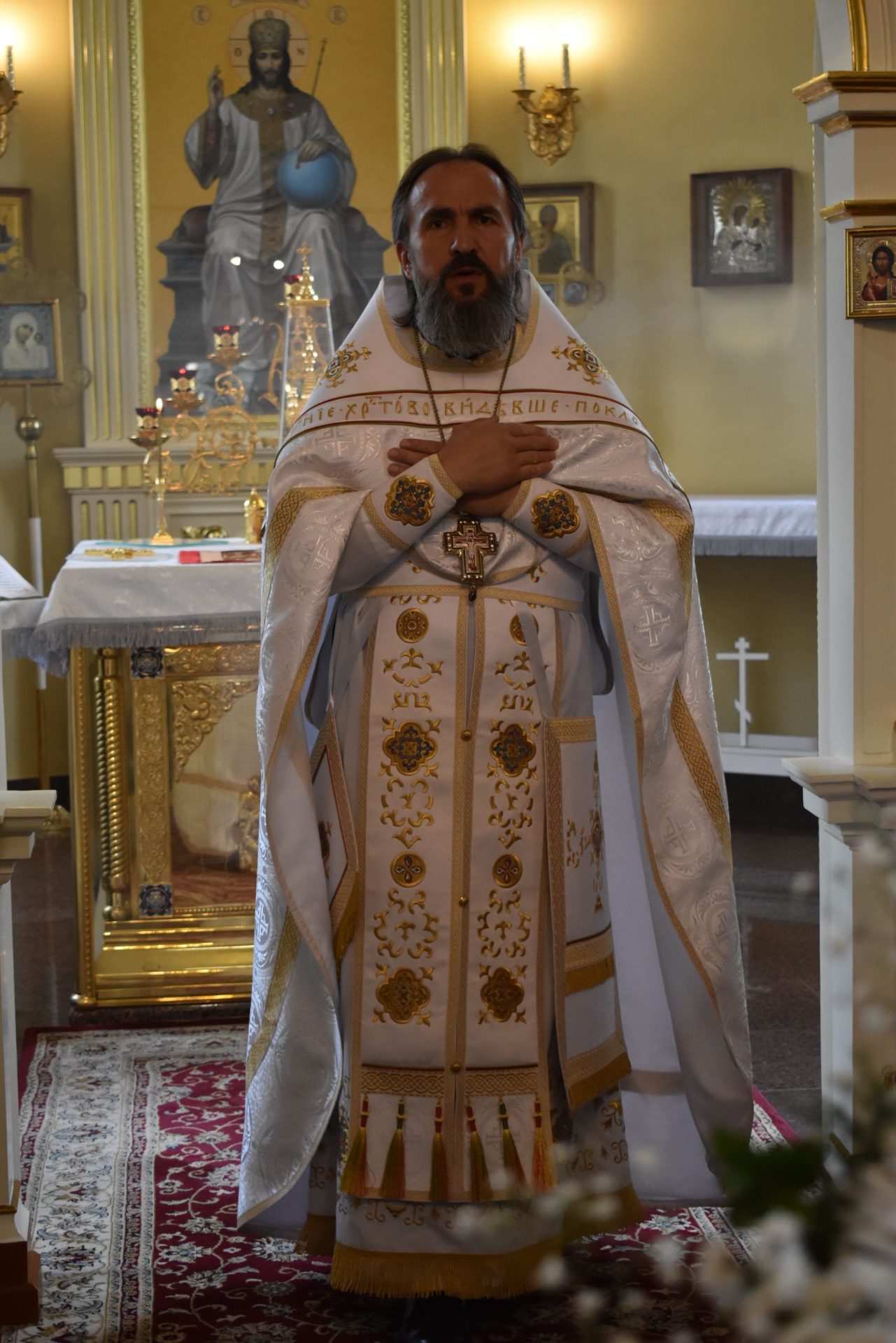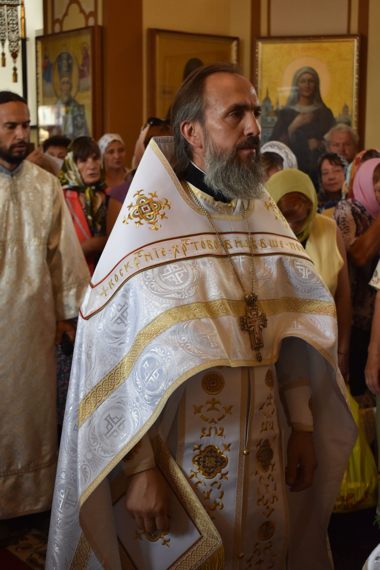 По окончании настоятель храма протоиерей Вячеслав Вабищевич поздравил всех с праздником и обратился к верующим со словом назидания.