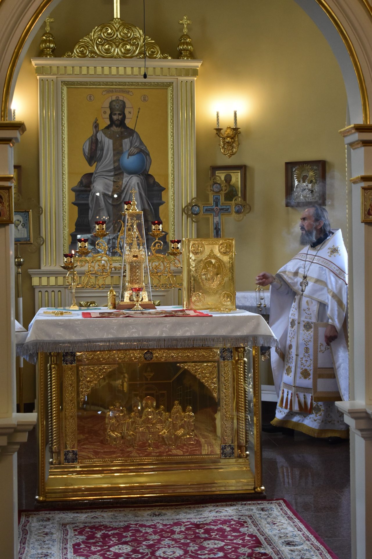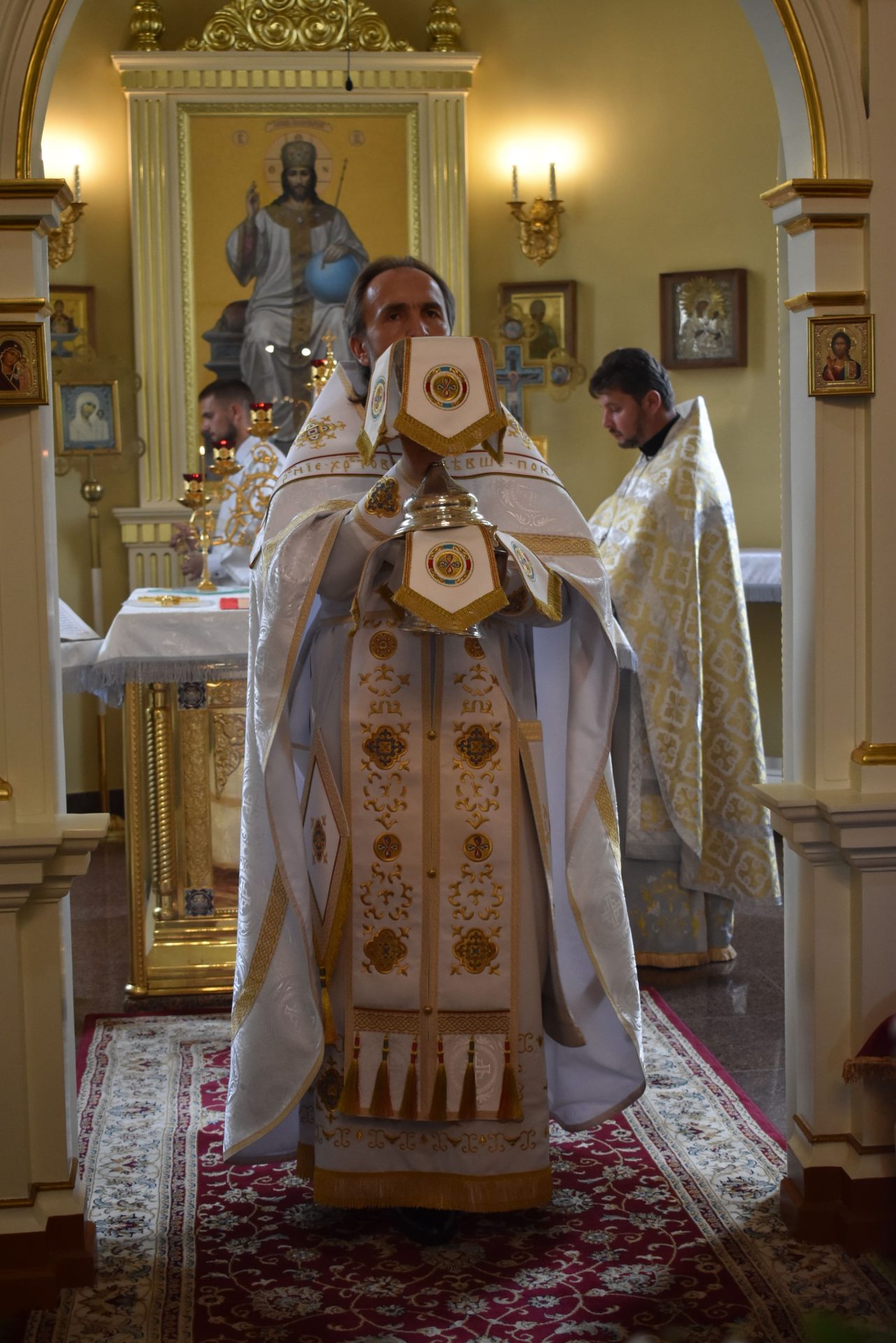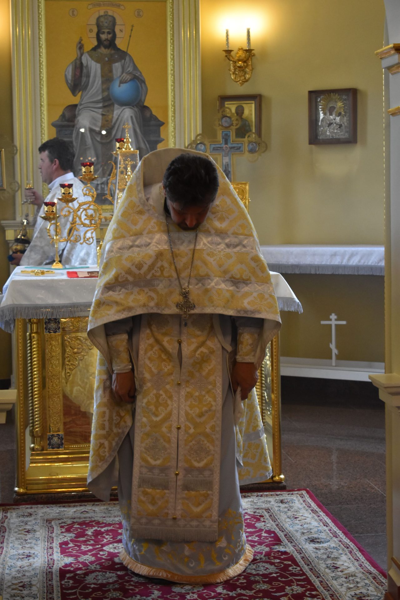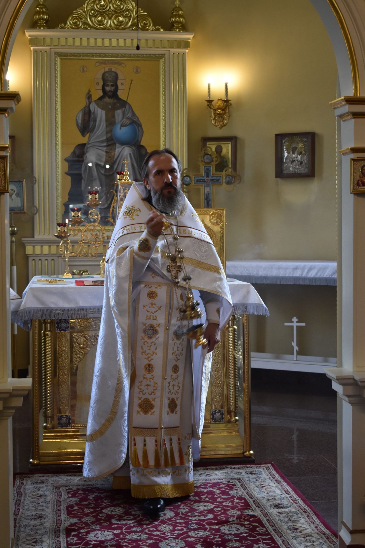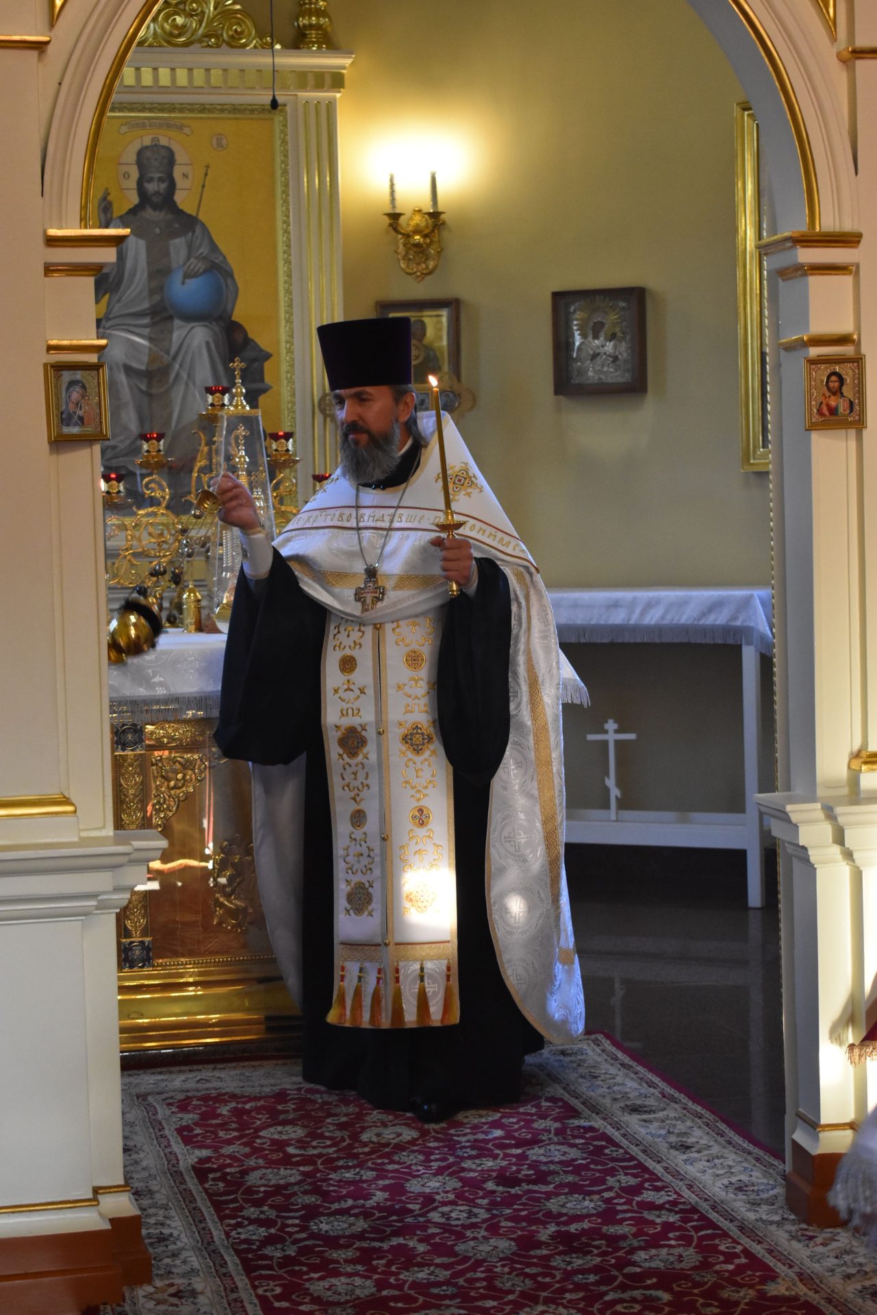 По окончании настоятель храма протоиерей Вячеслав Вабищевич поздравил всех с праздником и обратился к верующим со словом назидания.