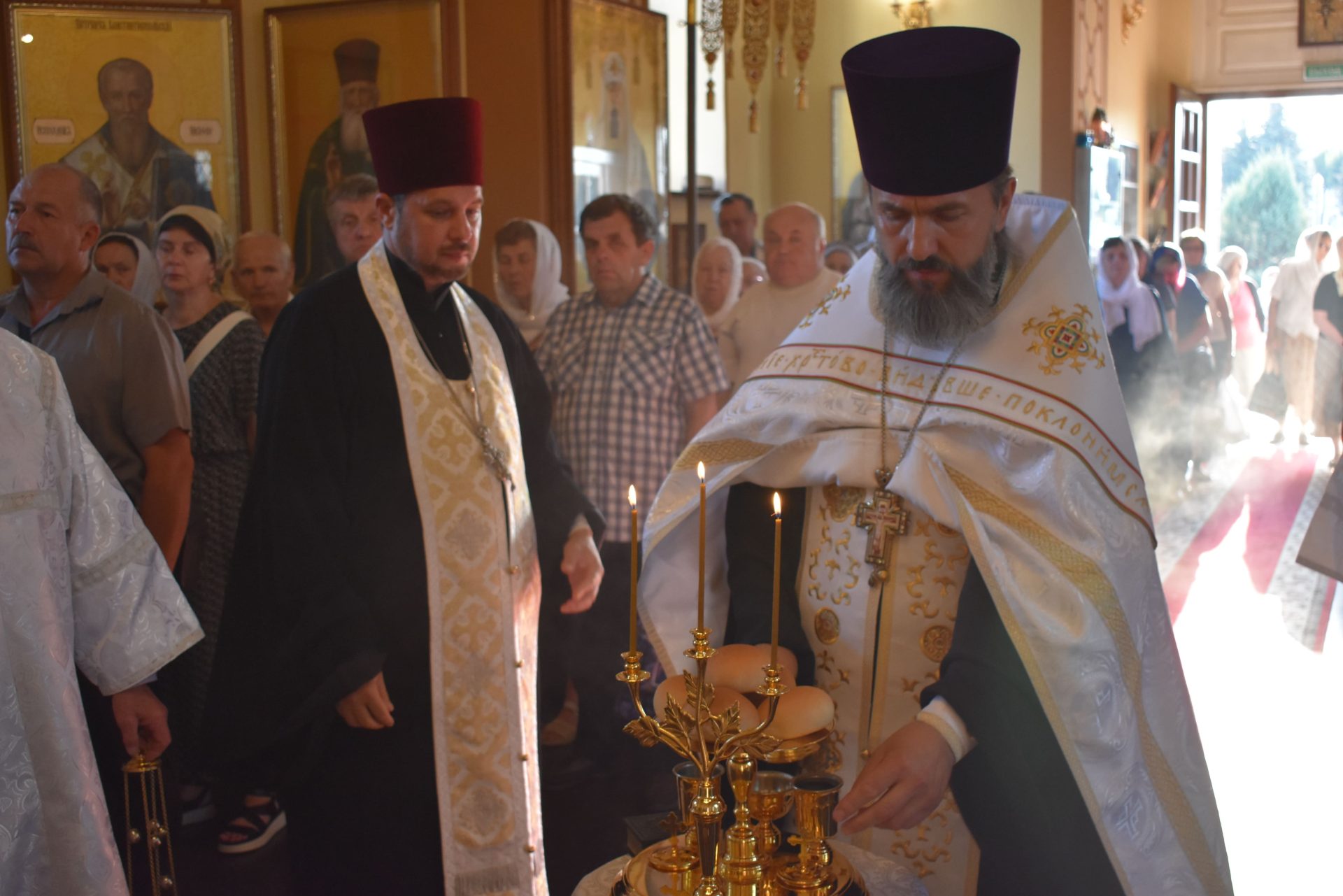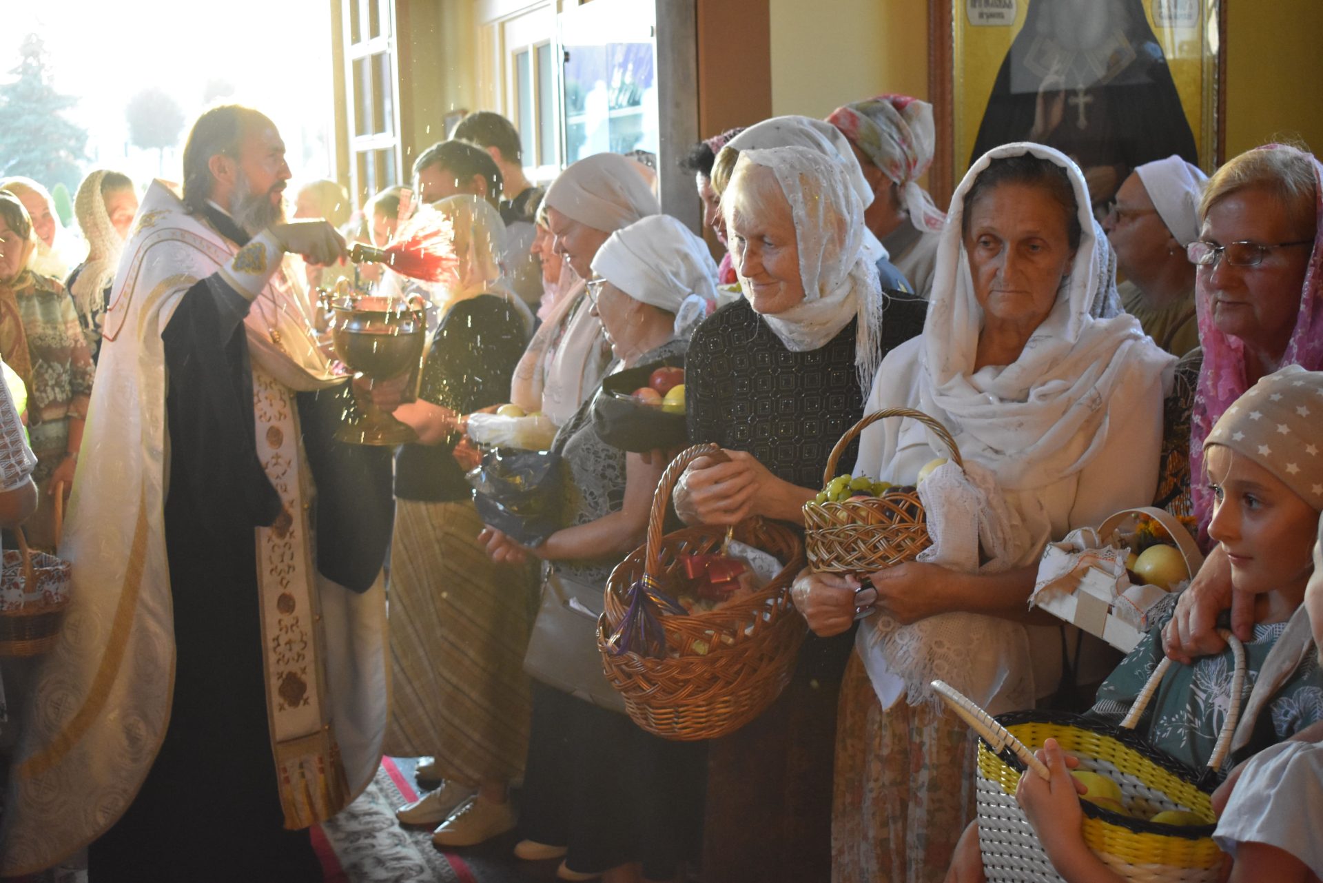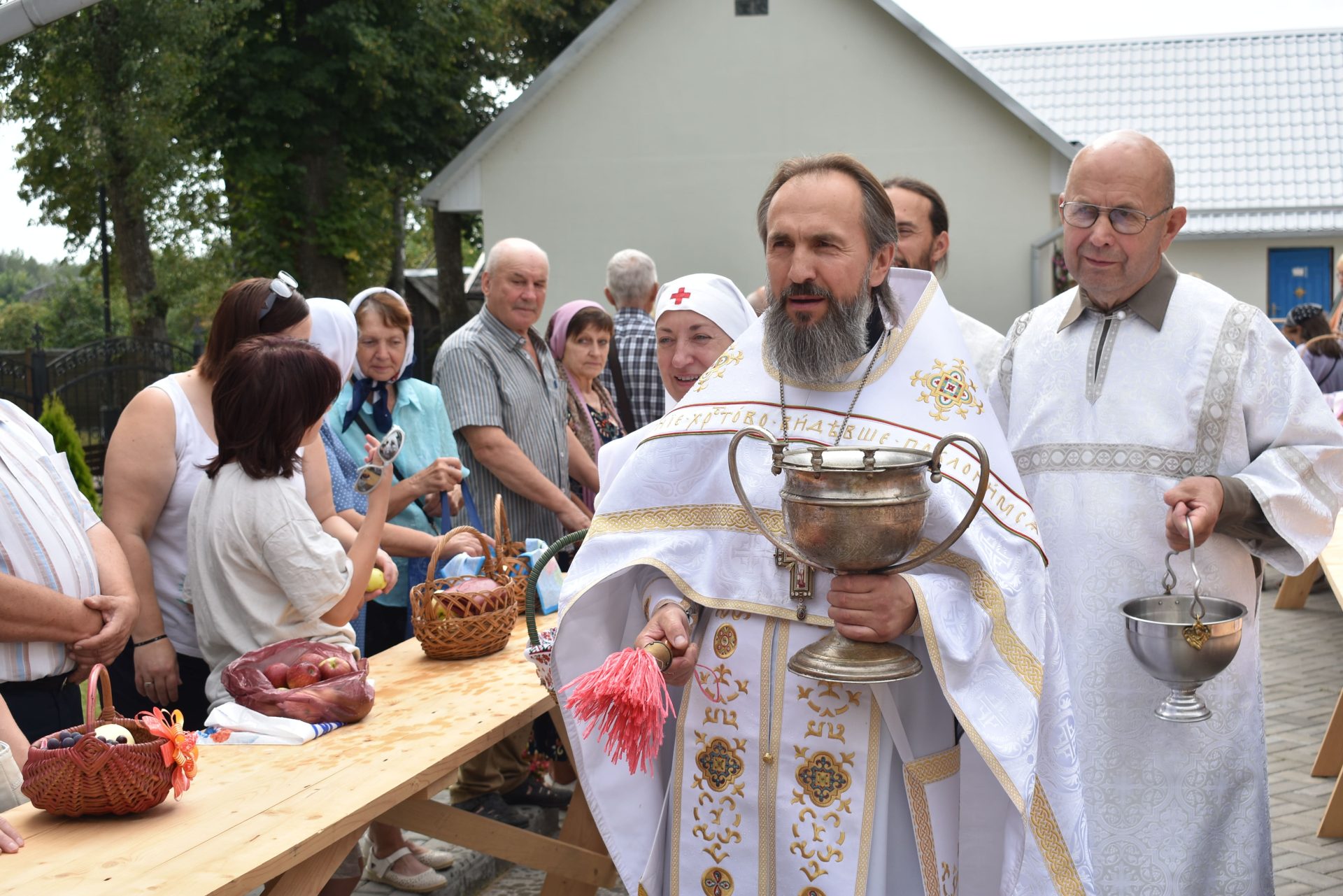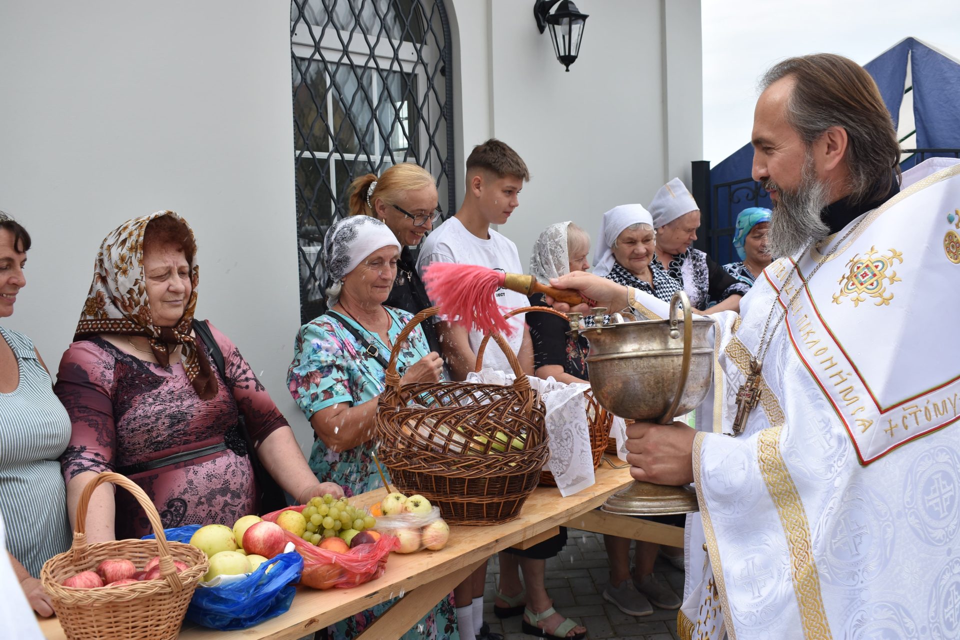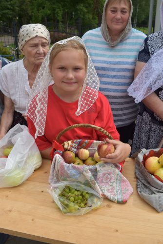 По окончании Божественной Литургии было совершено молебное пение Господу Иисусу Христу, славление празднику и освящены плоды нового урожая.