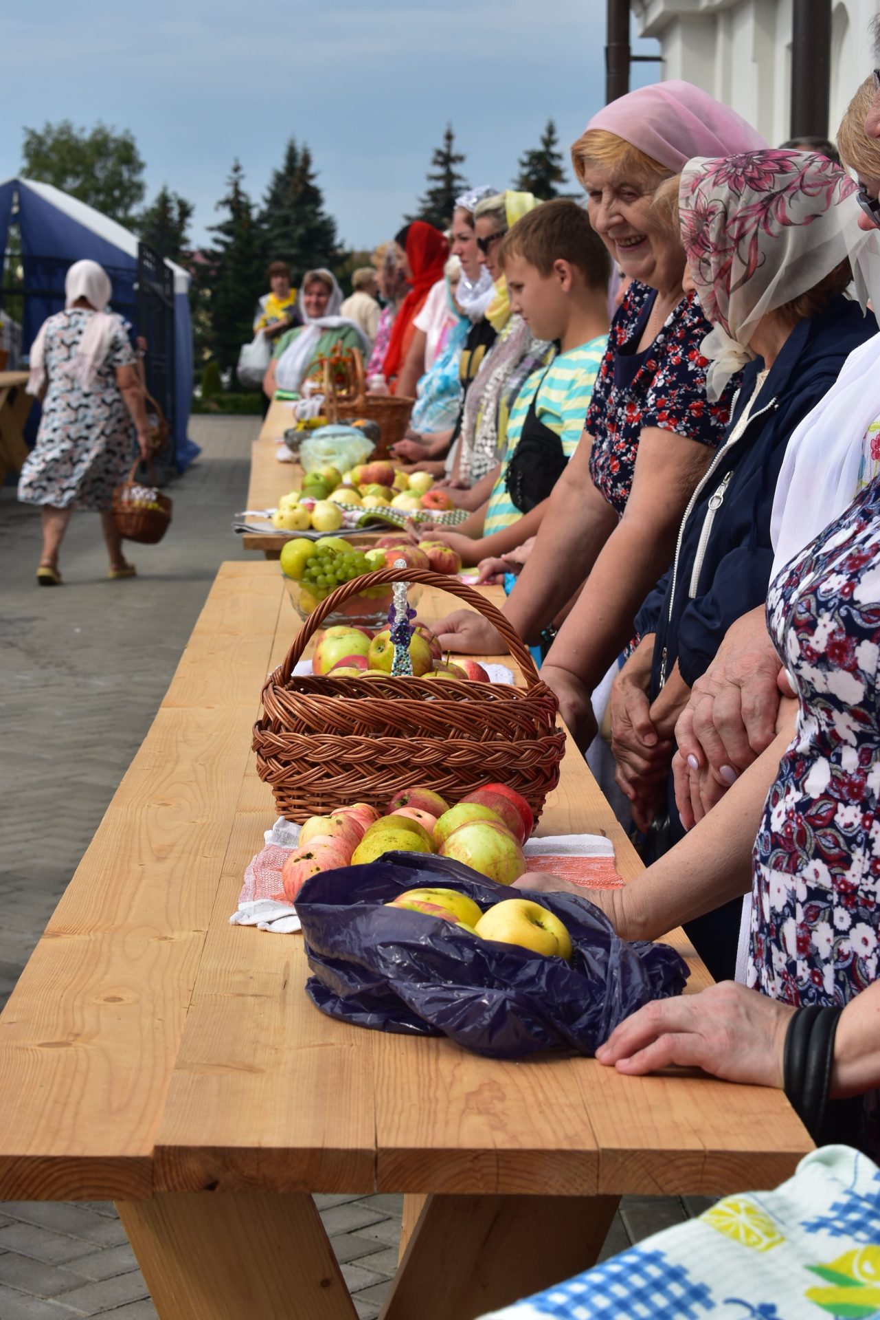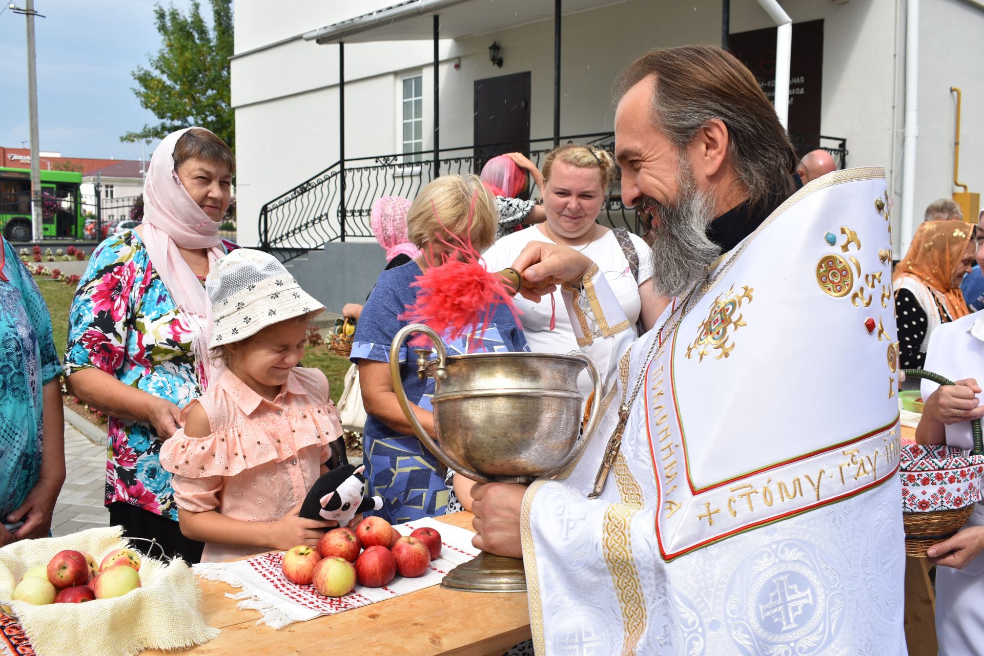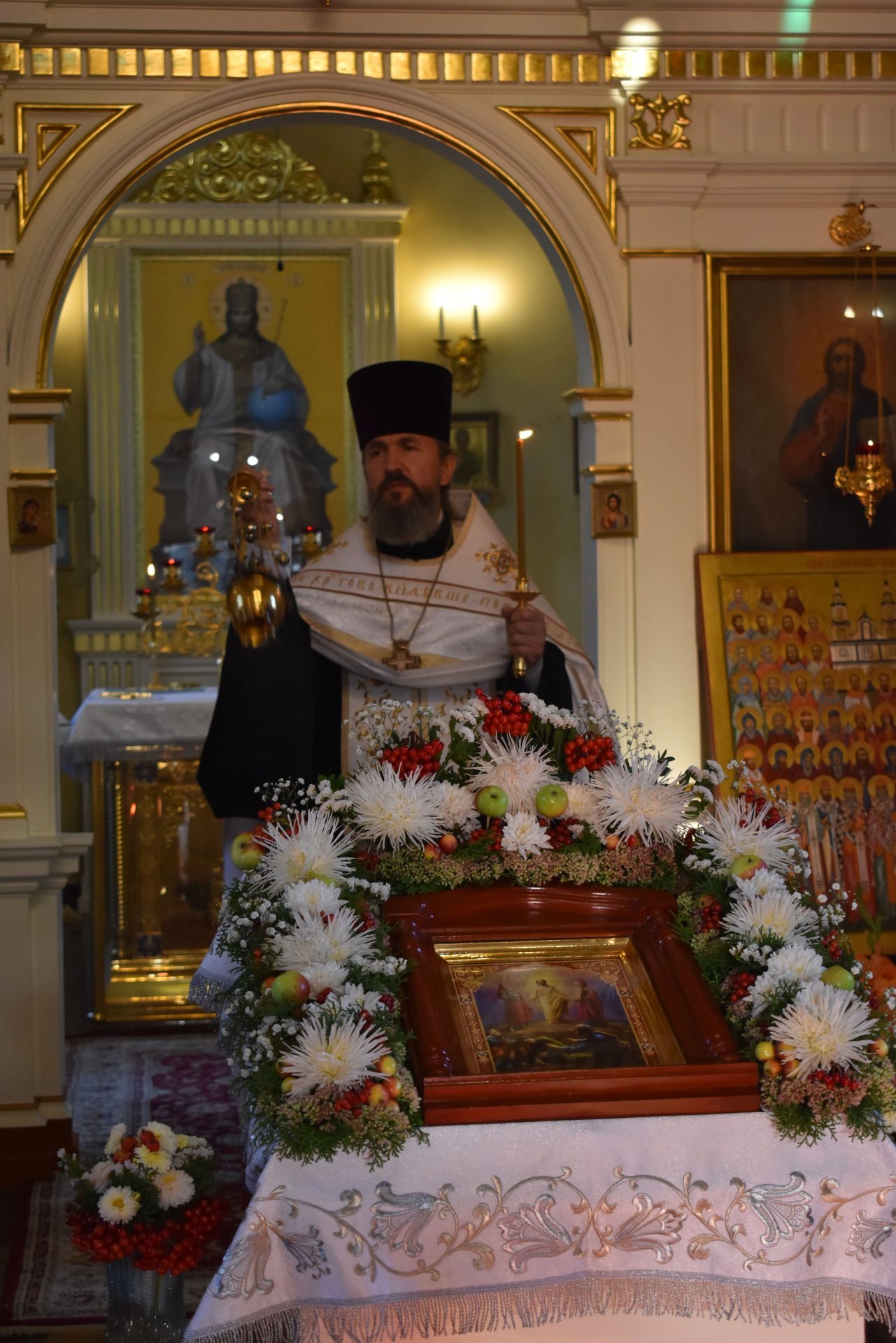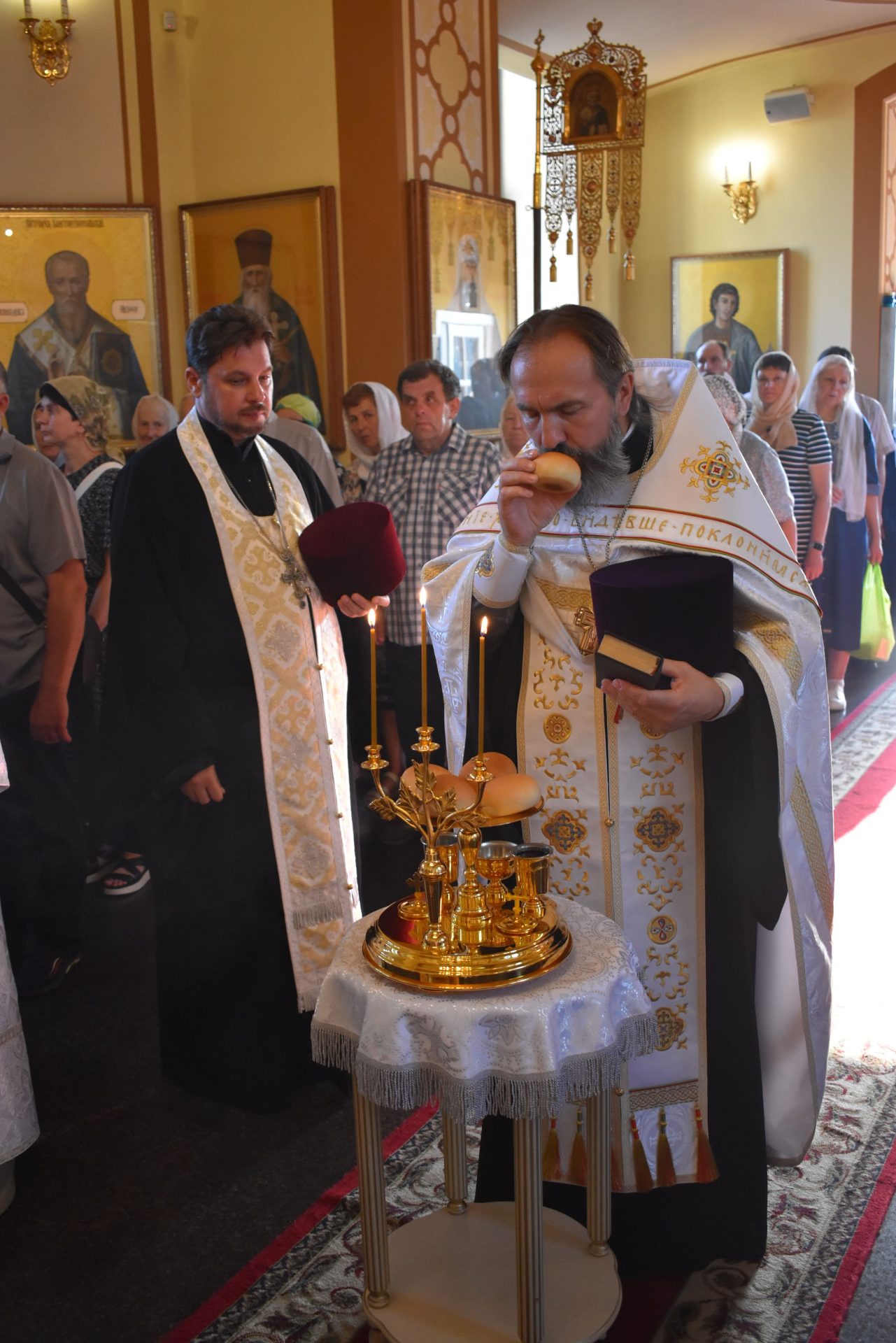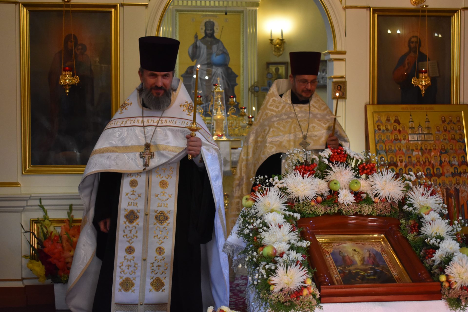 По окончании Божественной Литургии было совершено молебное пение Господу Иисусу Христу, славление празднику и освящены плоды нового урожая.