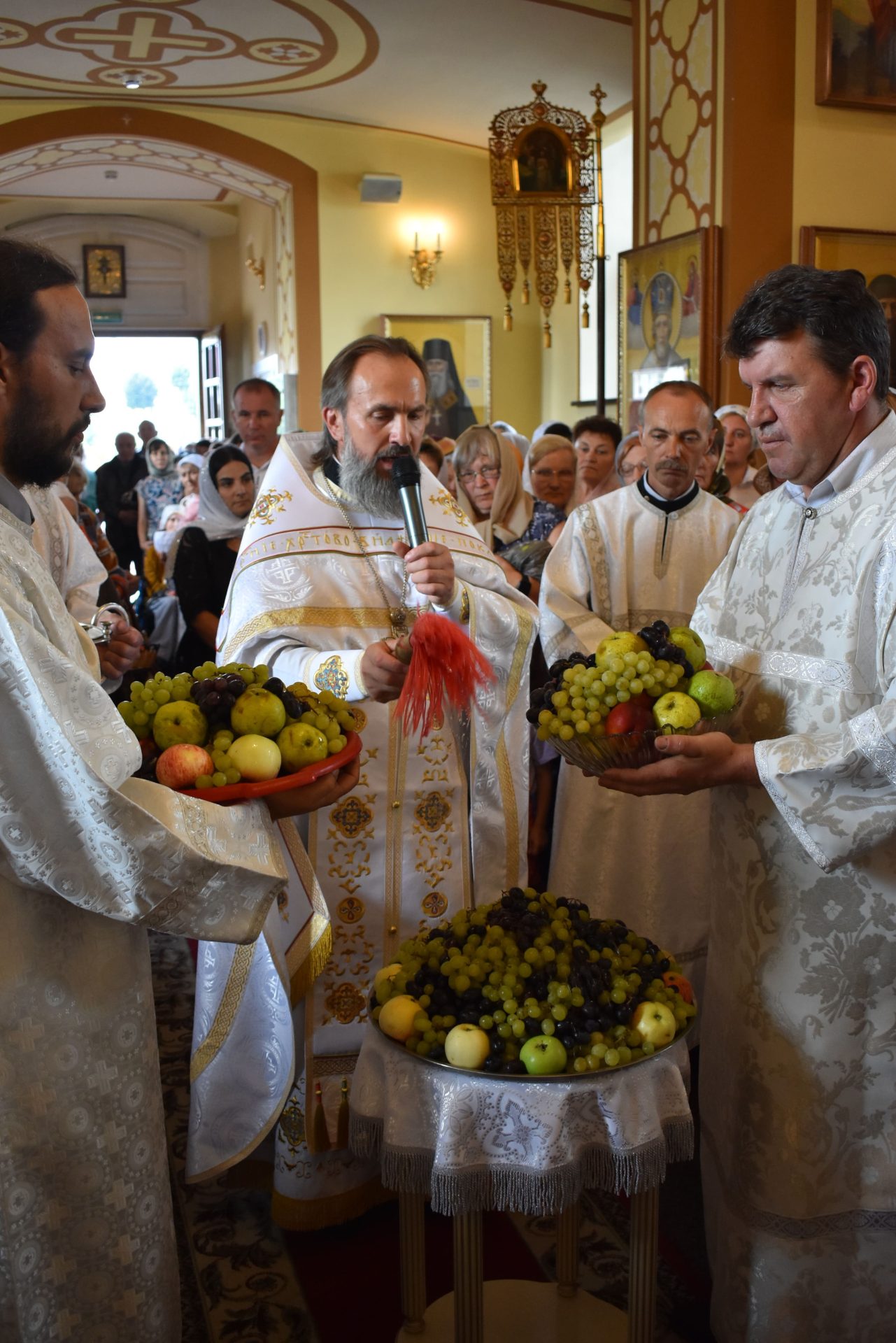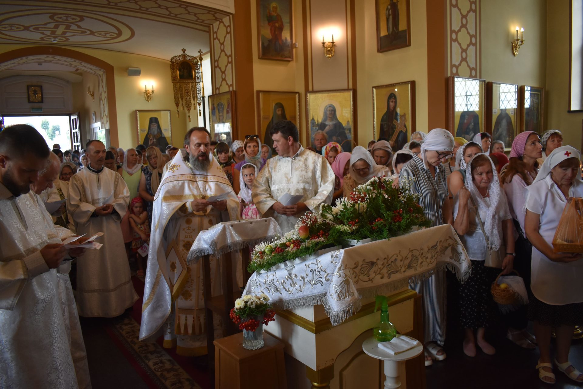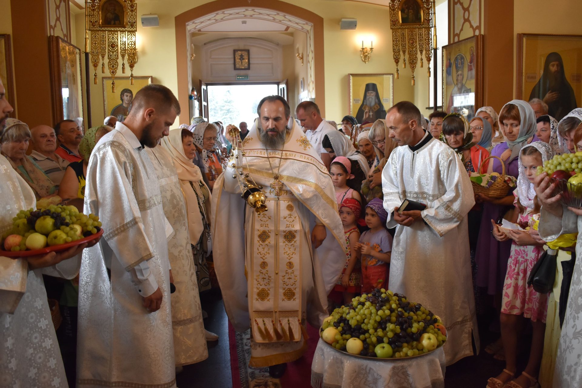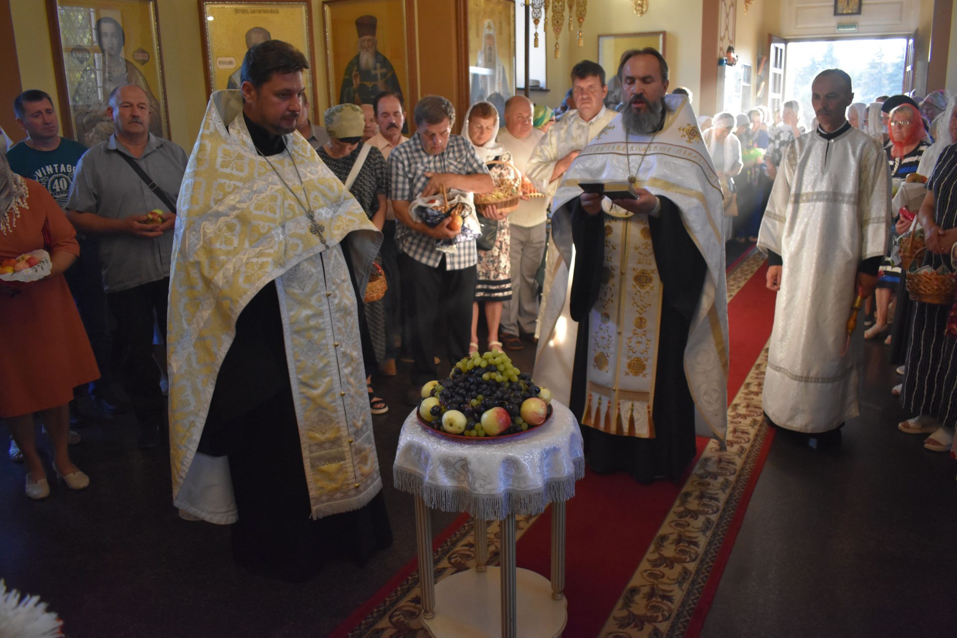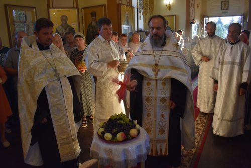 Накануне, 18 августа вечером, было совершено вечернее богослужение и освящение плодов нового урожая.