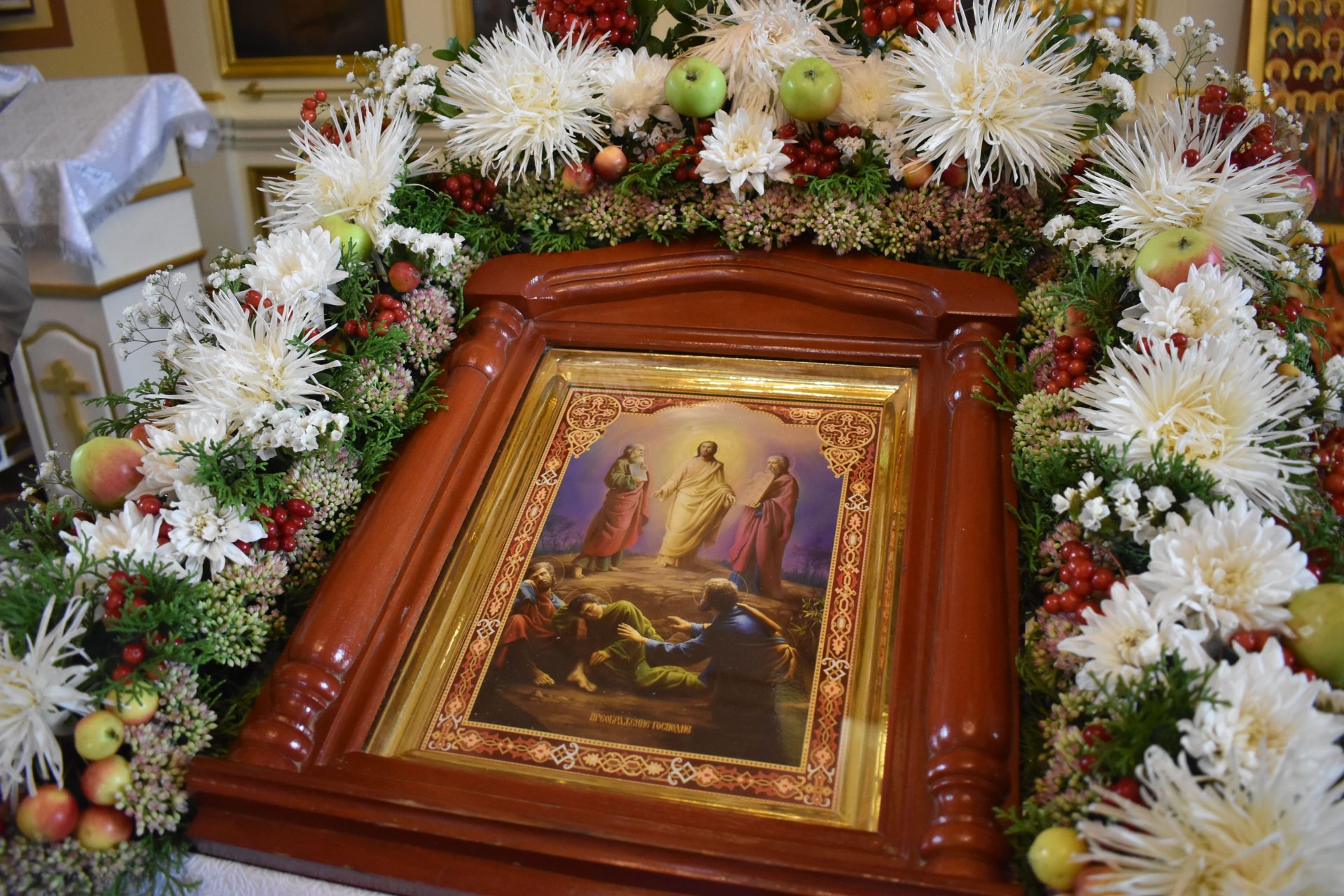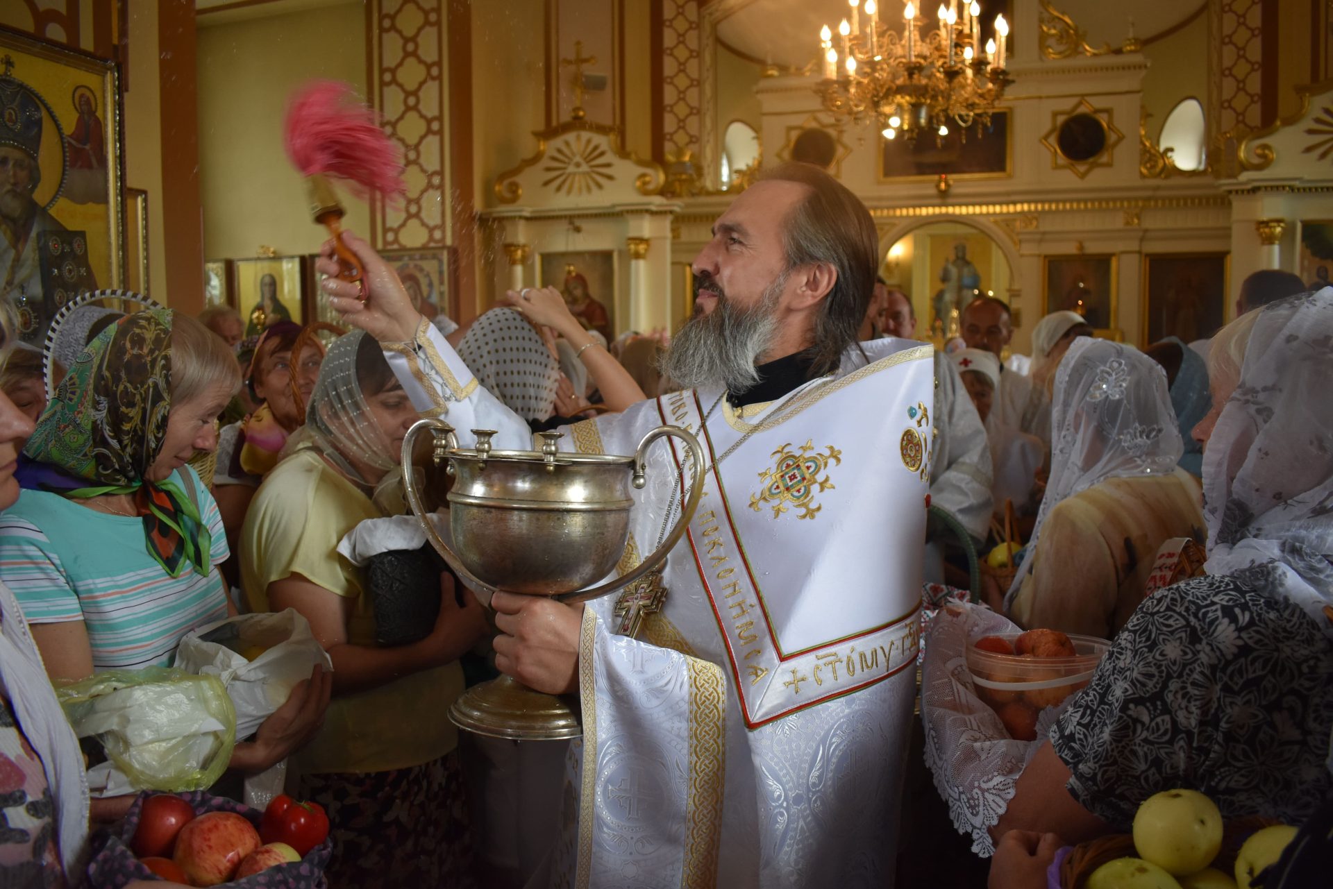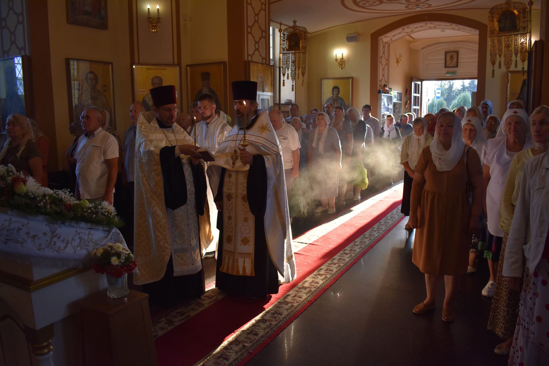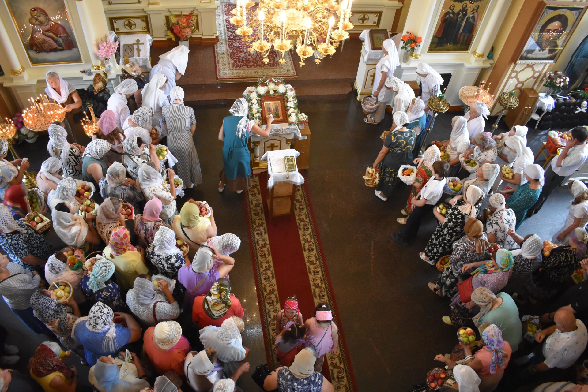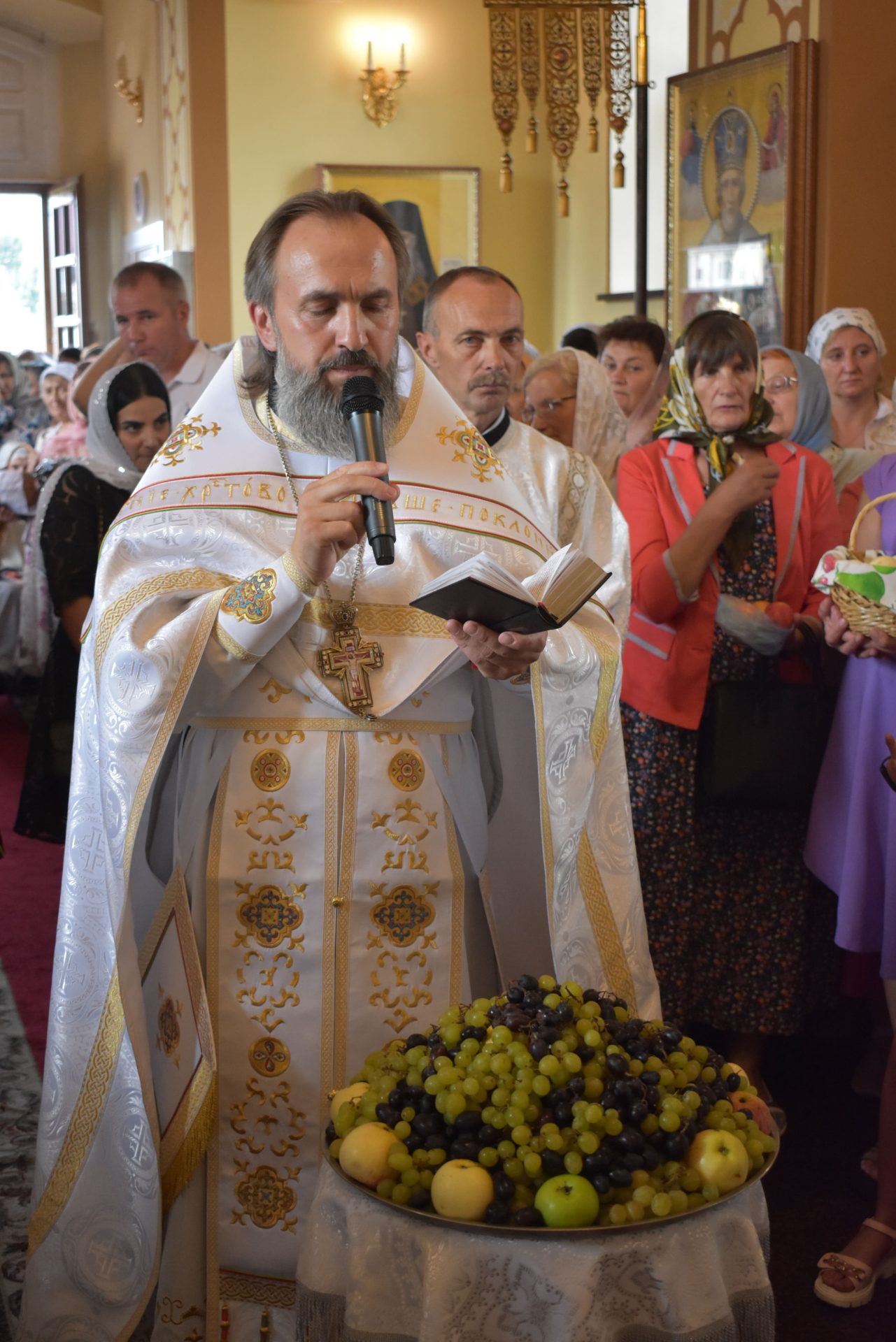 Накануне, 18 августа вечером, было совершено вечернее богослужение и освящение плодов нового урожая.