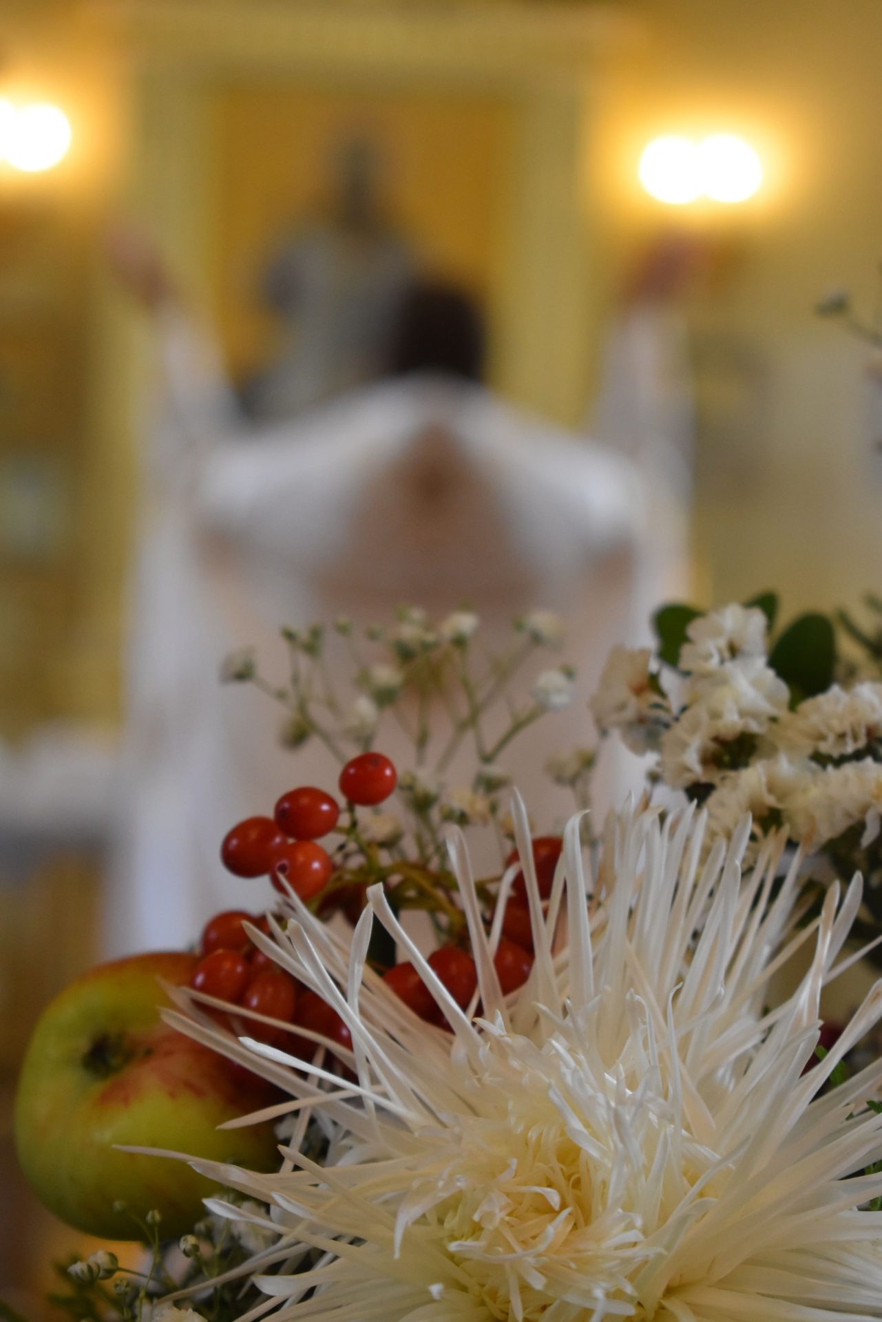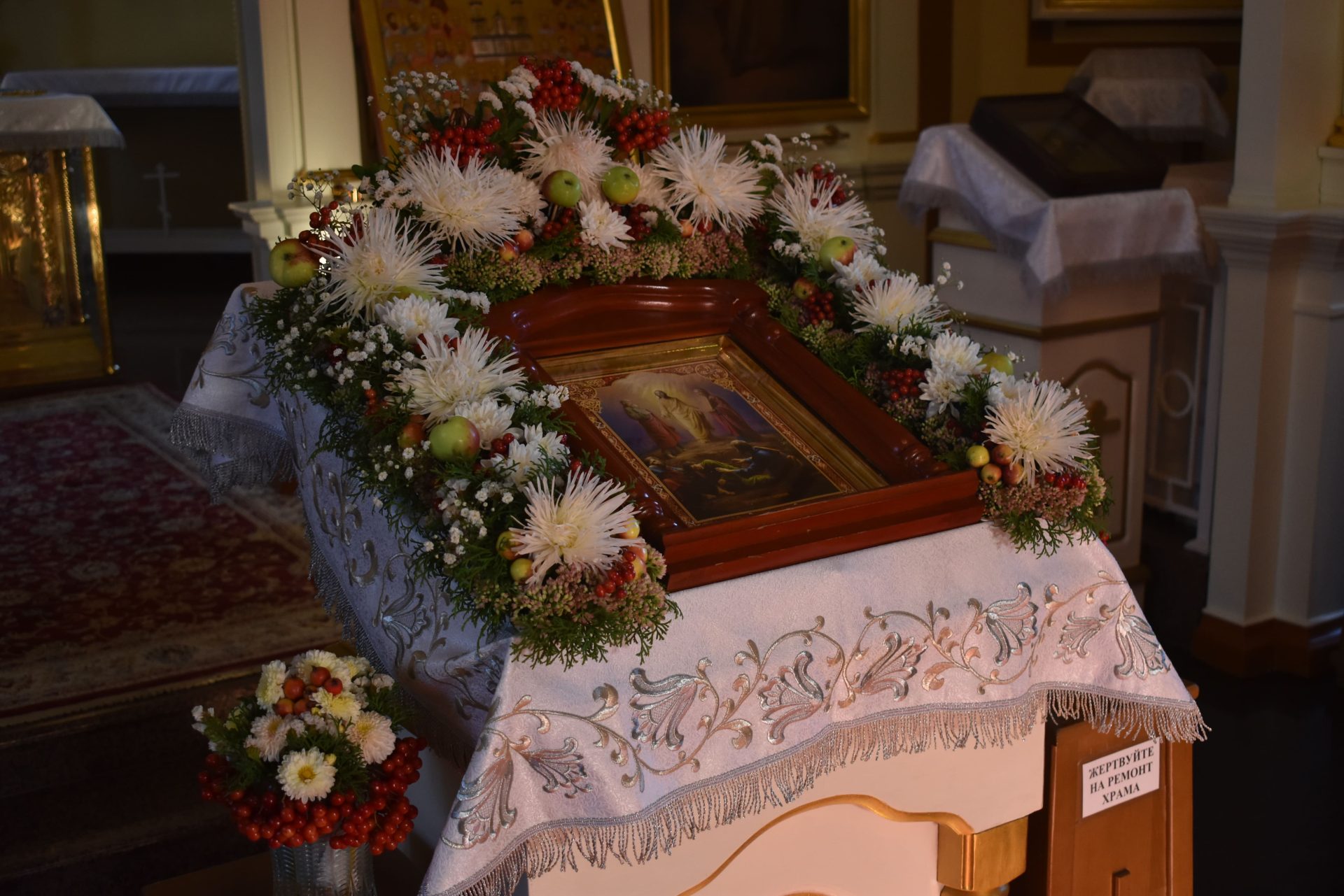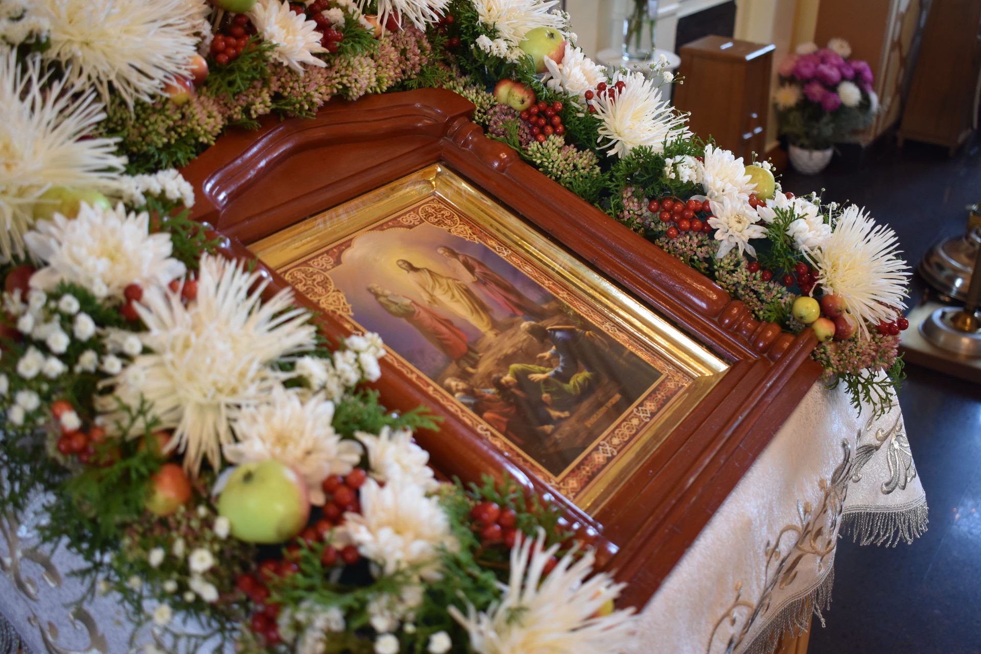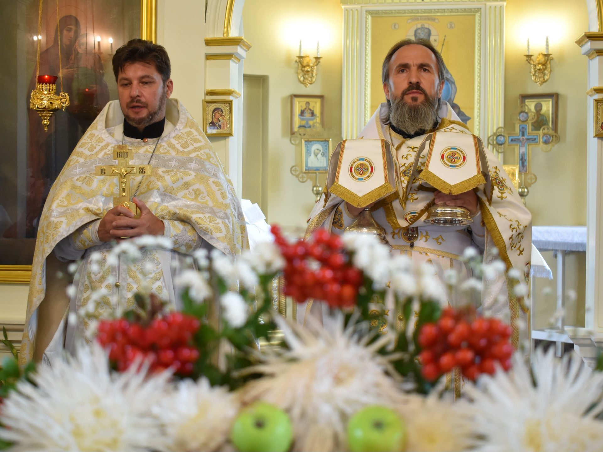 Накануне, 18 августа вечером, было совершено вечернее богослужение и освящение плодов нового урожая.