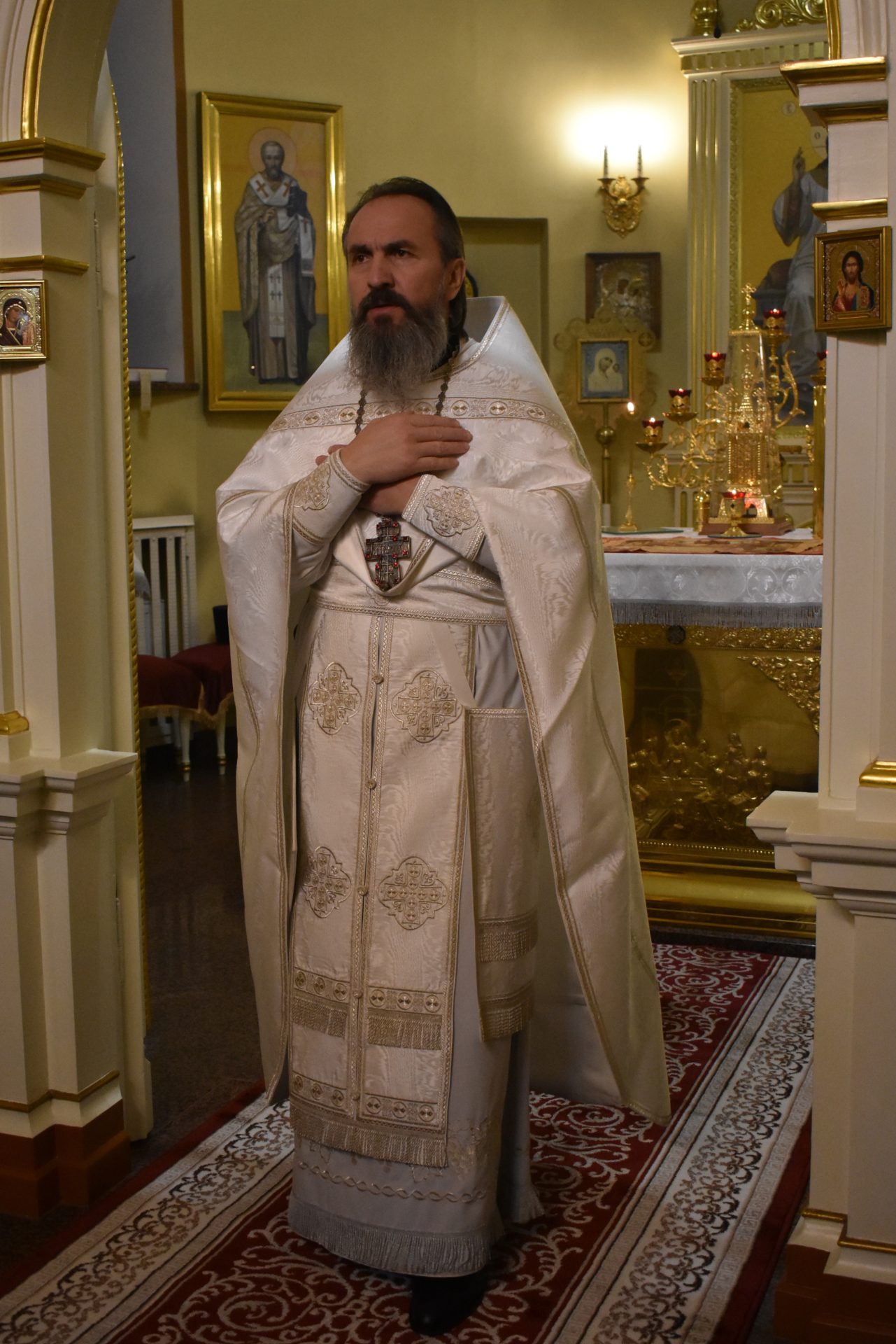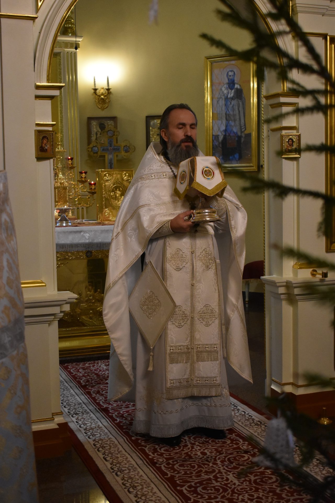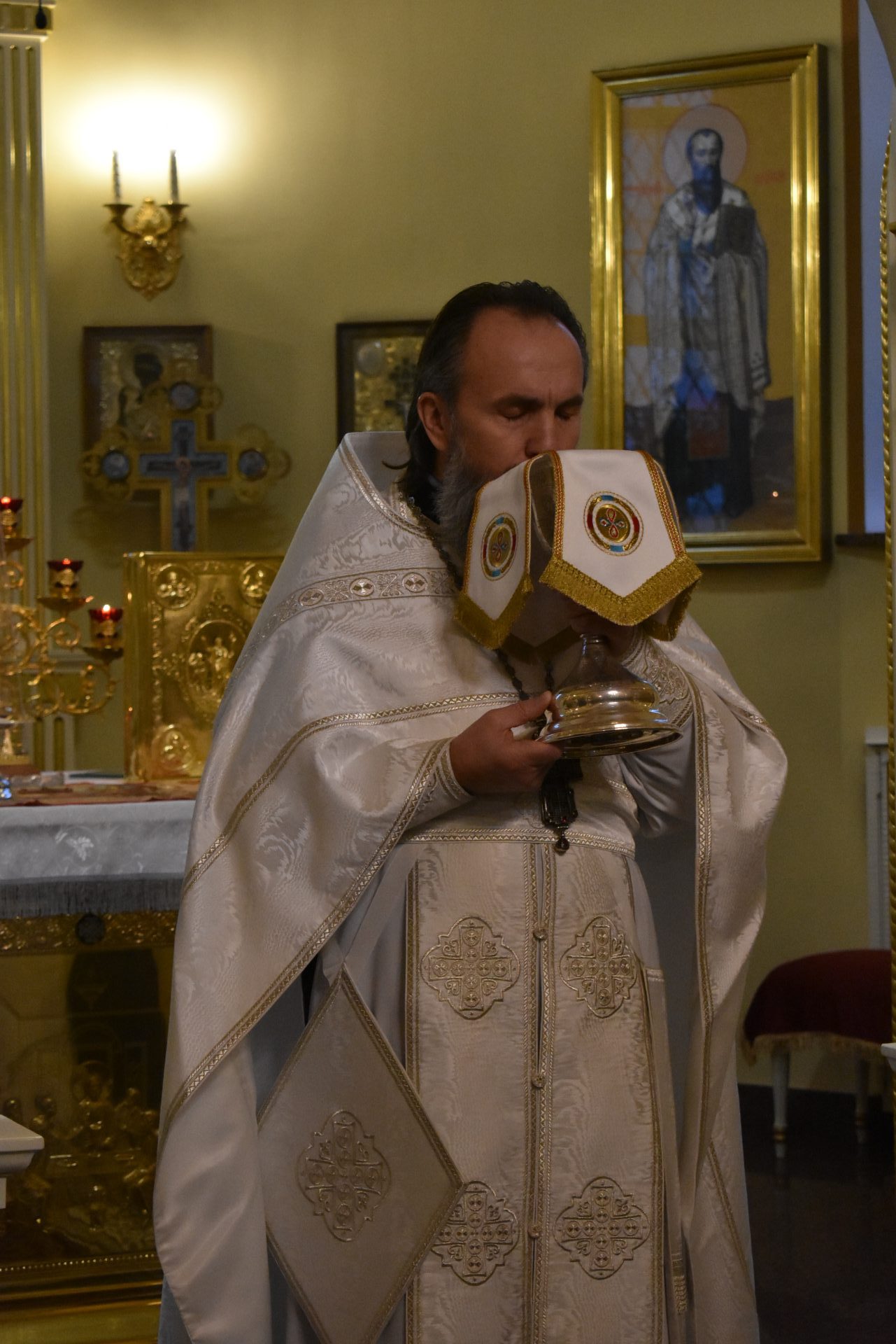 Далее было совершено славление празднику и протоиерей Вячеслав обратился ко всем со словом назидания.